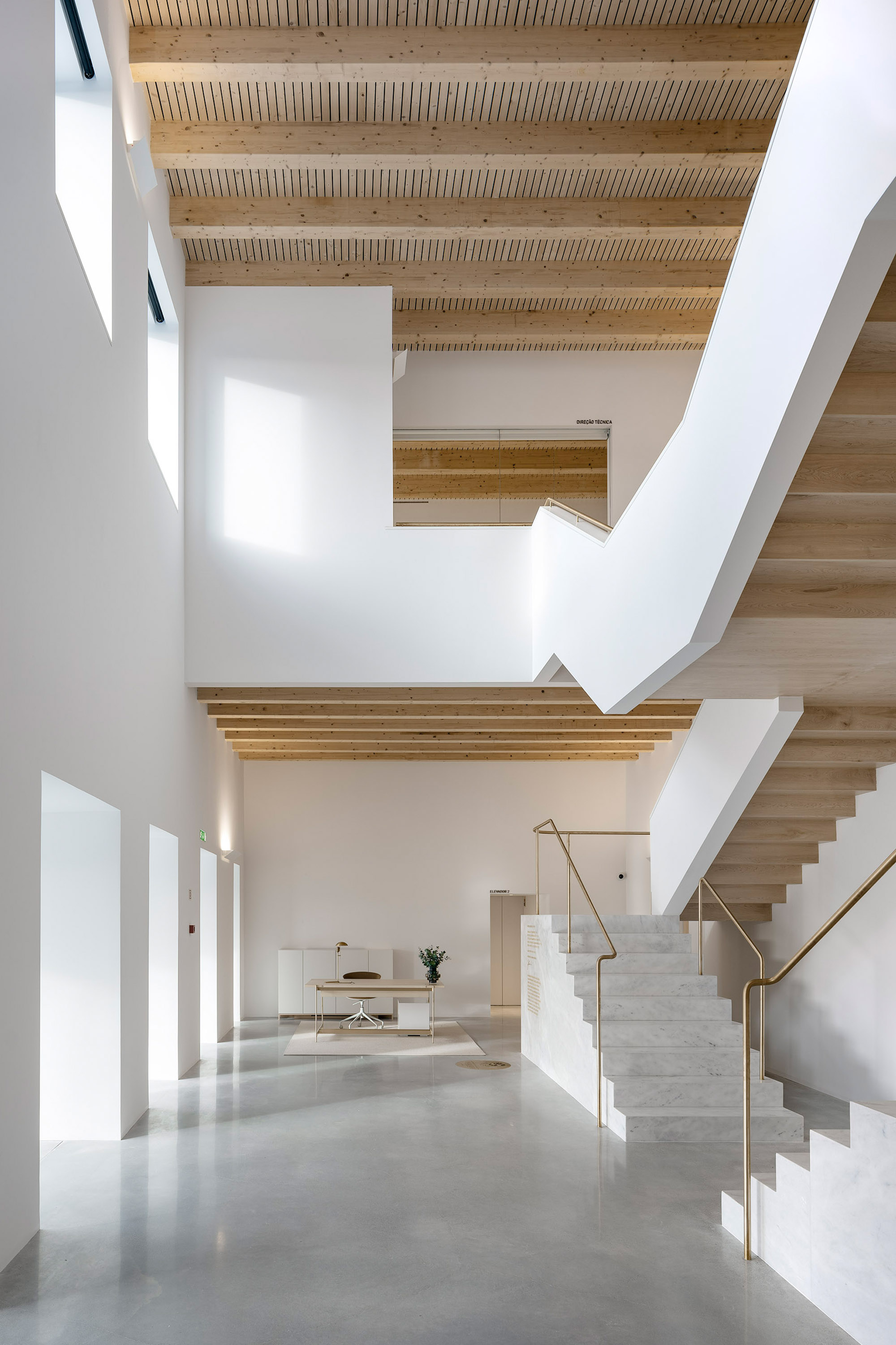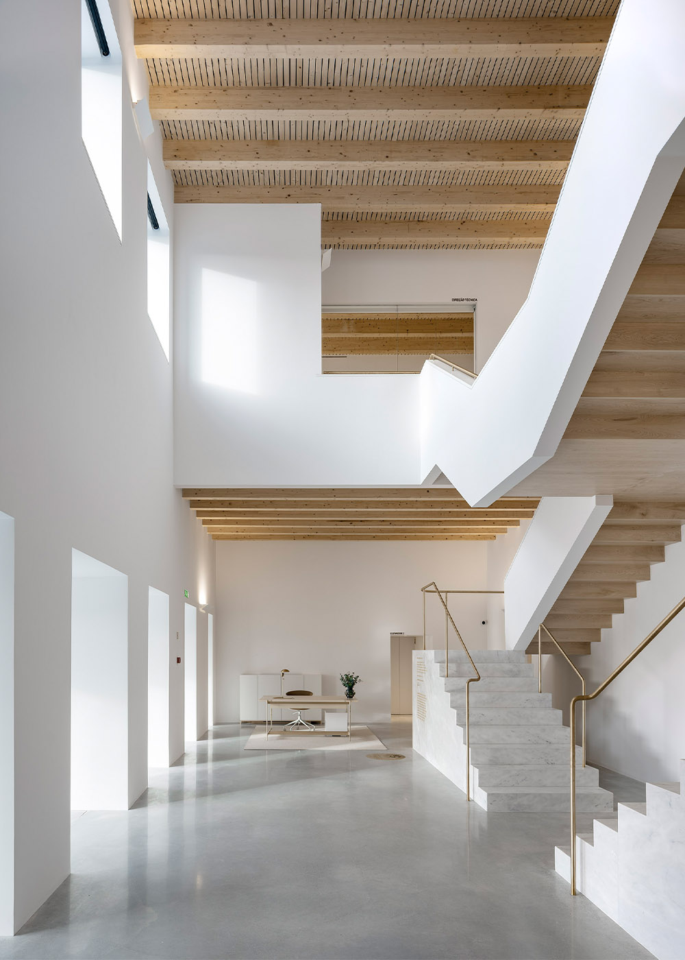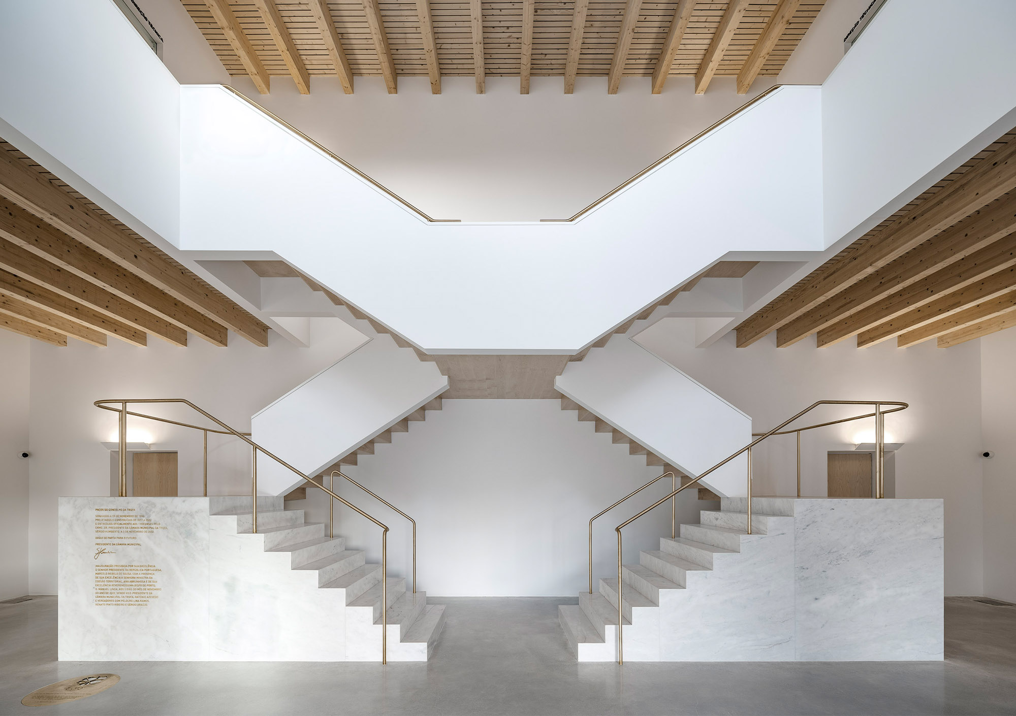 The spirit of Portuguese architecture is simple and sober. The building returns to the essence of architecture: construction; space; scale and proportion. Only the essentials resist to time. The Town Hall was built in concrete, thermally insulated by the outside and protected from the weather and the time by an external facing brick wall. These are not skin choices or finishing layers. The exposed concrete and the massive bricks are integral and durable.