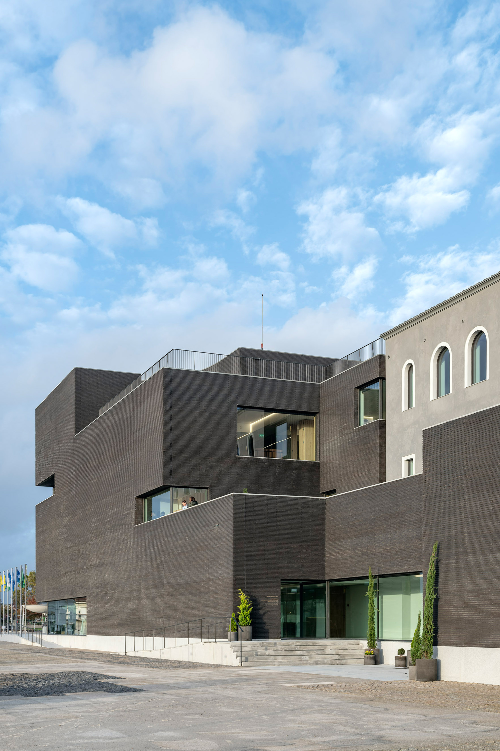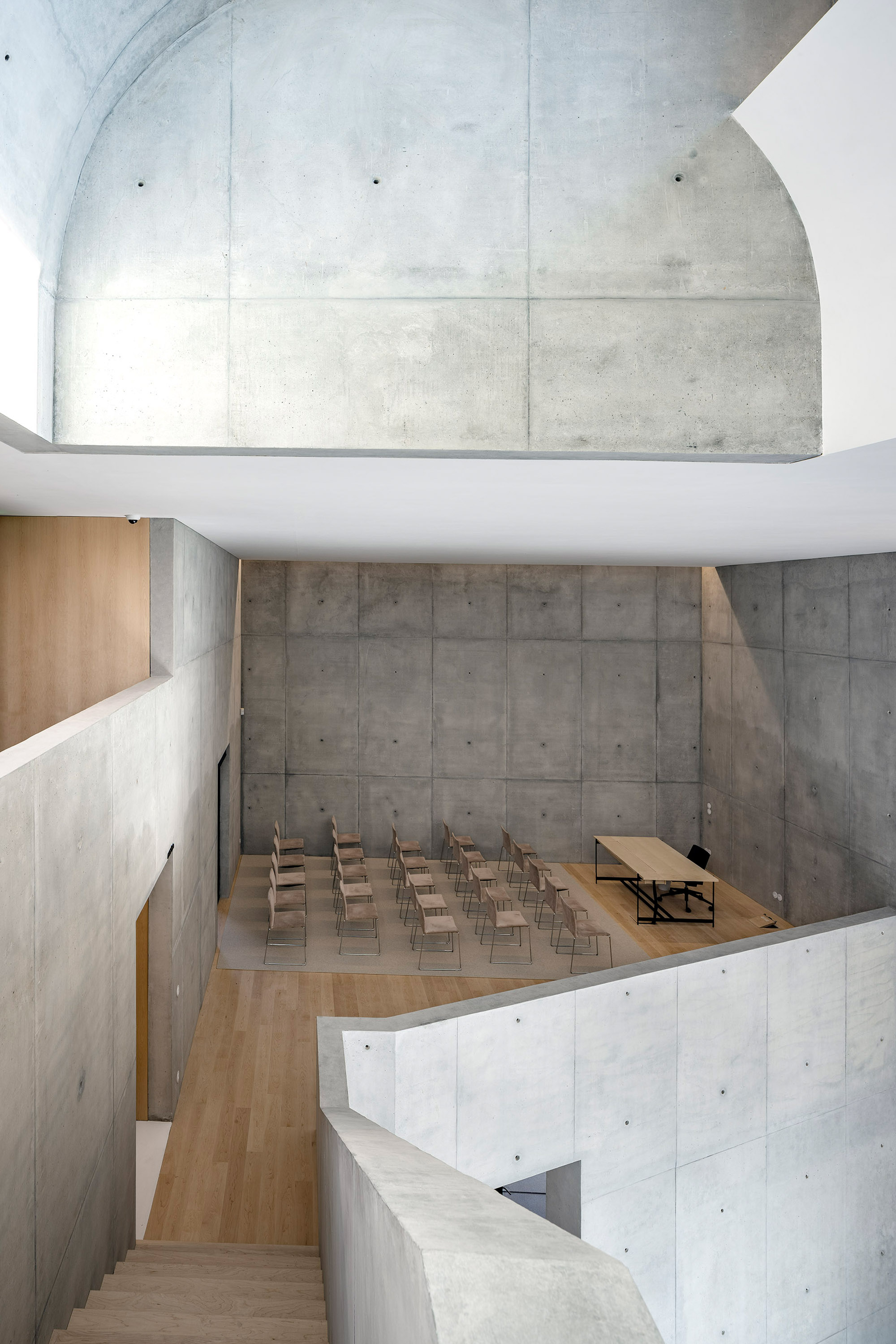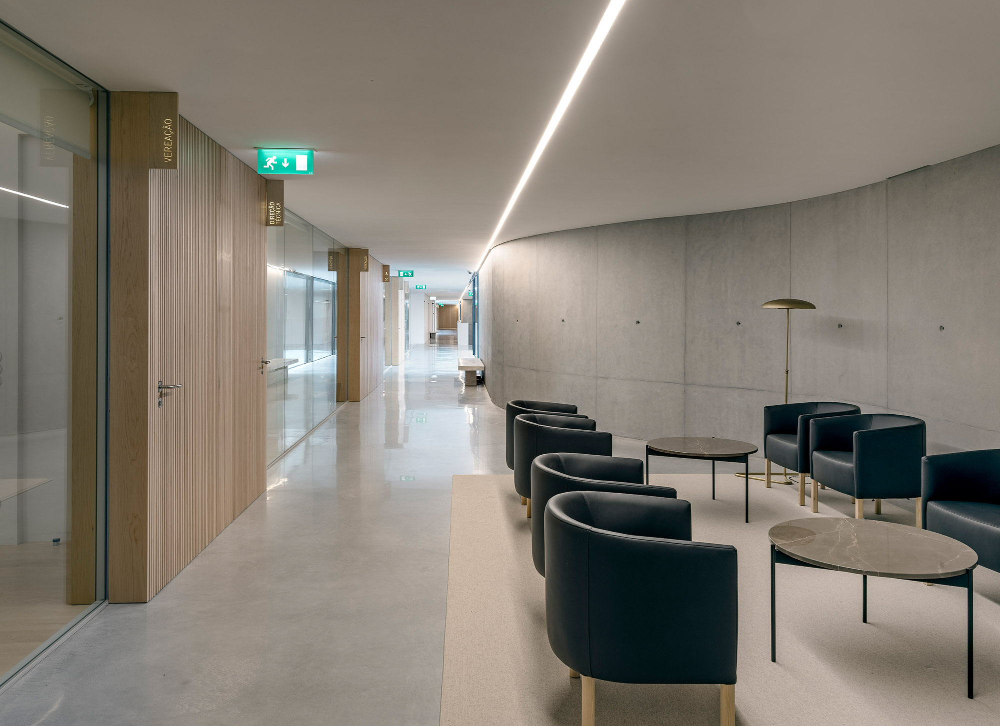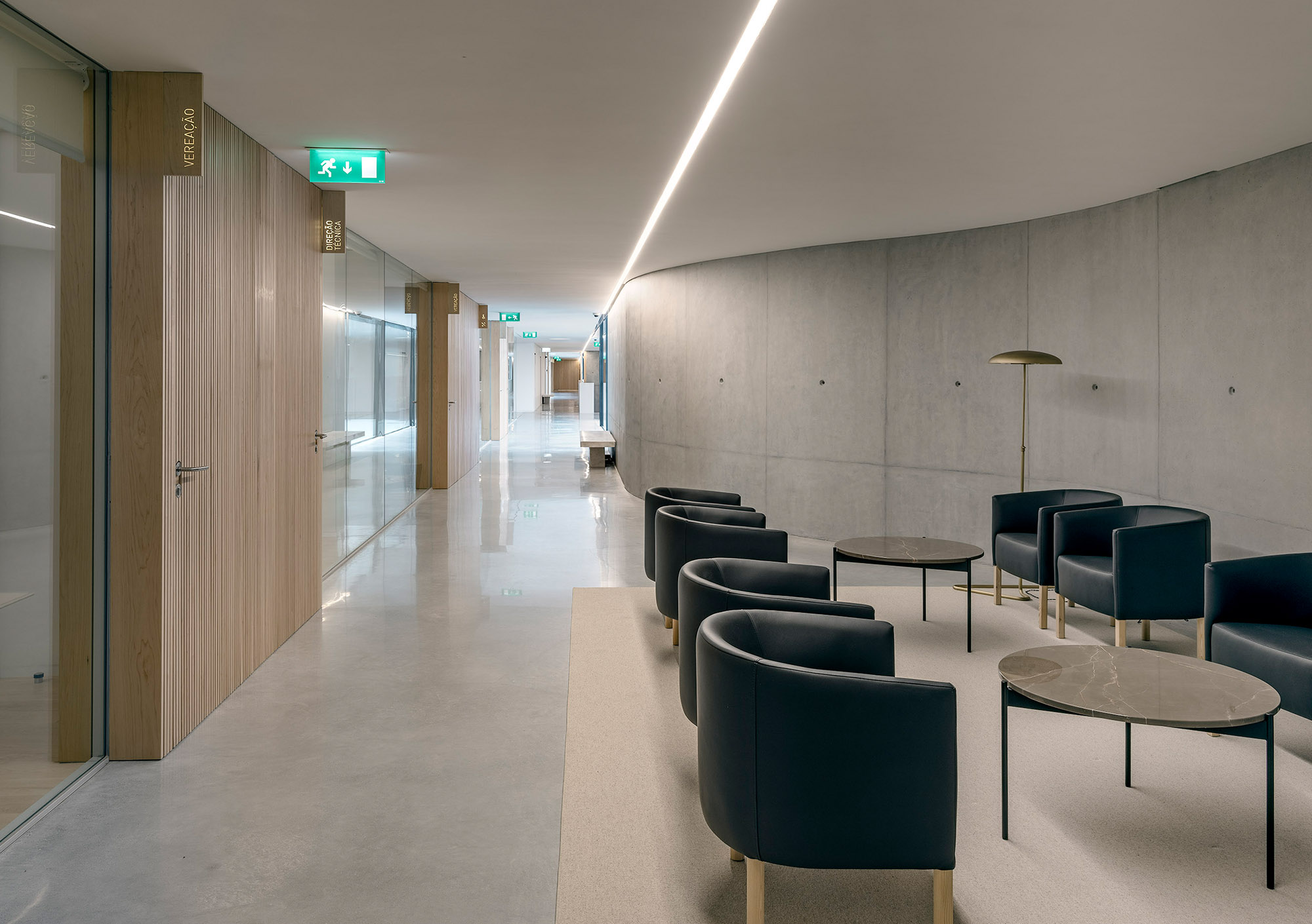 The spirit of Portuguese architecture is simple and sober. The building returns to the essence of architecture: construction; space; scale and proportion. Only the essentials resist to time. The Town Hall was built in concrete, thermally insulated by the outside and protected from the weather and the time by an external facing brick wall. These are not skin choices or finishing layers. The exposed concrete and the massive bricks are integral and durable.