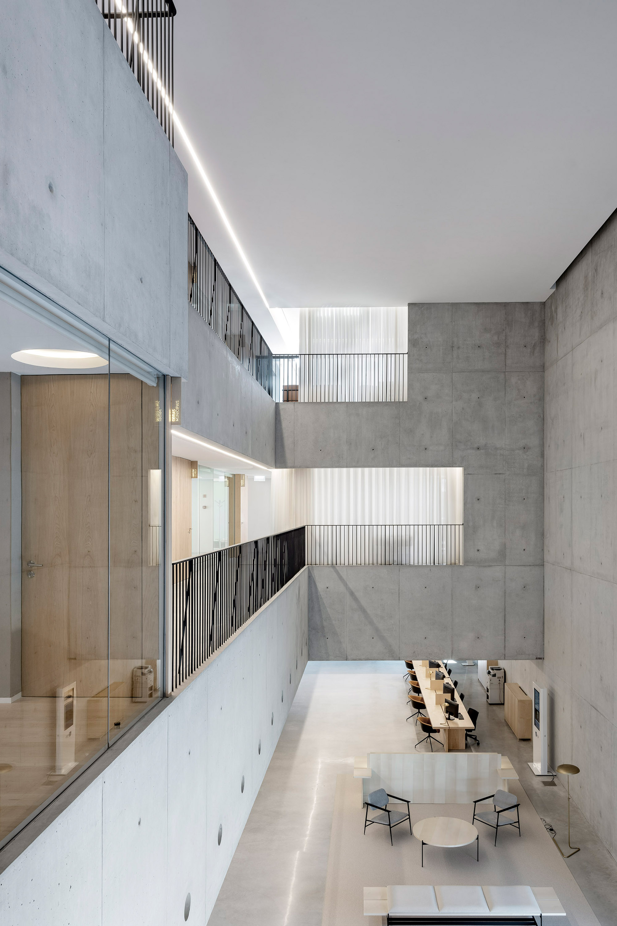 The austere architecture of the building is the best proposal for all the demands and circumstances of this commission. We designed a building with a single material, a single light and color. Qualities that we found on the existing ruins in the place. We increased the public access area. We expand the right foot. We partially recovered the idea of the medieval Town Hall - the citizens' atrium. Public space should prevail over the space of those who serve them; be a sheltered extension of the public square, open (in glass) to the offices of services or politicians. Once inside, the citizens share the same space with those who serve them, without walls.