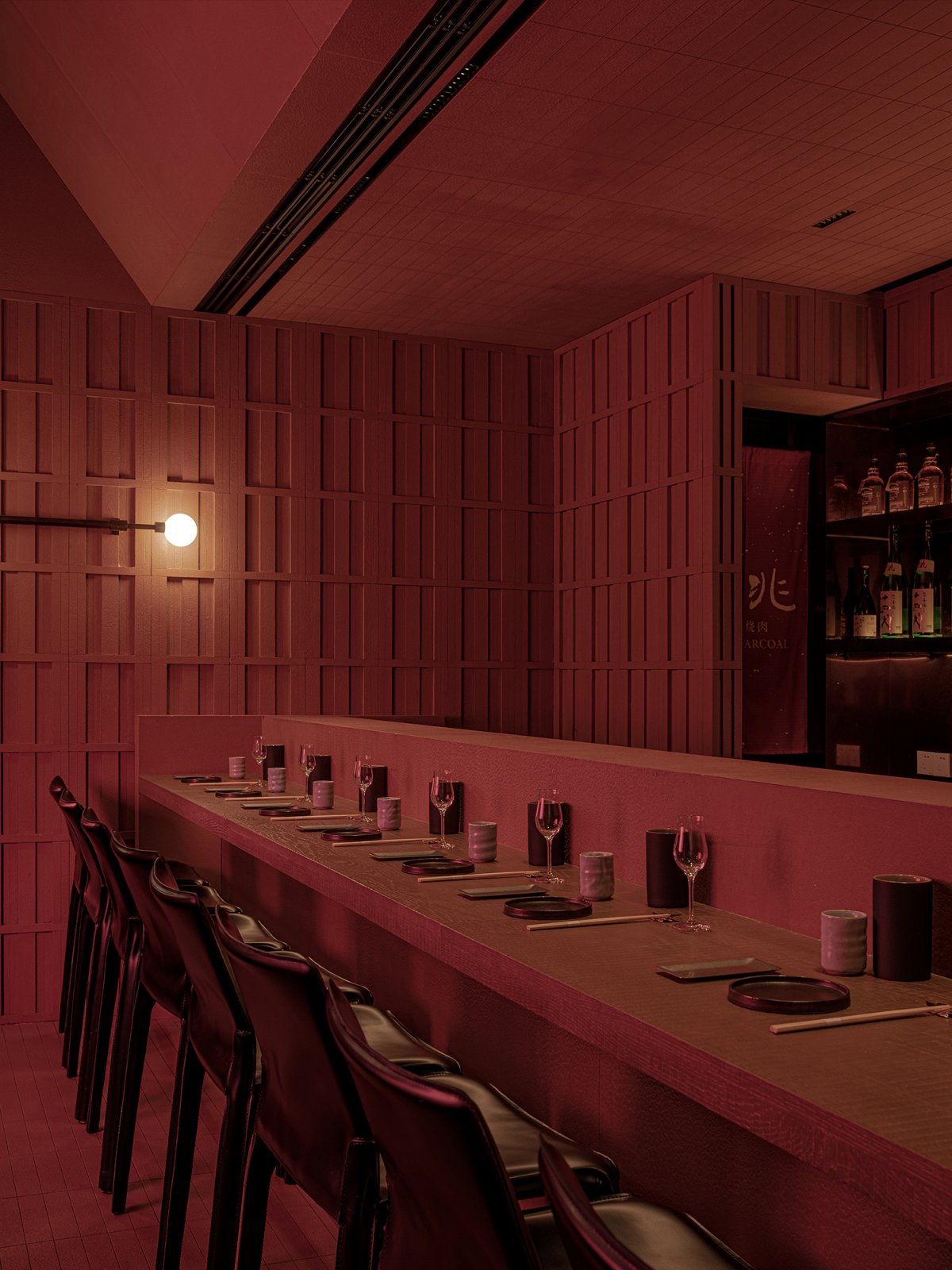 In this small space, the restaurant not only provides a delicious treat for late night diners, but also customizes an artistic, warm and intimate environment. This cozy and artistic place becomes an emotional refuge for late nights, even if drinking alone doesn't leave you feeling cold and dull. The choice of materials for the whole restaurant is made of clay, and the theme is closely related to the concept of "burning meat". Both visually and tactile, the warm material effectively fills the lonely hearts of late-night urban crowds, making this personalized element more delicate and warm in a compact space. Thus, this place, which can only accommodate more than ten people, becomes the emotional shelter hidden in the bustling urban jungle.