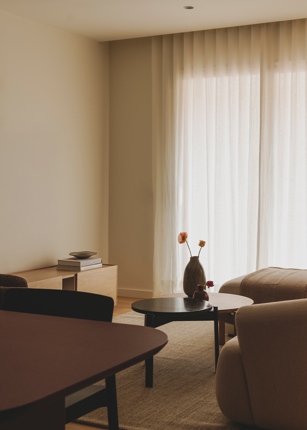After their two daughters moved out, this long-time couple decided it was the right moment to rethink their home. The goal: to create a space that felt open, warm, and comfortable for two, adapted to their daily rhythms and shared lifestyle.“We wanted a home that felt spacious, yet intimate—a place for us to live comfortably, without the need for separate rooms or a traditional office,” explains the couple.