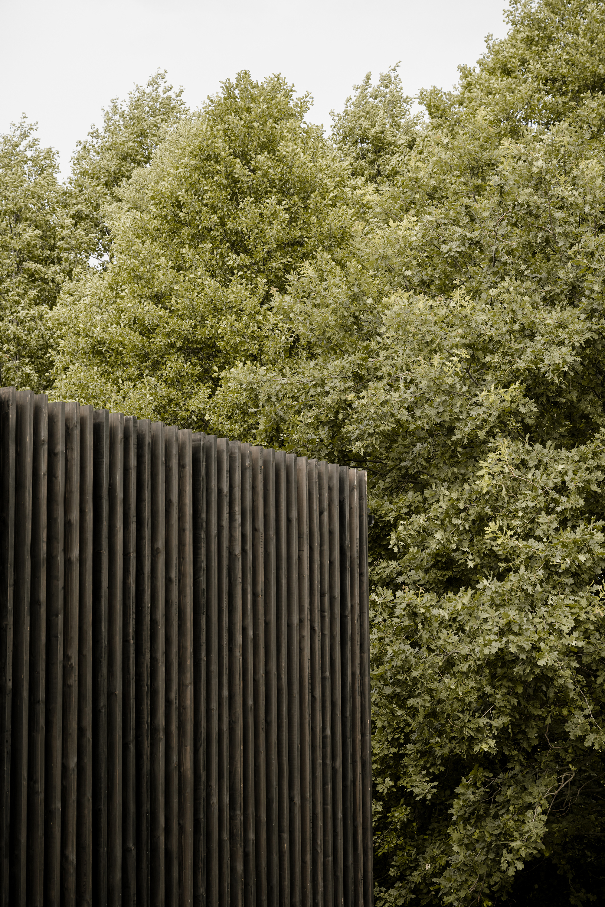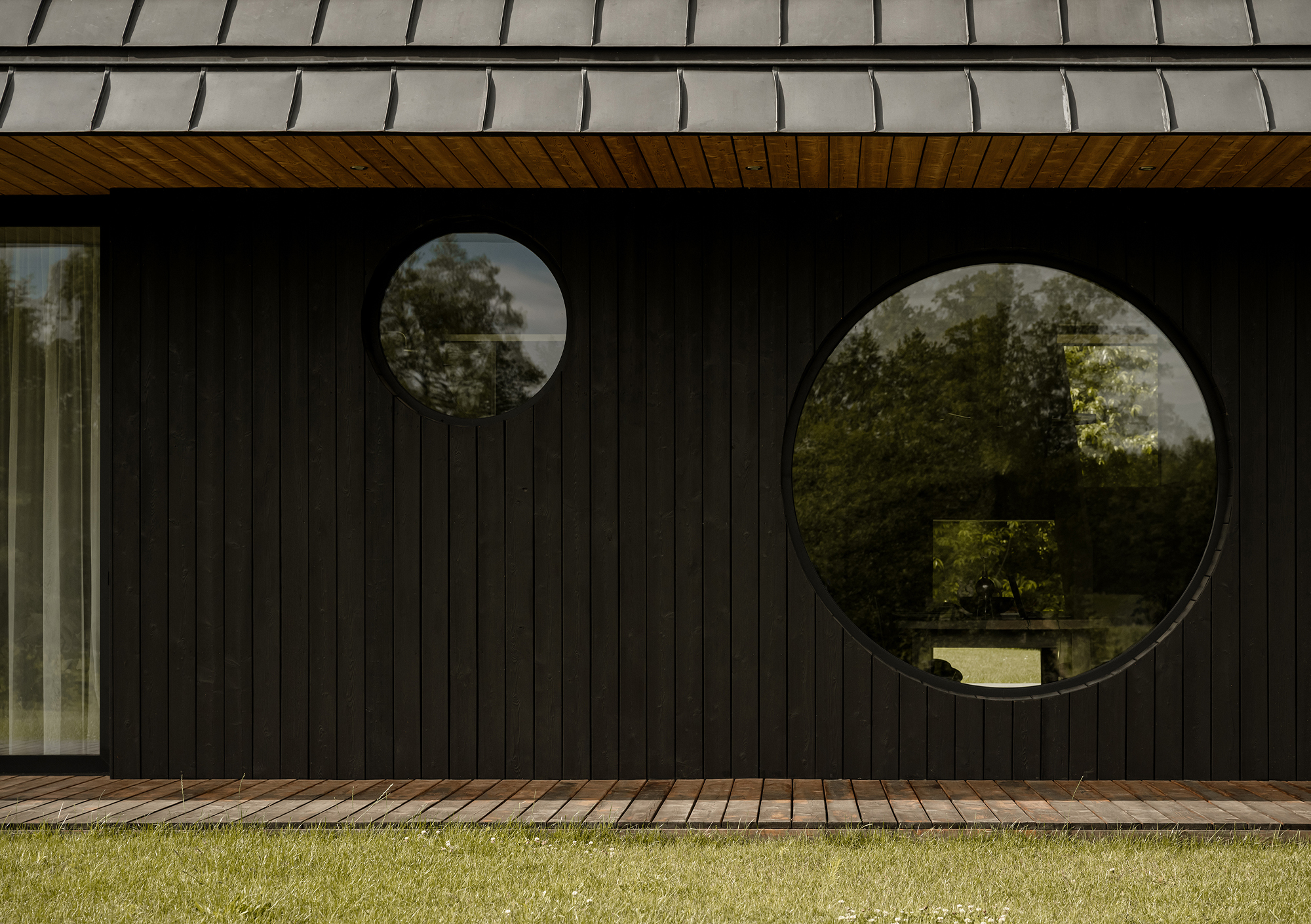 The house was designed by BXB Studio and constructed on an empty plot. Its façade is finished with black wood in the shou sugi ban technique. The form was inspired by traditional Slavic architecture, where houses were naturally integrated into the green landscape without disturbing the environment. It is a modern project rooted in local tradition and respect for nature.