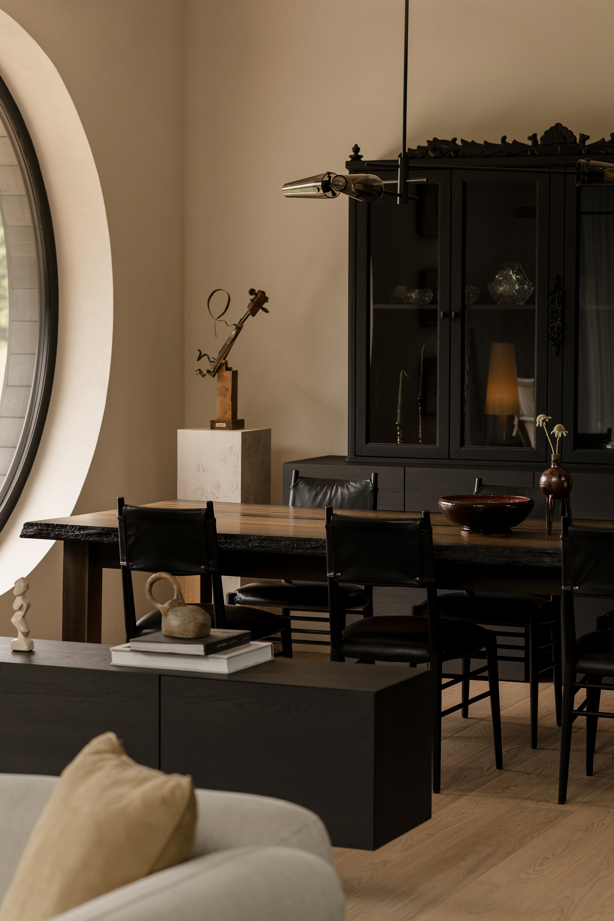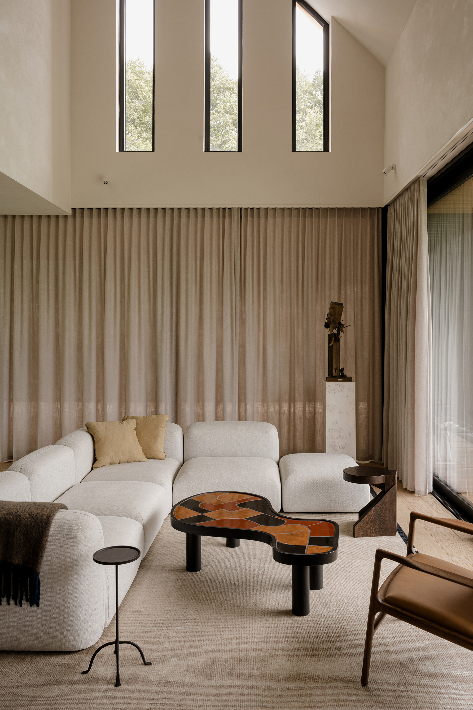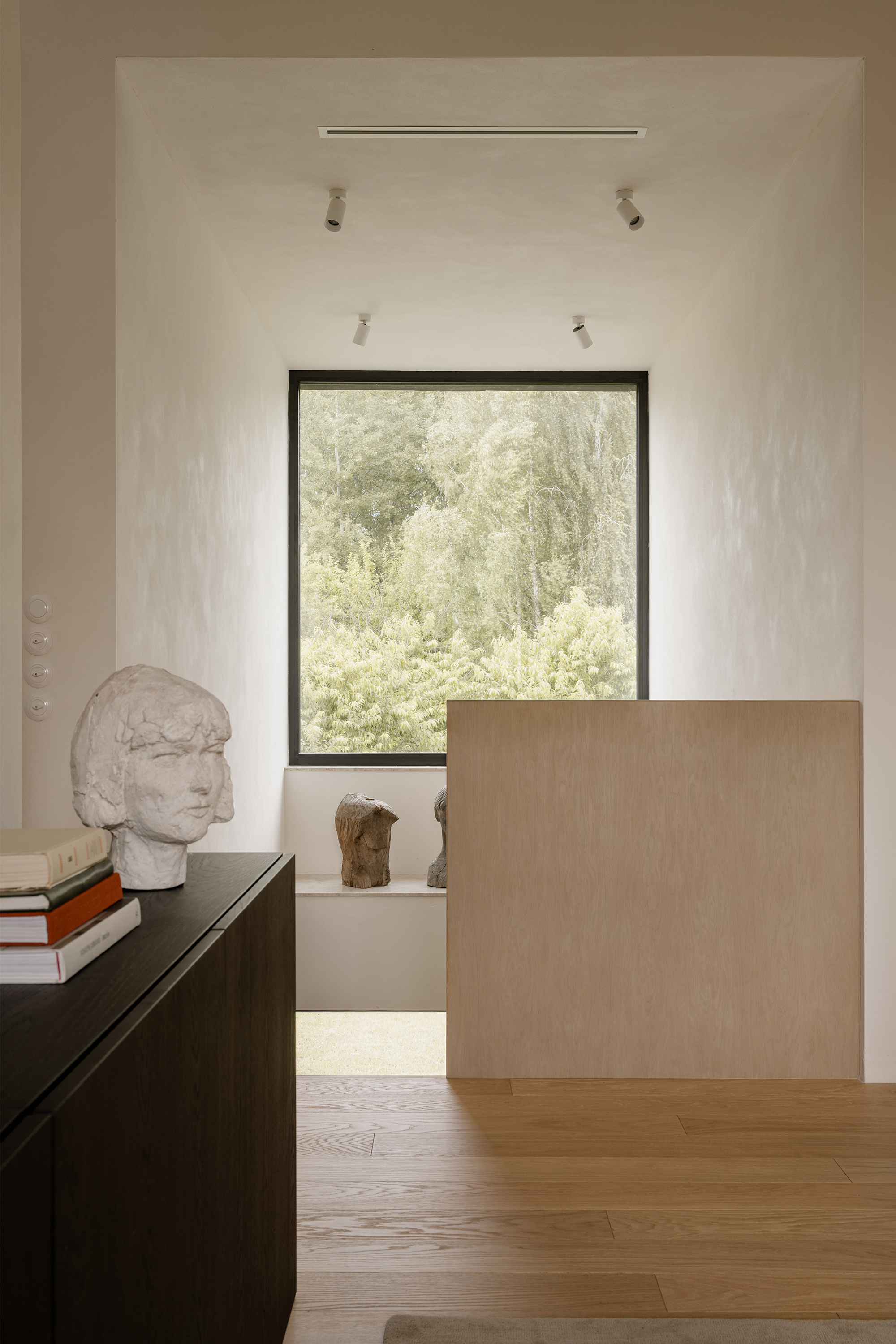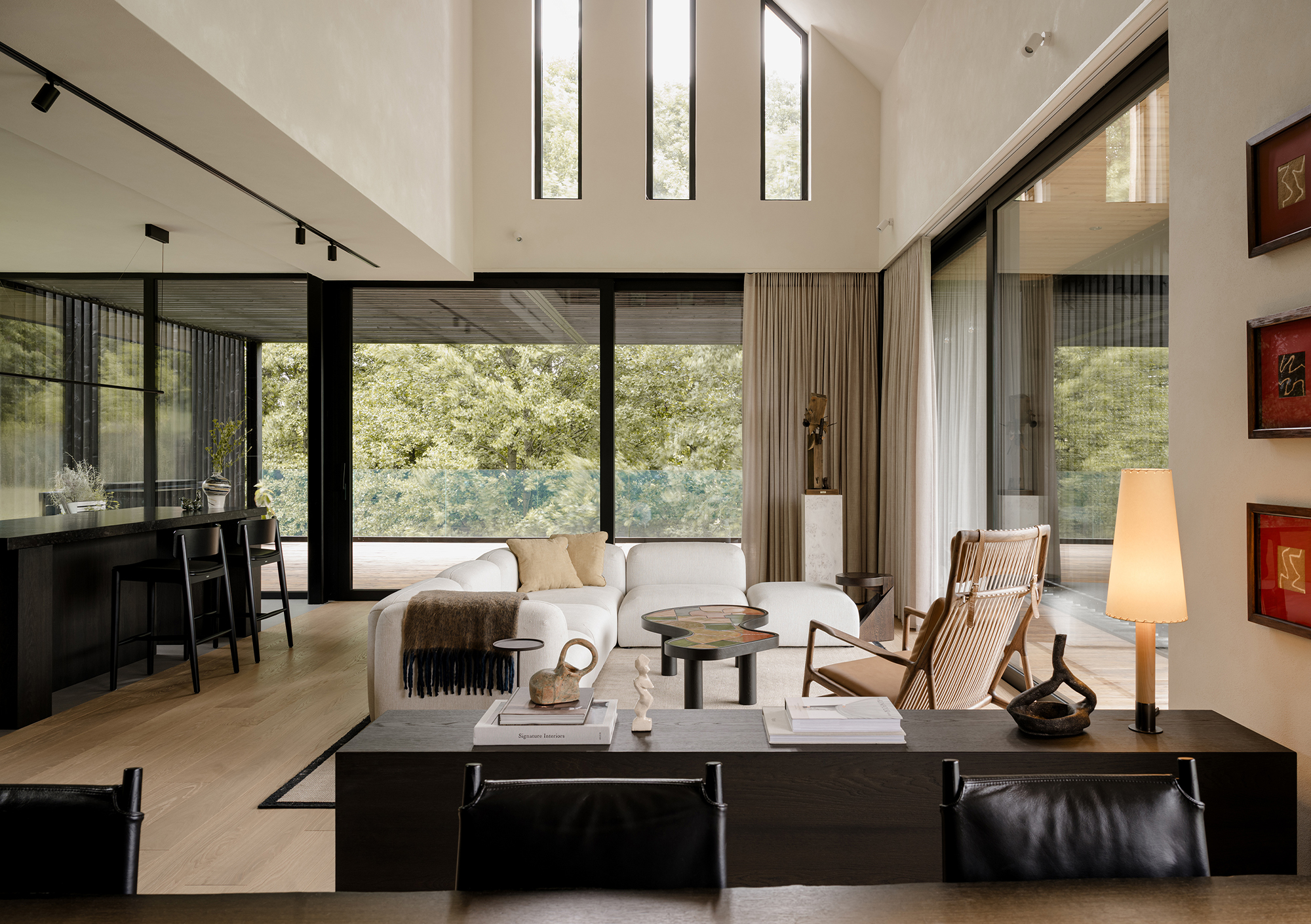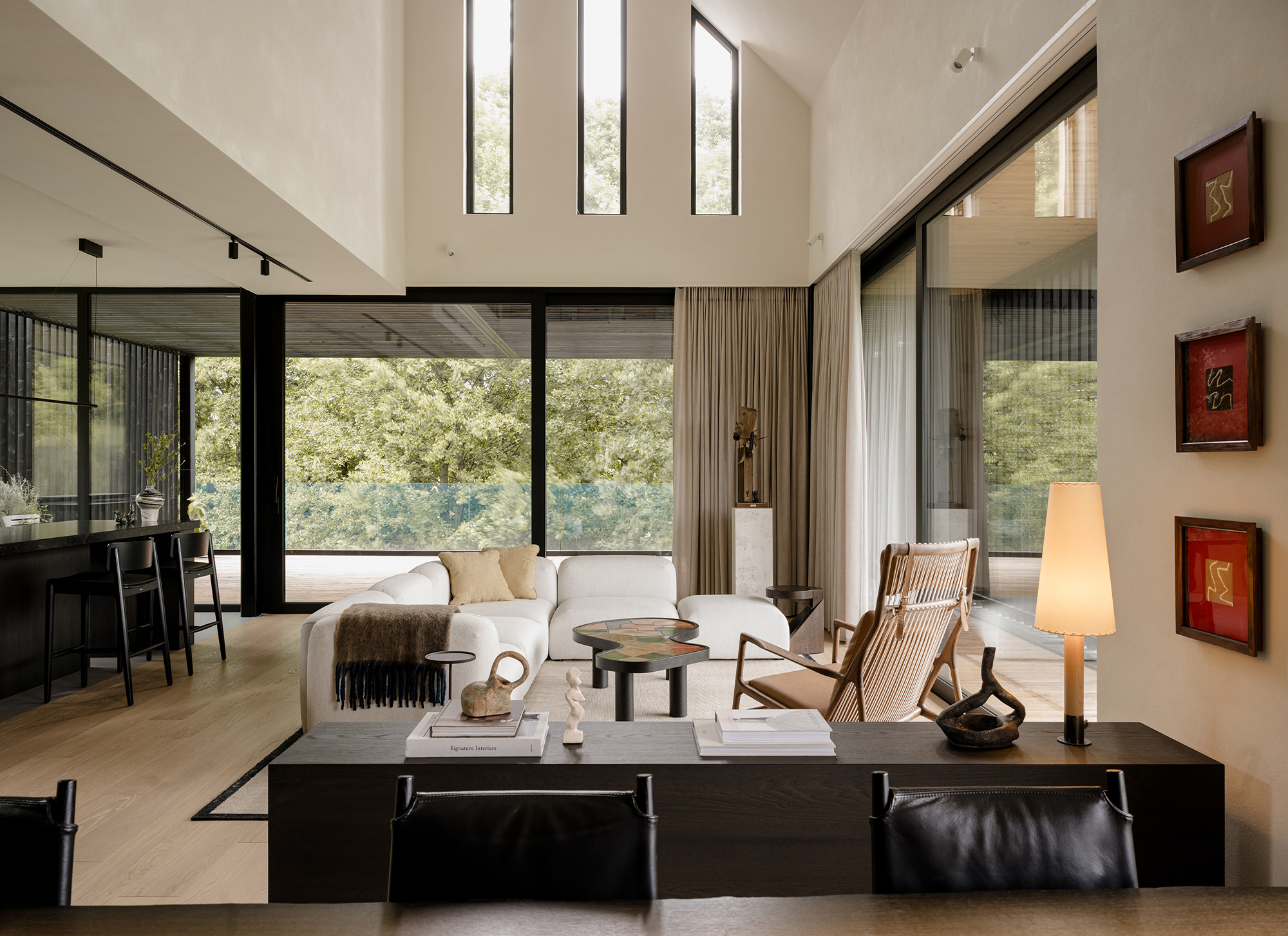 The result is a space deeply rooted in its context: the architecture, the landscape, and the lifestyle of its owners. Calm and timeless, the house combines natural materials, art, and bespoke furniture into a coherent and sensitive whole. It is a place that invites one to live in harmony with nature and in the rhythm of its residents.