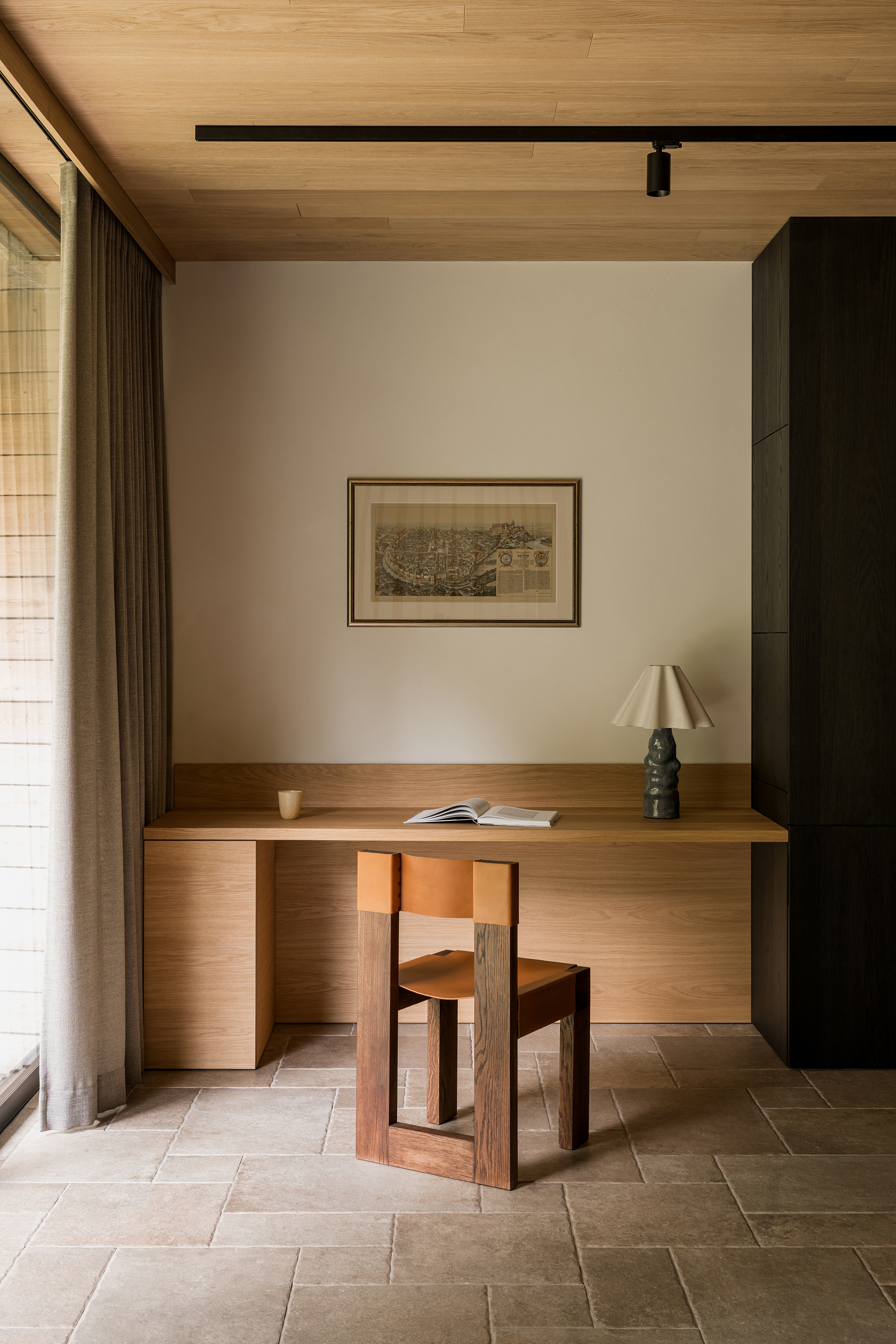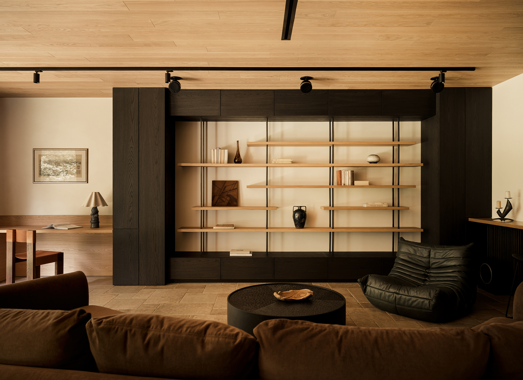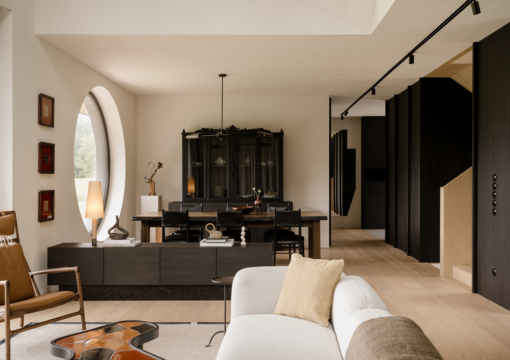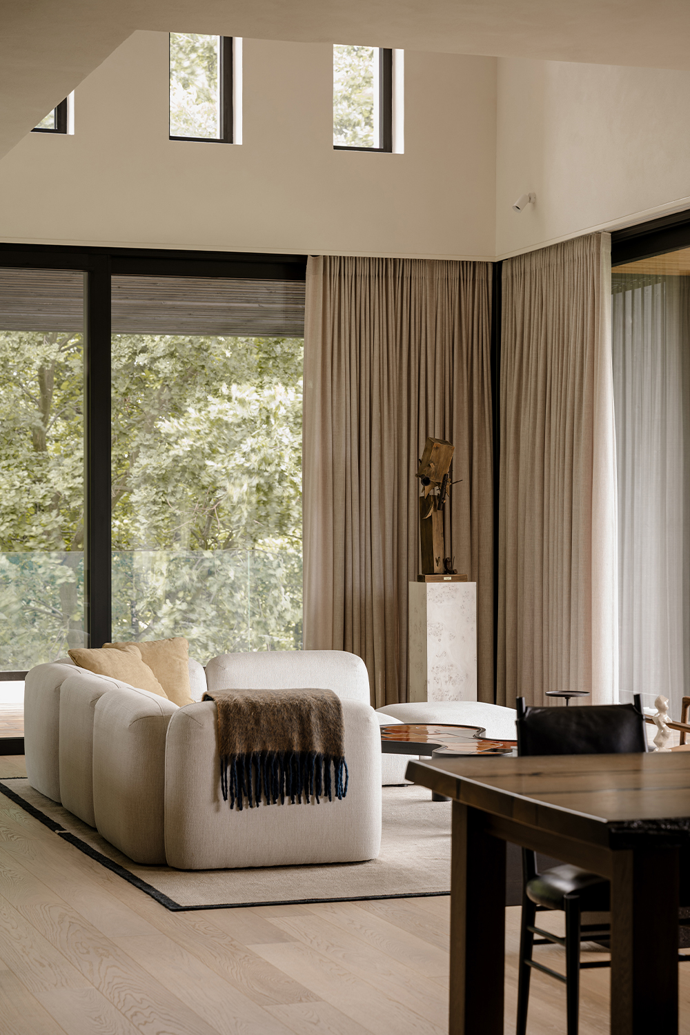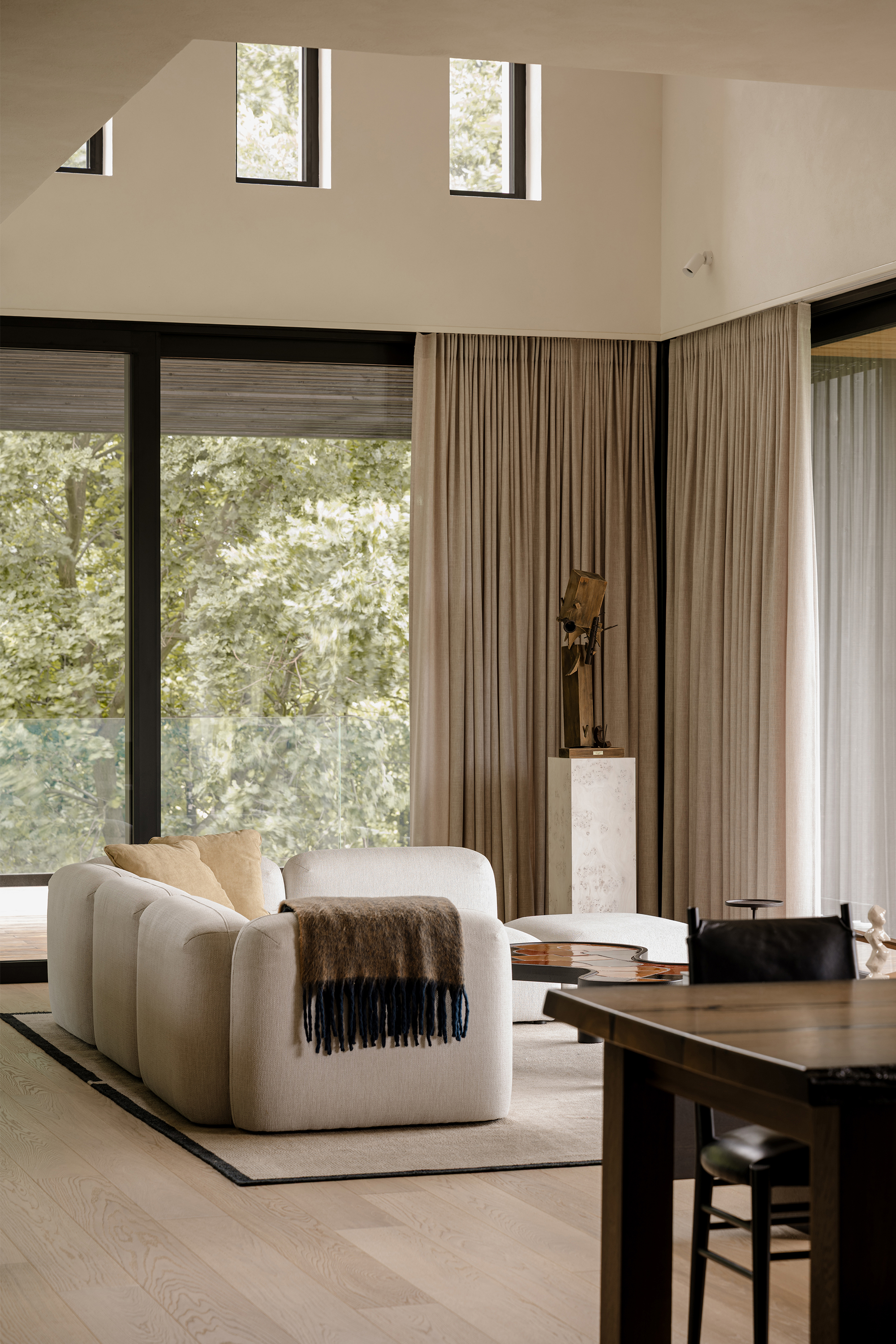 The result is a space deeply rooted in its context: the architecture, the landscape, and the lifestyle of its owners. Calm and timeless, the house combines natural materials, art, and bespoke furniture into a coherent and sensitive whole. It is a place that invites one to live in harmony with nature and in the rhythm of its residents.