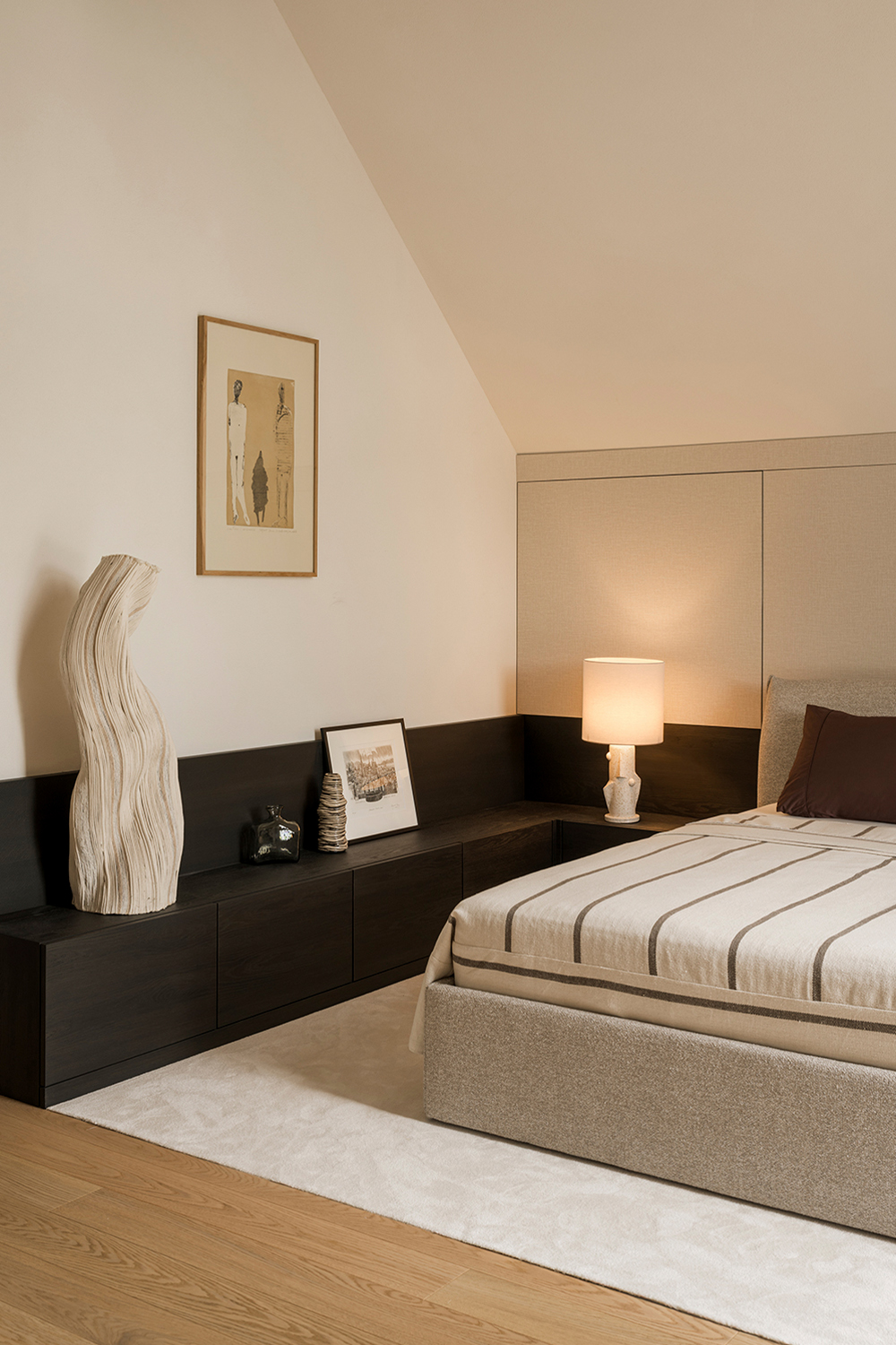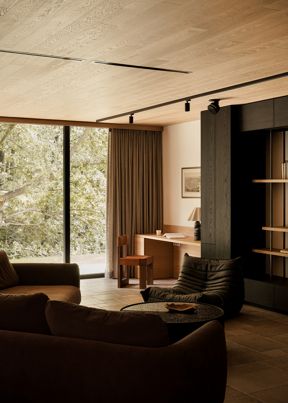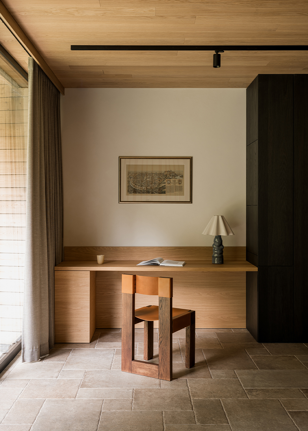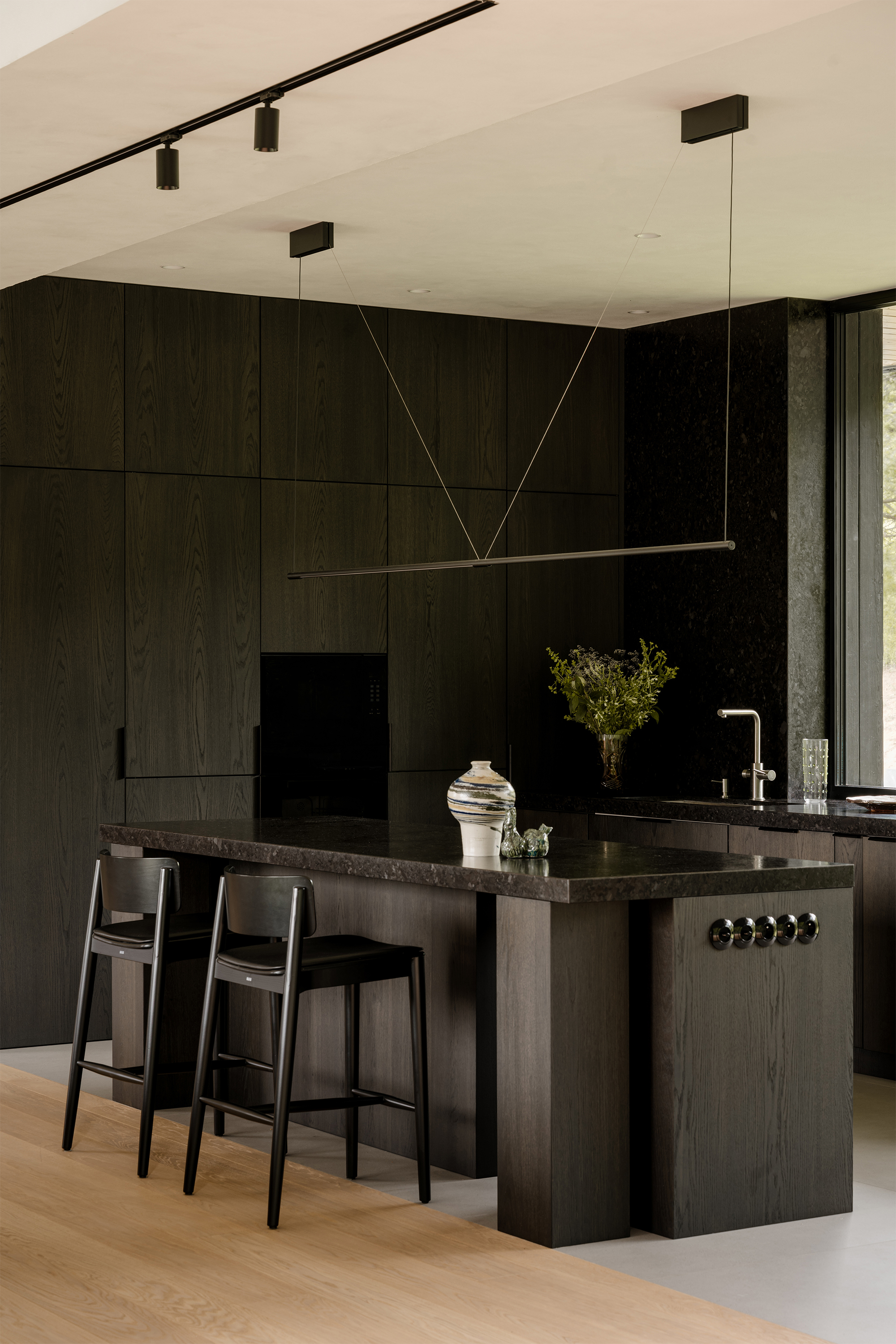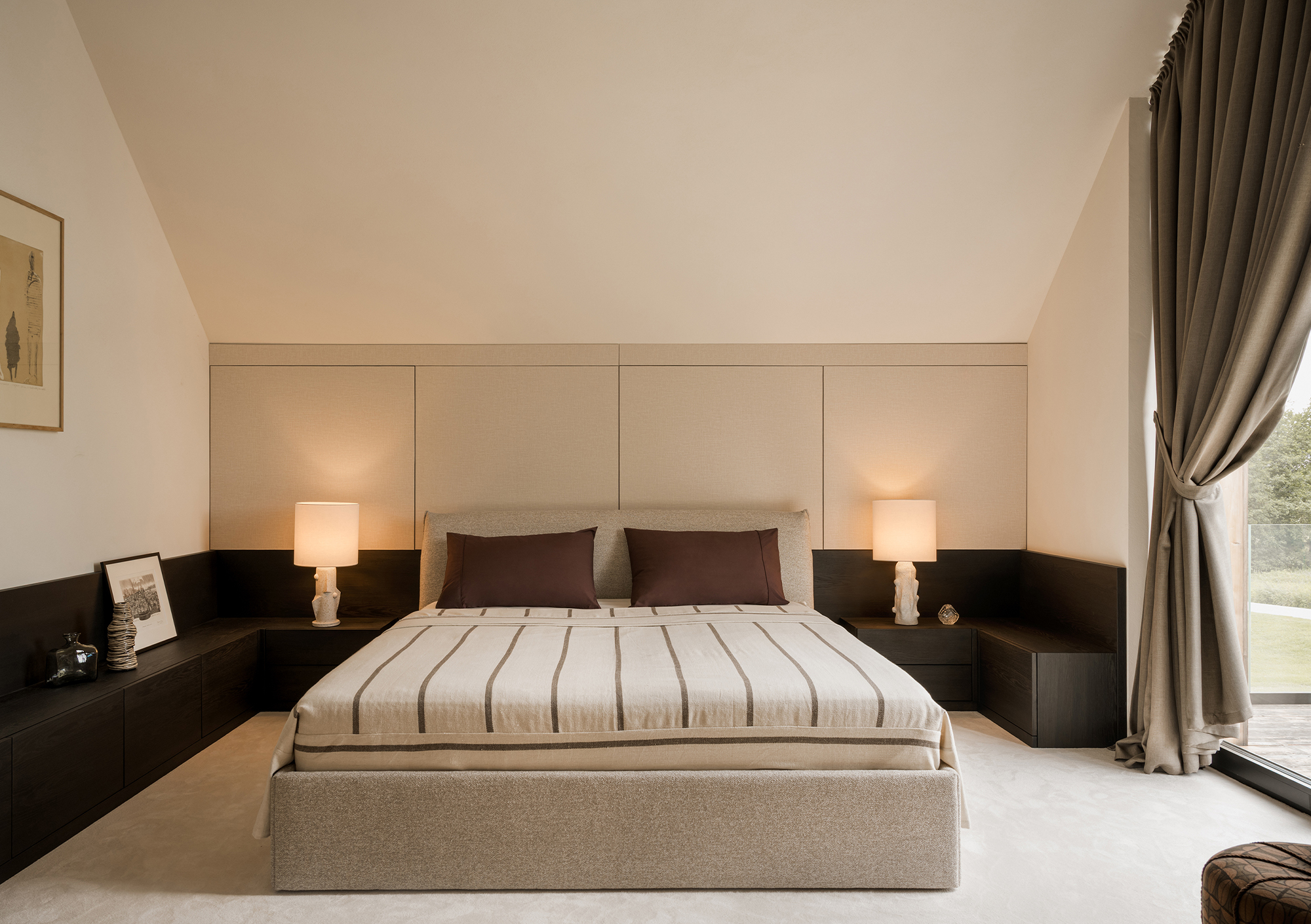 The result is a space deeply rooted in its context: the architecture, the landscape, and the lifestyle of its owners. Calm and timeless, the house combines natural materials, art, and bespoke furniture into a coherent and sensitive whole. It is a place that invites one to live in harmony with nature and in the rhythm of its residents.