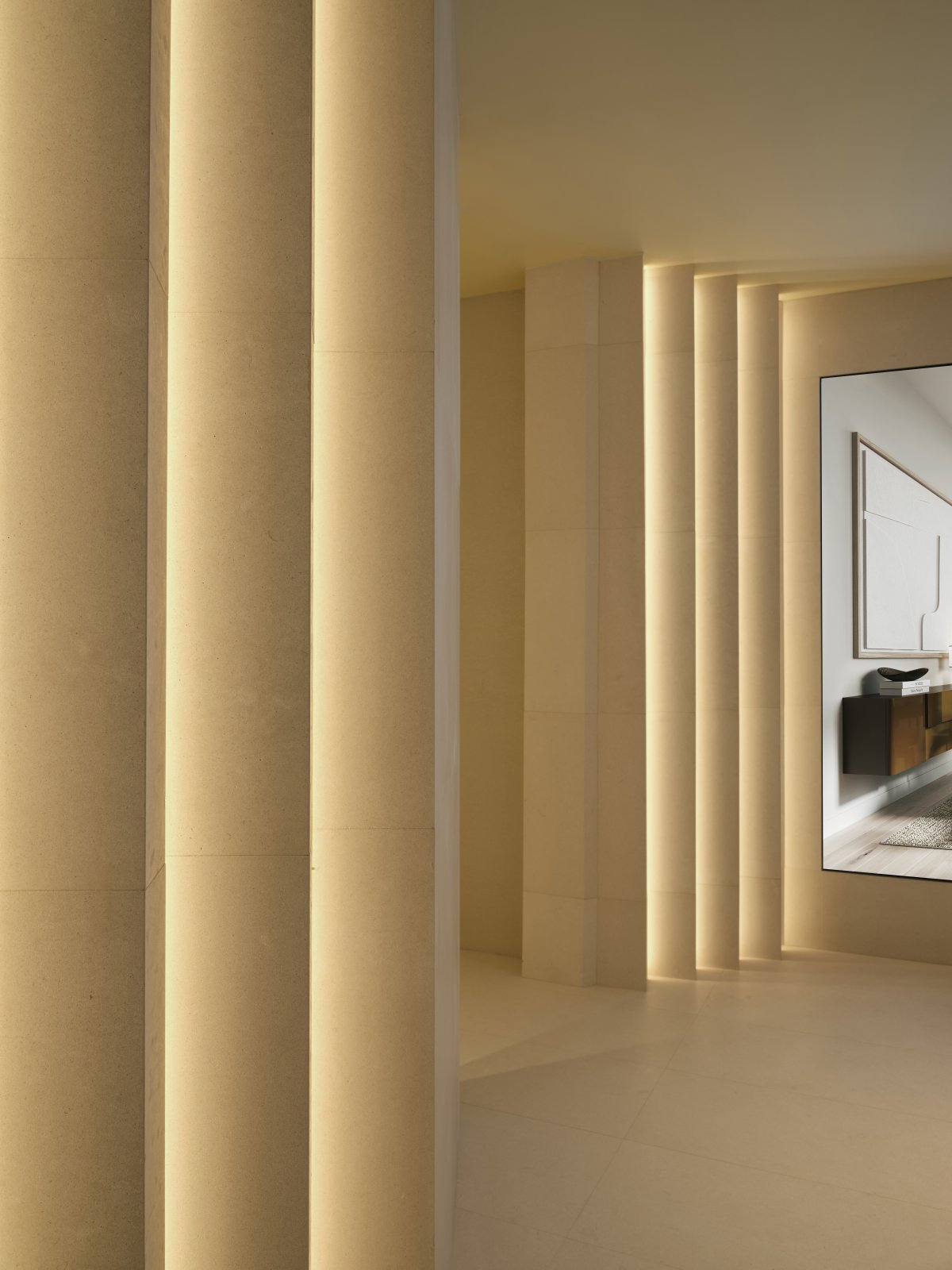 Breaking away from the traditional sales office model, Studio Paolo Ferrari and Burnac reimagined The Bedford’s Presentation Gallery as an experiential narrative, meticulously weaving elements of surprise and enchantment into every corner. The space serves as a living embodiment of the project's ethos, seamlessly integrating architectural language with artistic expression. Through a thoughtful curation of textures, colors, and spatial arrangements, guests are transported into a world where design transcends mere functionality, evoking emotions and sparking imaginations.