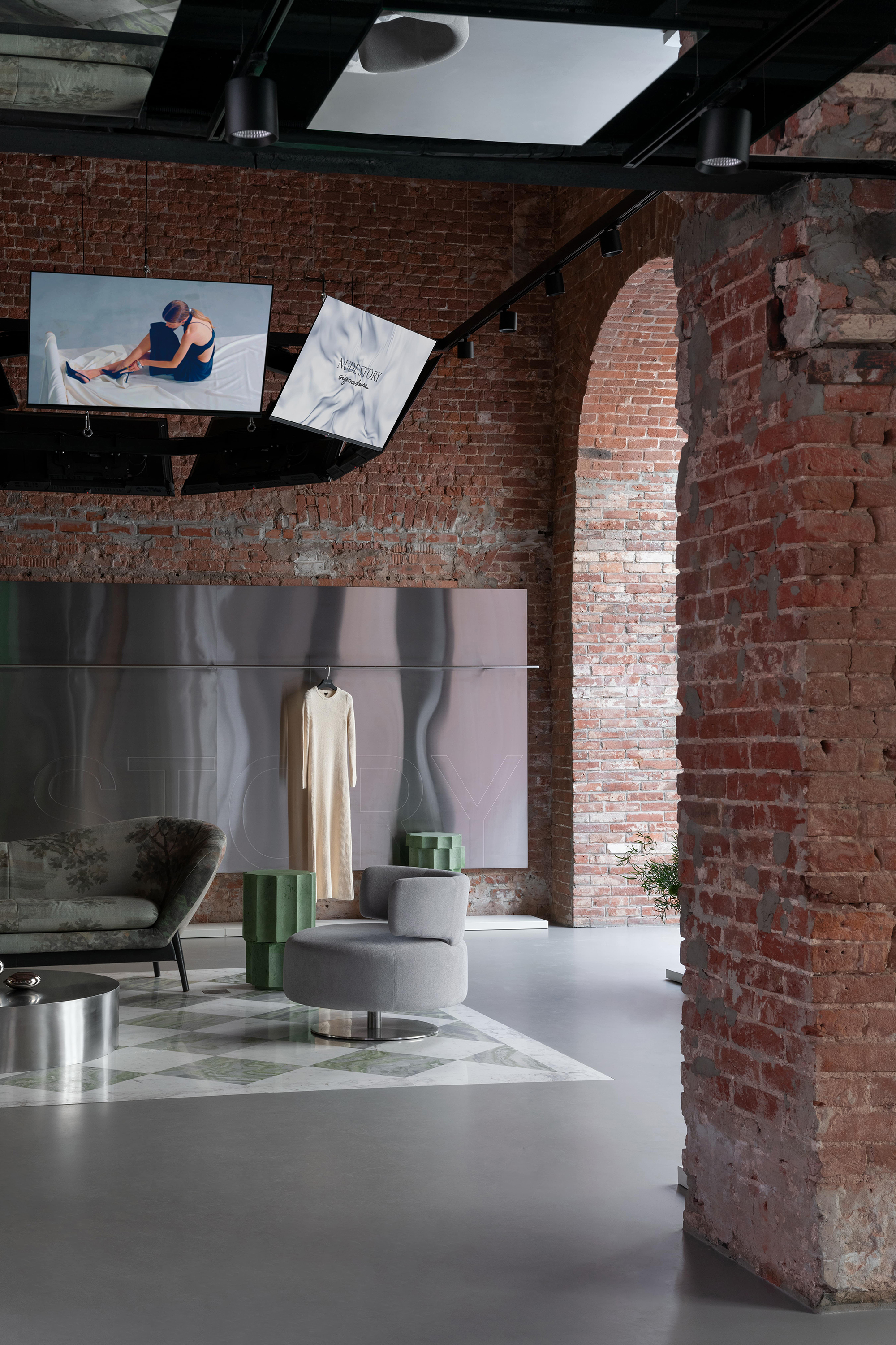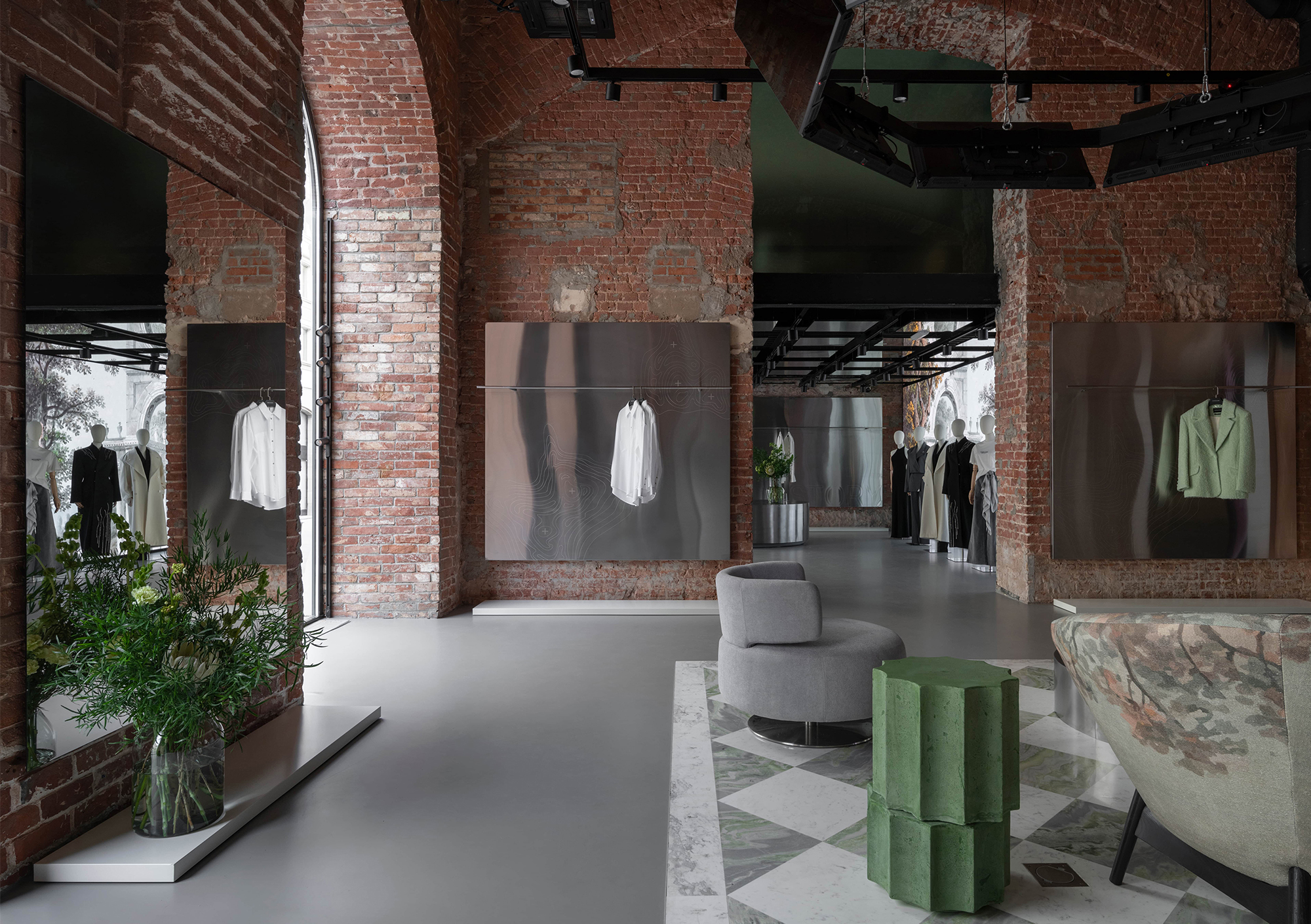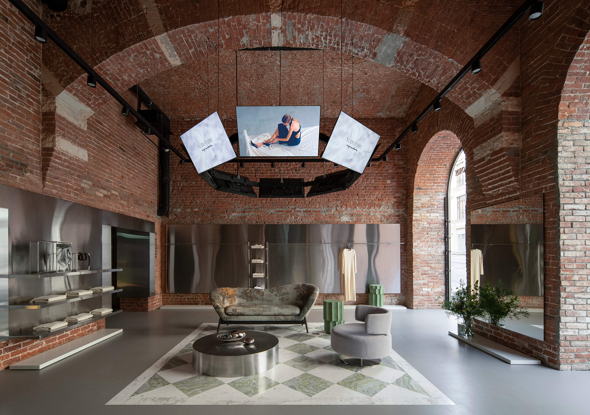 Nude Story flagship boutique on Kuznetsky Most in Moscow For the shop the brand has chosen a building from 1899 - the profitable house of A.S.Khomyakov at the intersection of Kuznetsky Most and Petrovka. A fashion house, a digital gallery or a palazzo from Italian furniture catalogues? We wanted to unite all three themes in the new flagship Nude Story on Kuznetsky Most. All these 3 trends are united by grand and inspiring architecture, airy layouts and high ceilings.