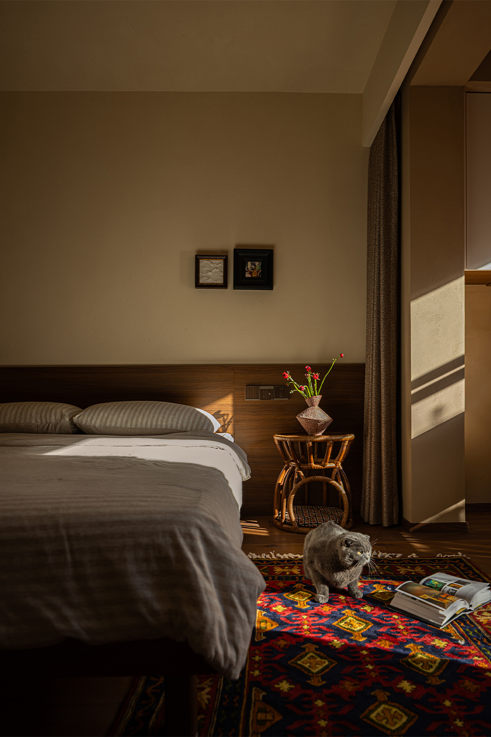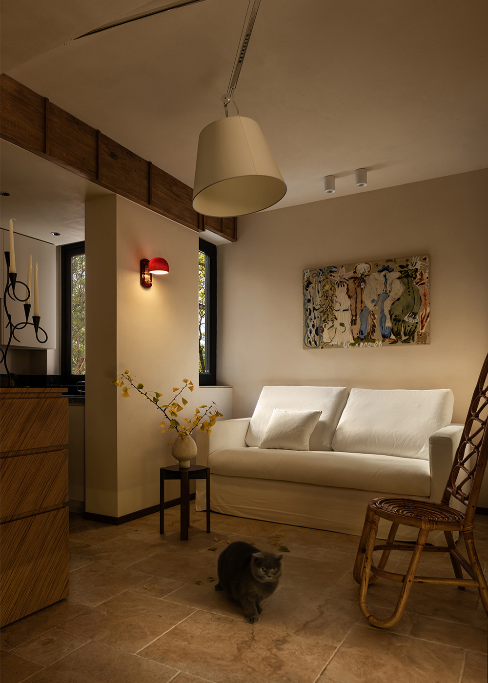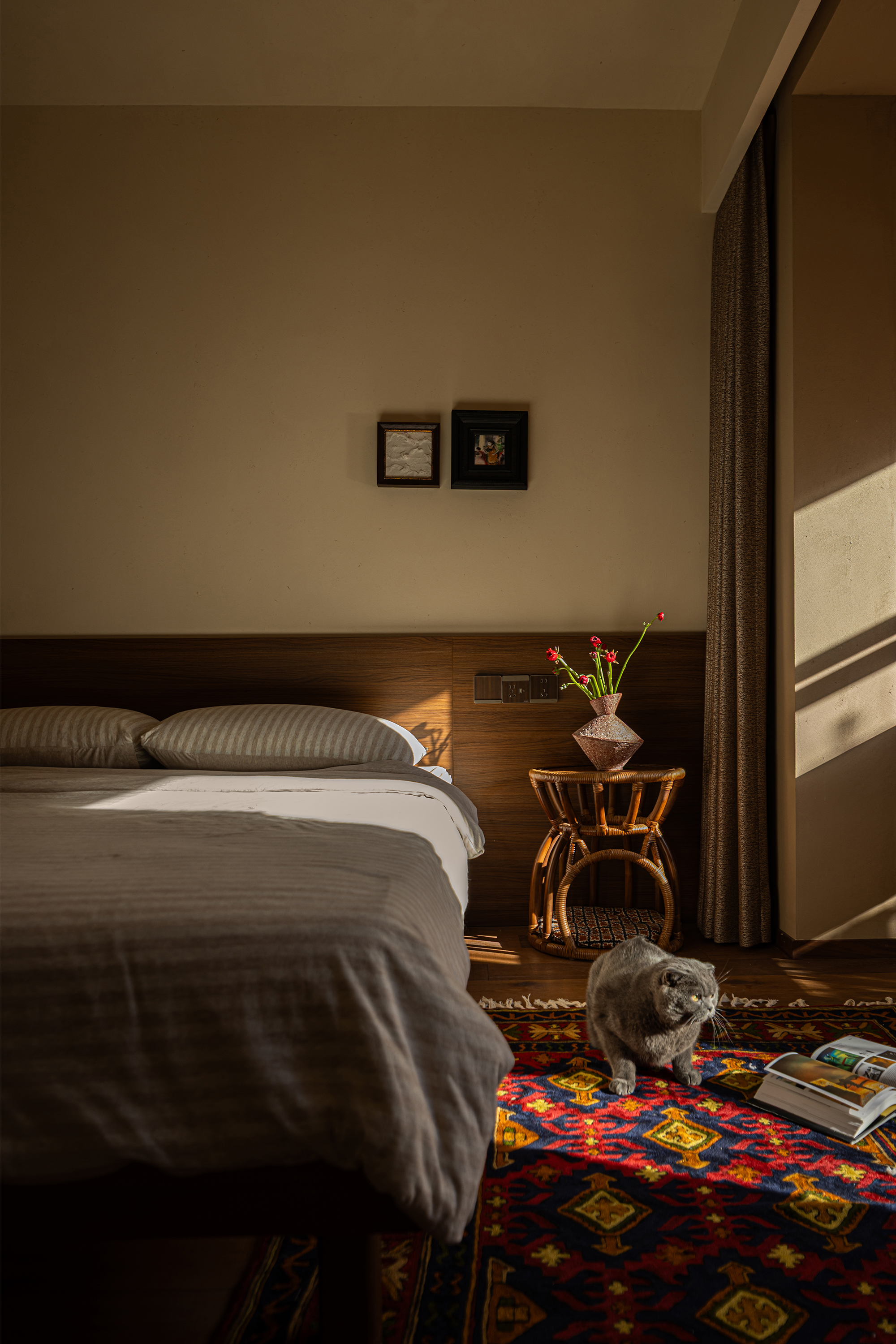 Qian Xiao - Home is a love letter that Shi Yu Design writes to life. The scenery within the red window frame, the warmth behind the blue door, the joy of shuttling through the cat door, the tranquility of the relaxation corner - these seemingly ordinary details are precisely what make a home a home. In this space, nature and art are not objects to be viewed, but everyday elements that can be touched and perceived.