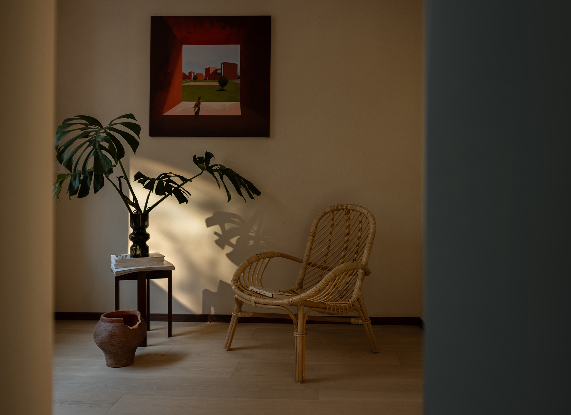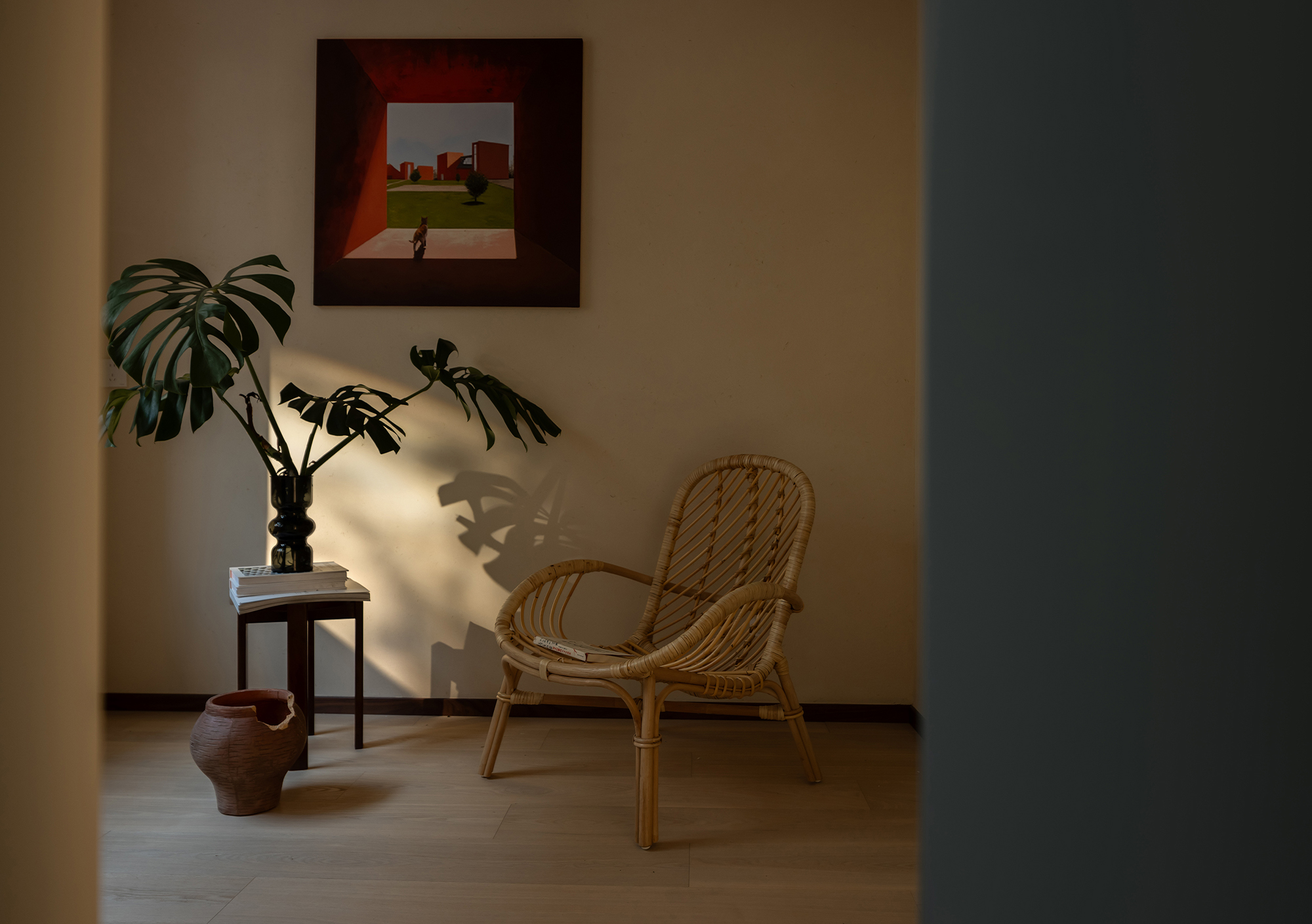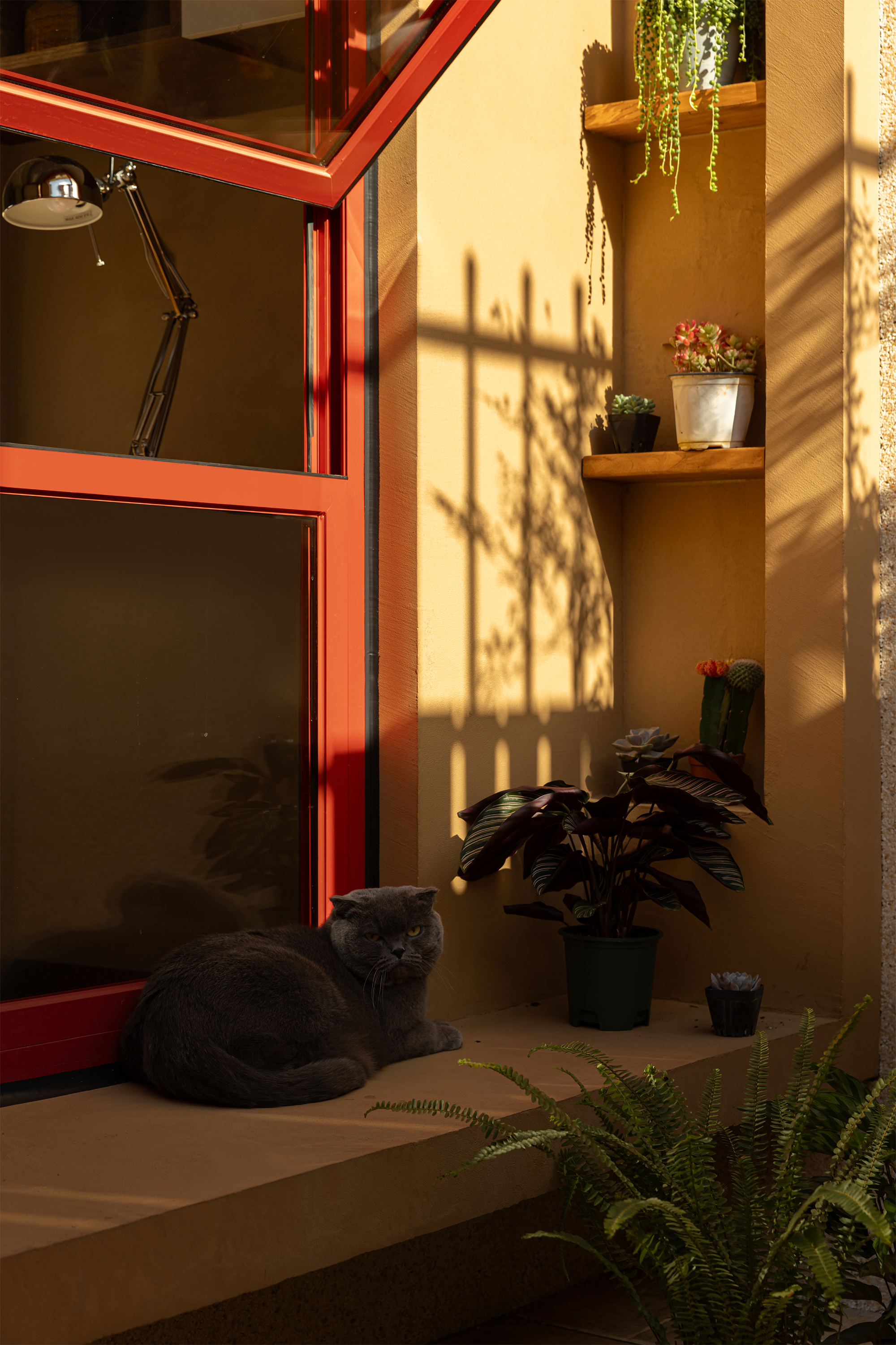 Qian Xiao - Home is a love letter that Shi Yu Design writes to life. The scenery within the red window frame, the warmth behind the blue door, the joy of shuttling through the cat door, the tranquility of the relaxation corner - these seemingly ordinary details are precisely what make a home a home. In this space, nature and art are not objects to be viewed, but everyday elements that can be touched and perceived.