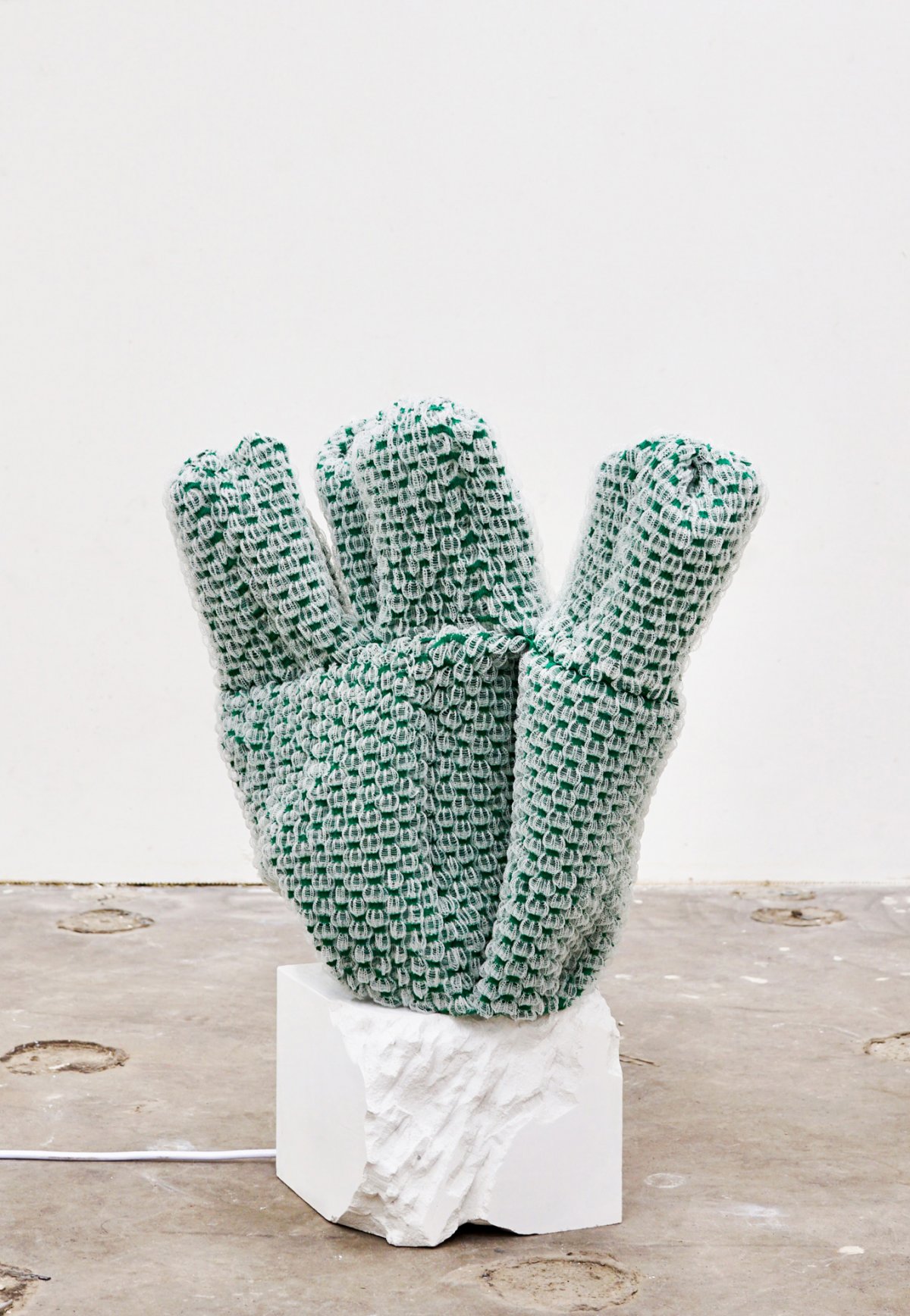The different sources of light that the textile can be exposed to realize many layers to itsmaterial. In daylight, it remains as a sculpture, we observe the natural colors, patterns,and textures. When exposed to an artificial light the textile changes to produce a newbeauty and dimension. On removing the light, in darkness, the textile glows, it producesits own light resembling the glowing coral reefs, we observe the patterns and shapesagain with nuance.