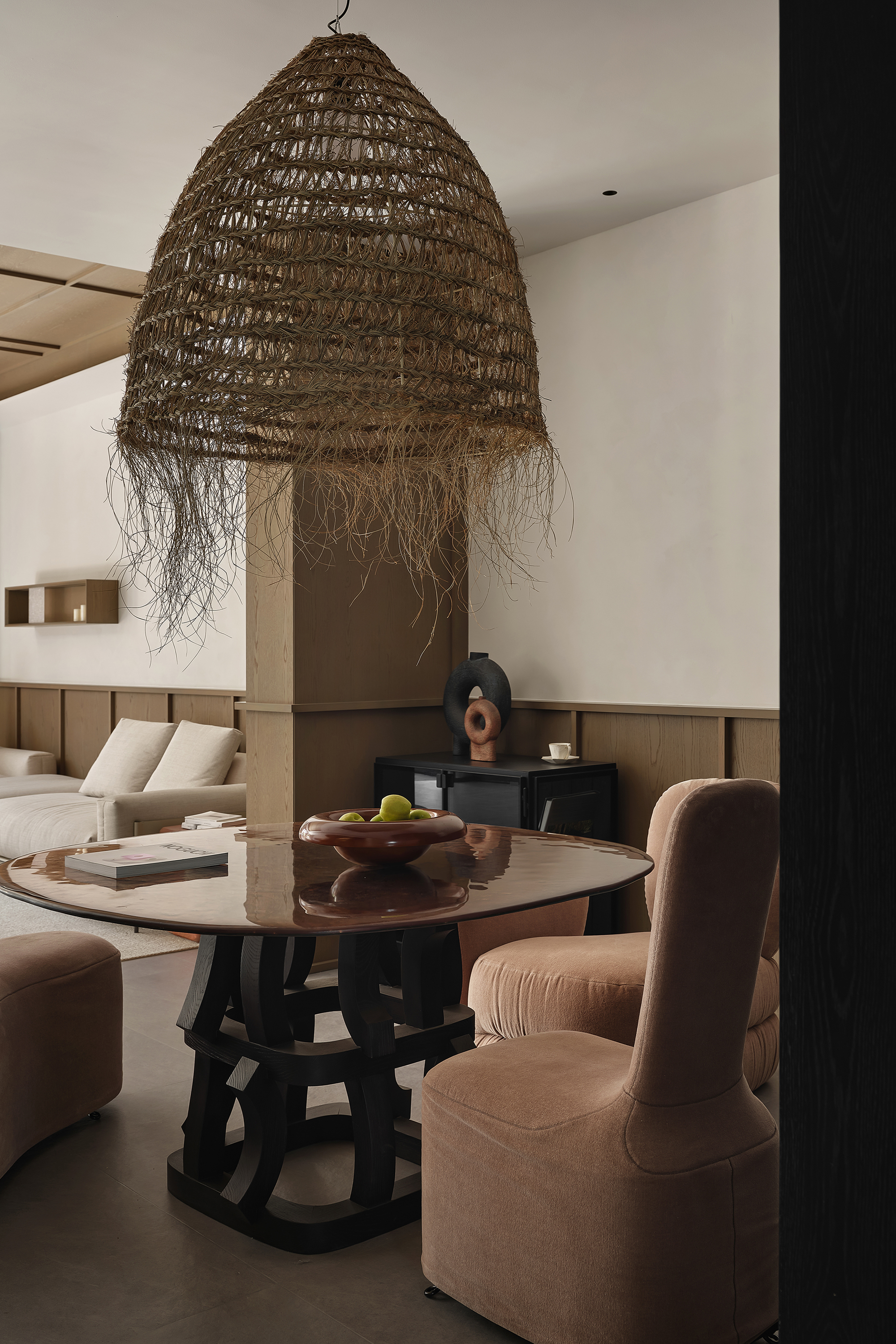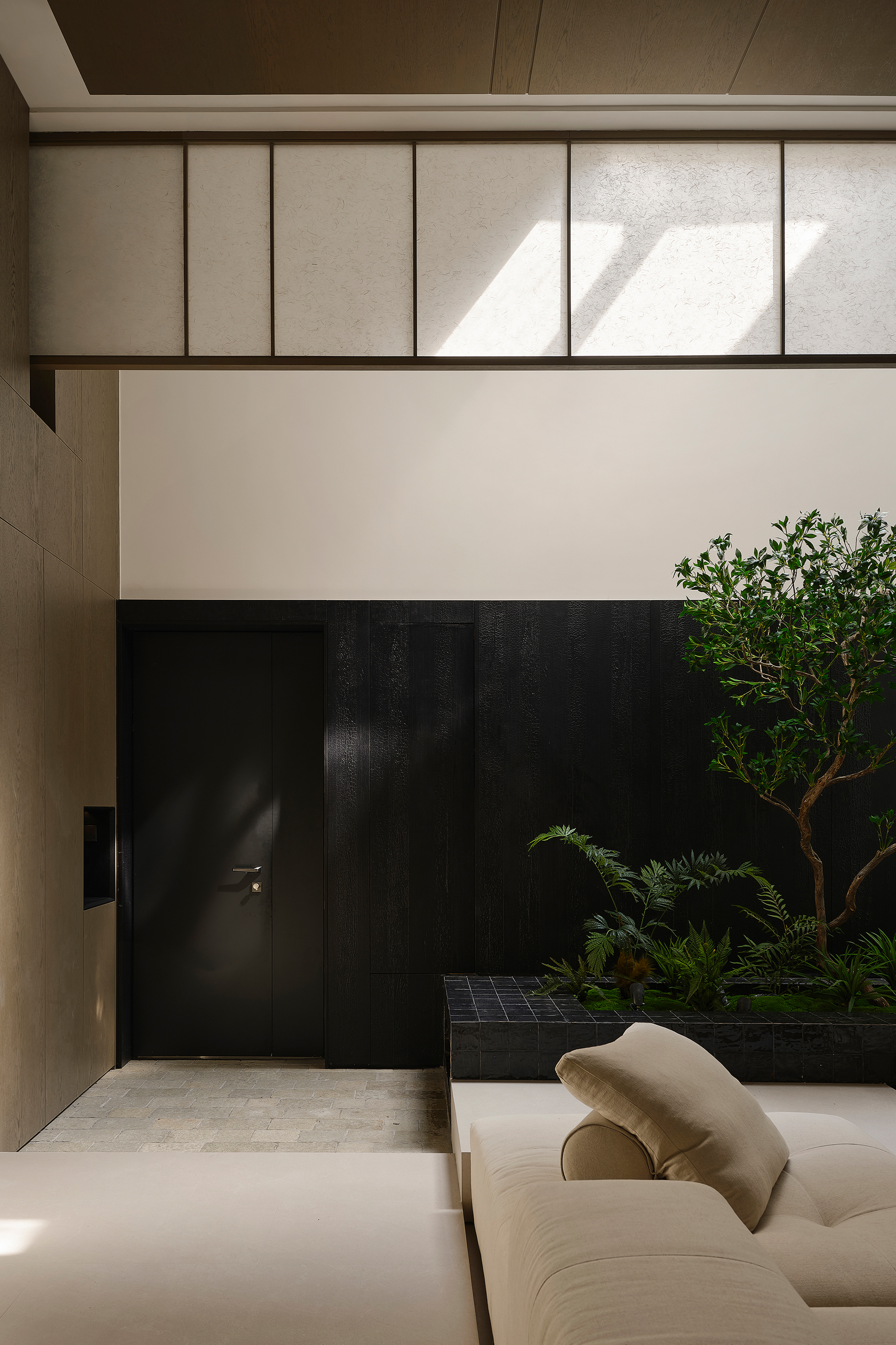 The staircase, as a medium connecting spaces, is not merely a tool for vertical circulation—it also becomes a channel for the flow of light and sightlines. The glass elevator is transparent and light, allowing light to pass through unobstructed while reflecting the subtle traces of life unfolding within the space. We firmly believe that true comfort does not stem from elaborate construction, but from respecting and responding to the rhythms of nature. When the wind passes through the atrium and light falls onto the floor, the space begins to breathe.