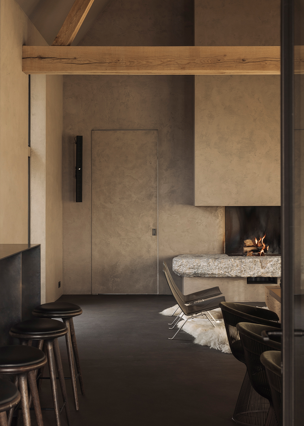 Today, the family uses the new living space every weekend – with the fire taking centre stage. Designed to catch the eye, it serves as both a welcoming fireplace and barbecue throughout the year. Its primal character pairs beautifully with the earthy colour palette and natural materials used throughout the interior.