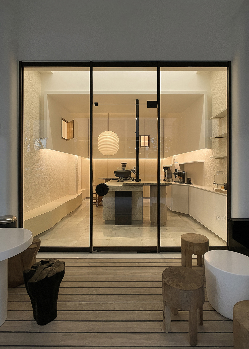 Similarly, the form of the counter had been deliberately designed as irregular, with two raised platforms at the ends, serving as a bar and POS (point of sale). This way, the customers become spectators actively participating in a performance, creating a smooth interaction between barista-and-customer.