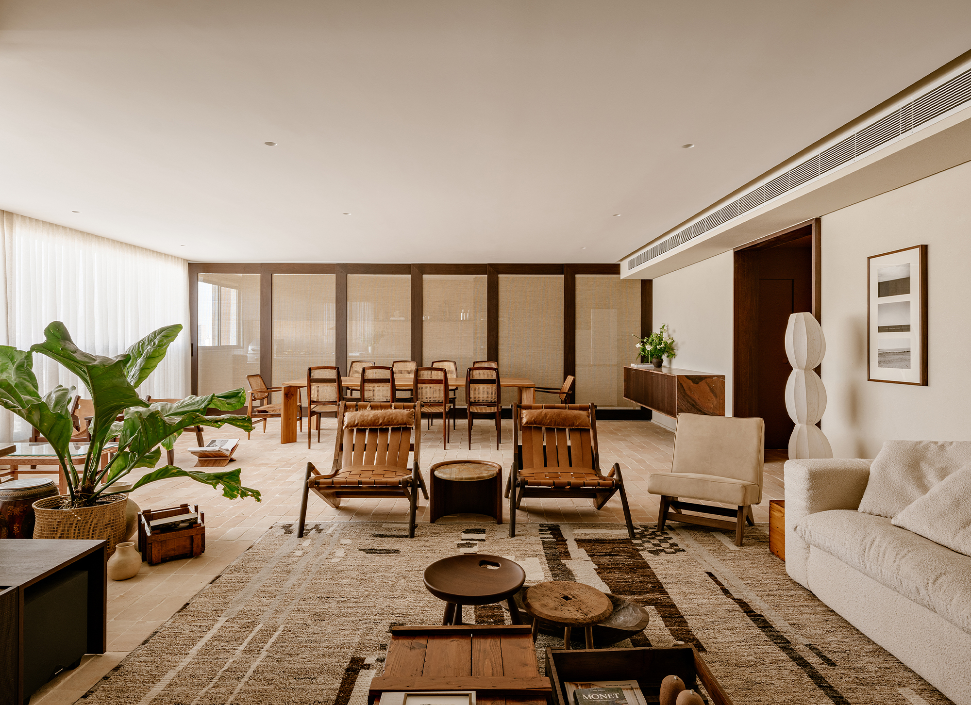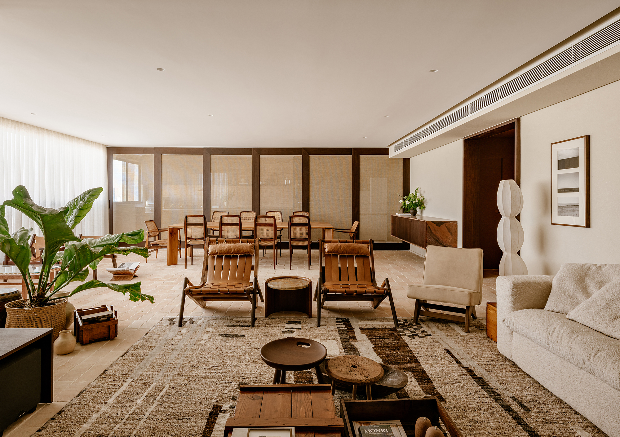 The choice of furniture follows the same curatorial line, with pieces of Brazilian design, combined with antiques sourced from local dealers. Together, they engage in dialogue with the architectural context without overwhelming the space.