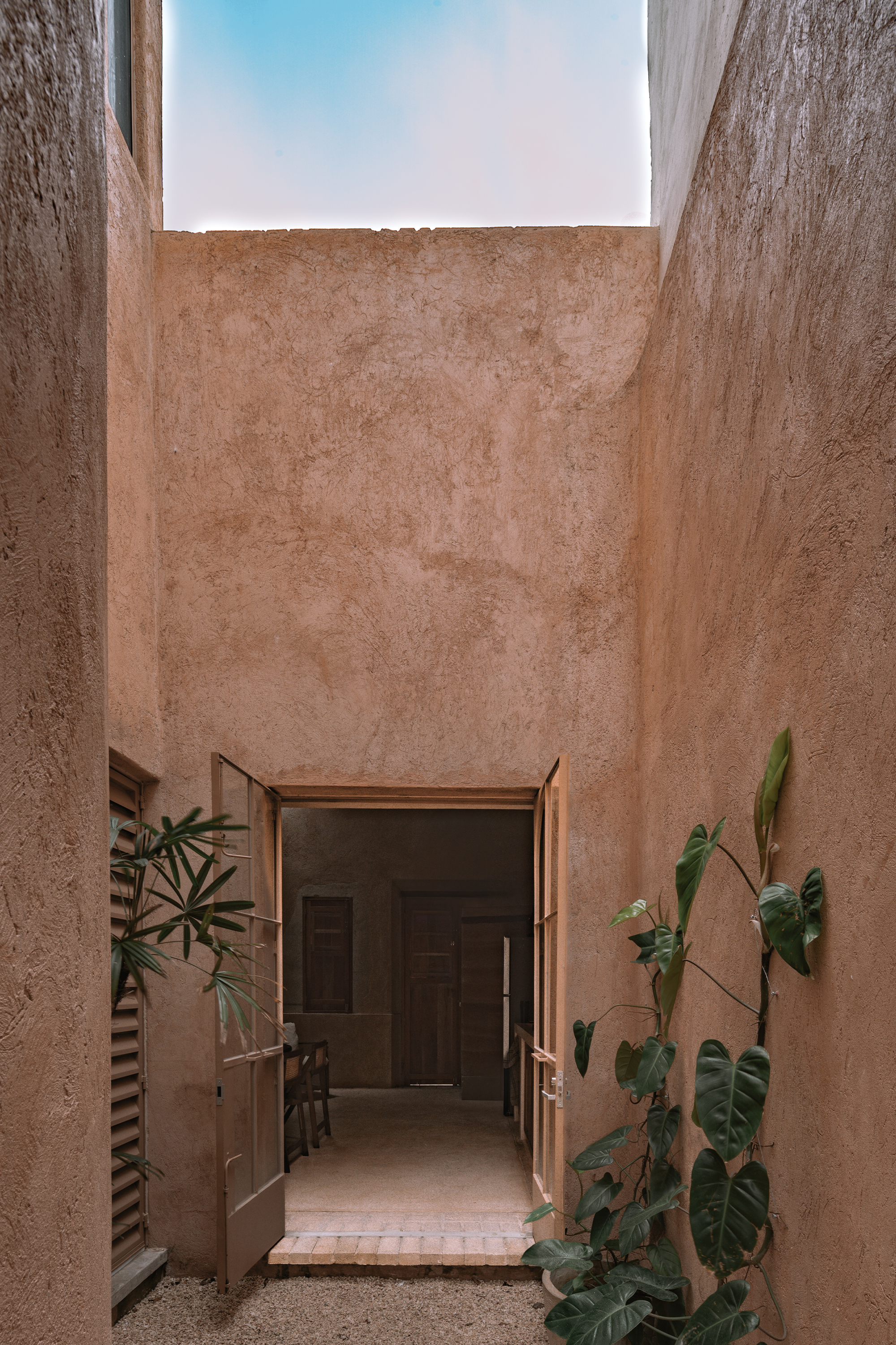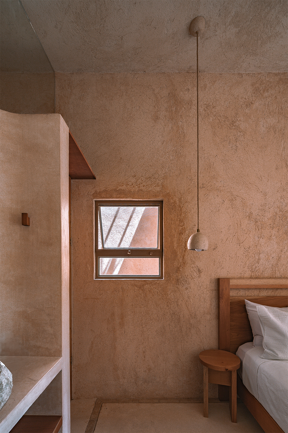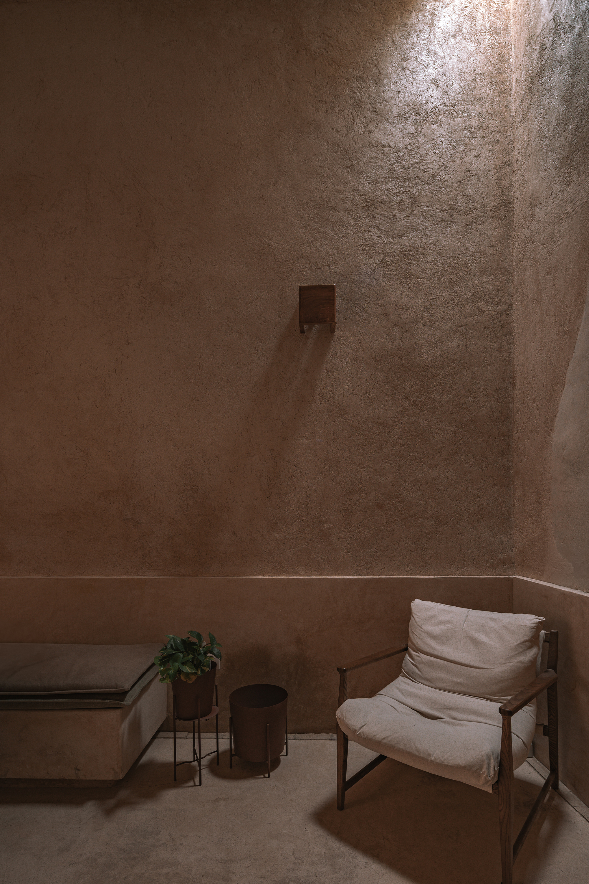 Materials were selected in close dialogue with the site. The exterior patchwork was mixed with local earth, giving the walls a warm, terracotta tone that defines the entire volume. Built-in furniture and carpentry are made from solid cedar, adding texture and continuity. The overall palette is sober—minimal, with nothing excessive. Portal 62 is a small house, but full of intention. It was never meant to impress. It was meant to be discovered.