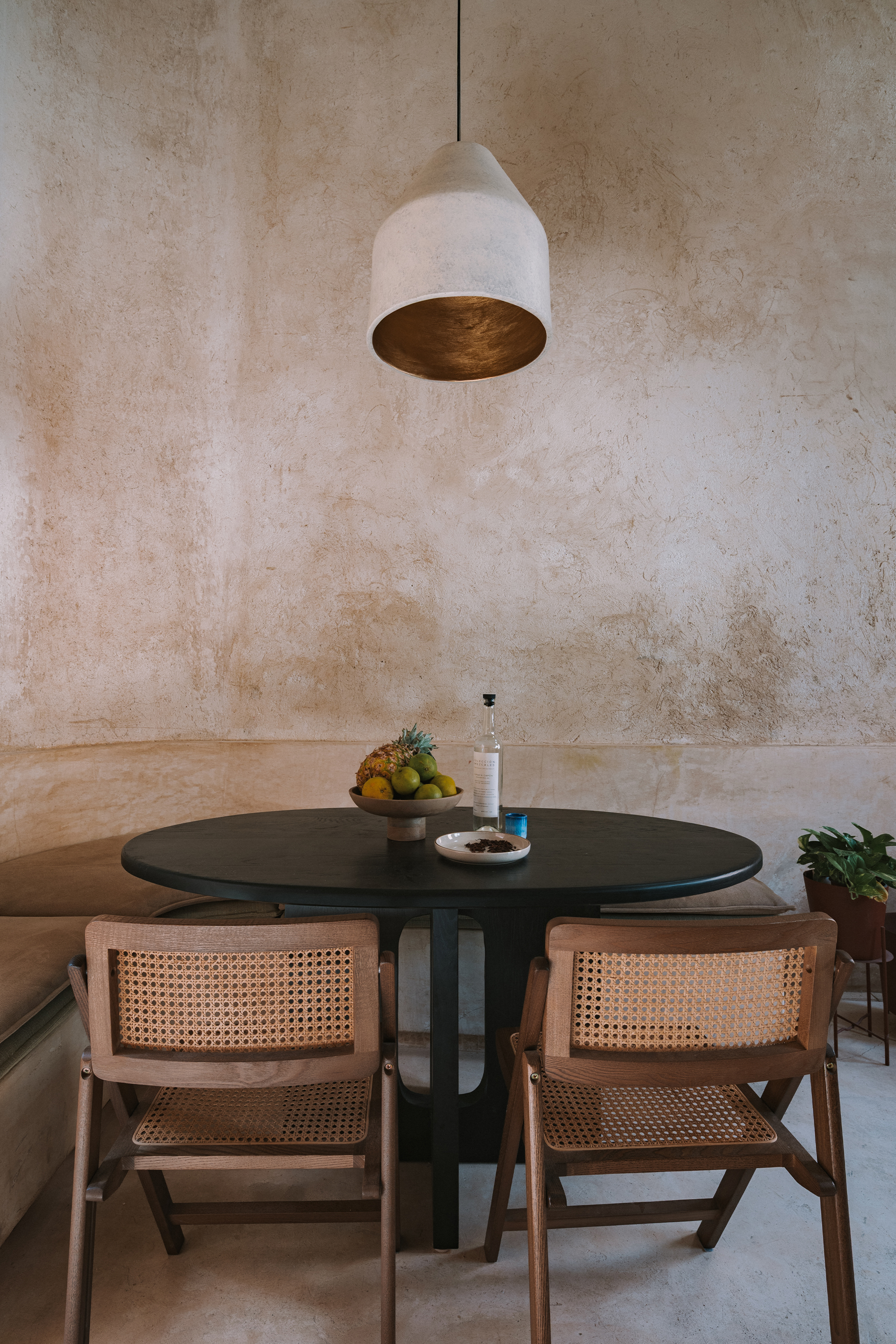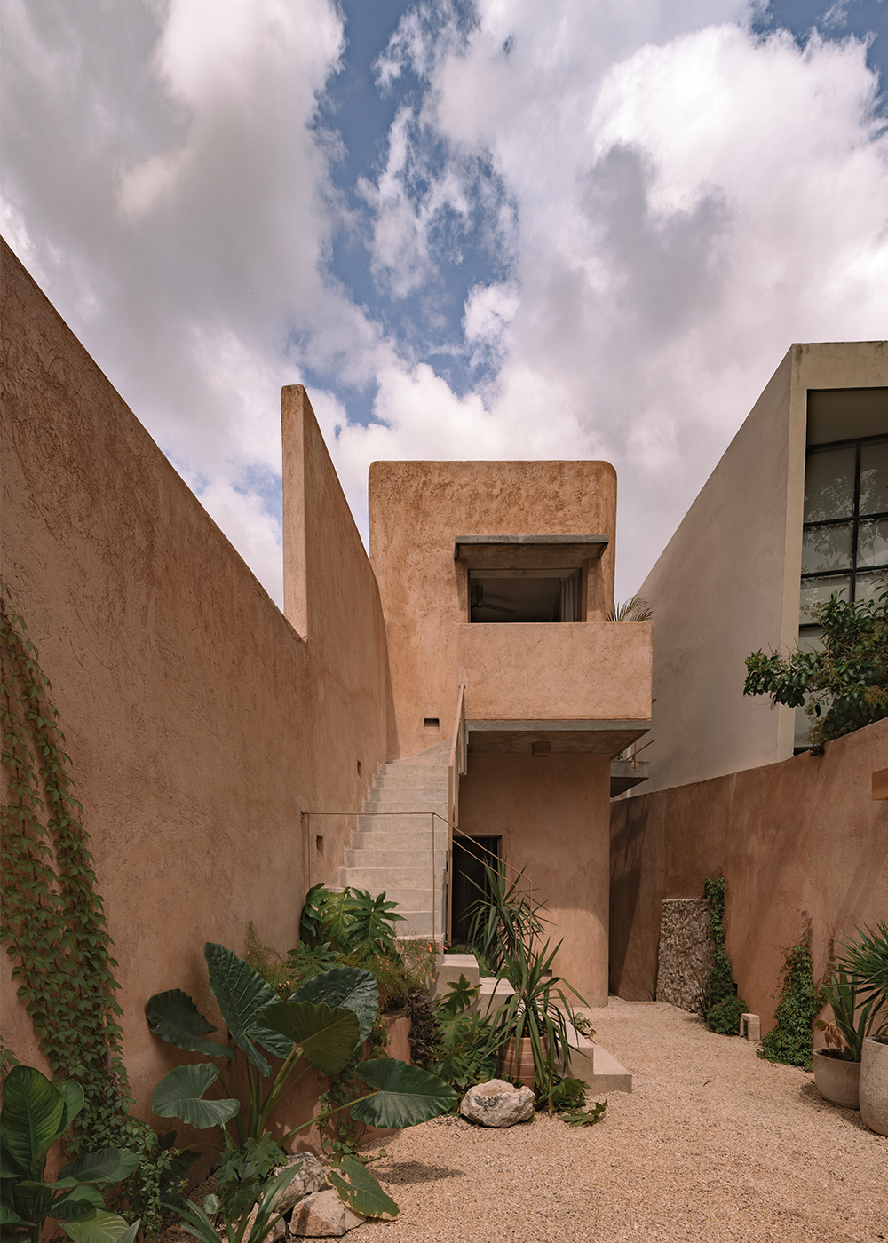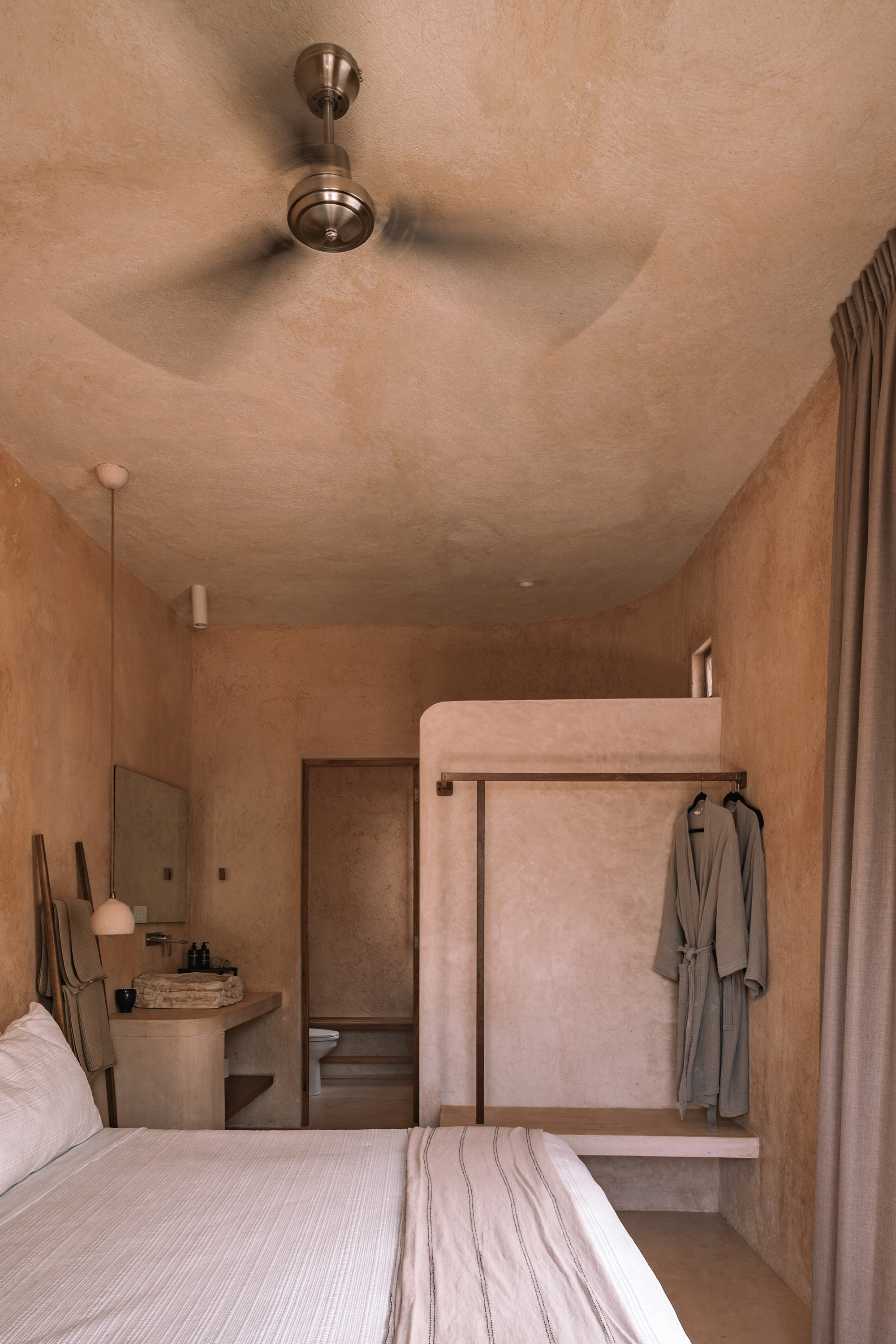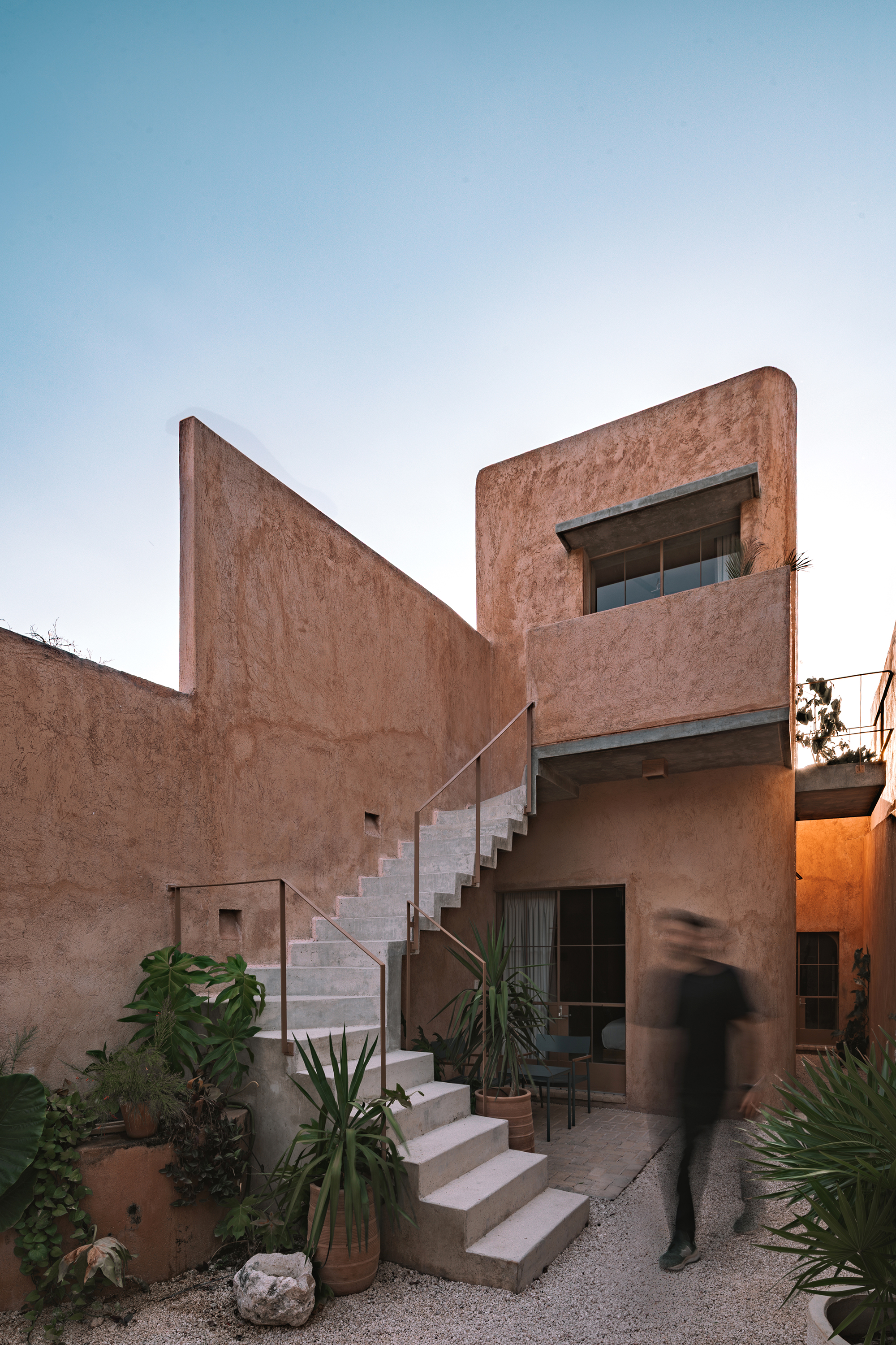 Materials were selected in close dialogue with the site. The exterior patchwork was mixed with local earth, giving the walls a warm, terracotta tone that defines the entire volume. Built-in furniture and carpentry are made from solid cedar, adding texture and continuity. The overall palette is sober—minimal, with nothing excessive. Portal 62 is a small house, but full of intention. It was never meant to impress. It was meant to be discovered.