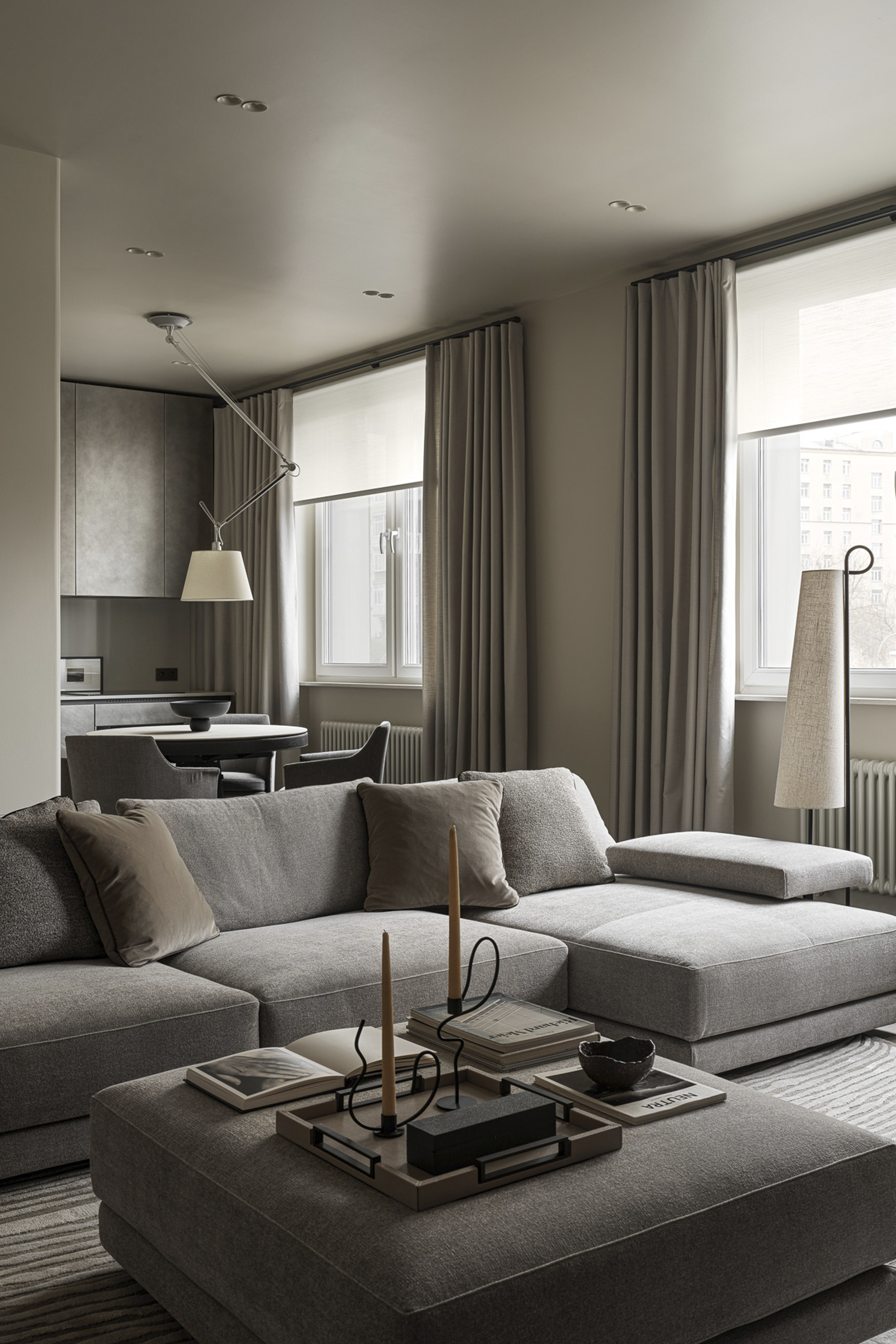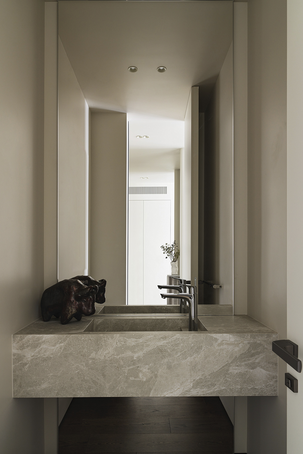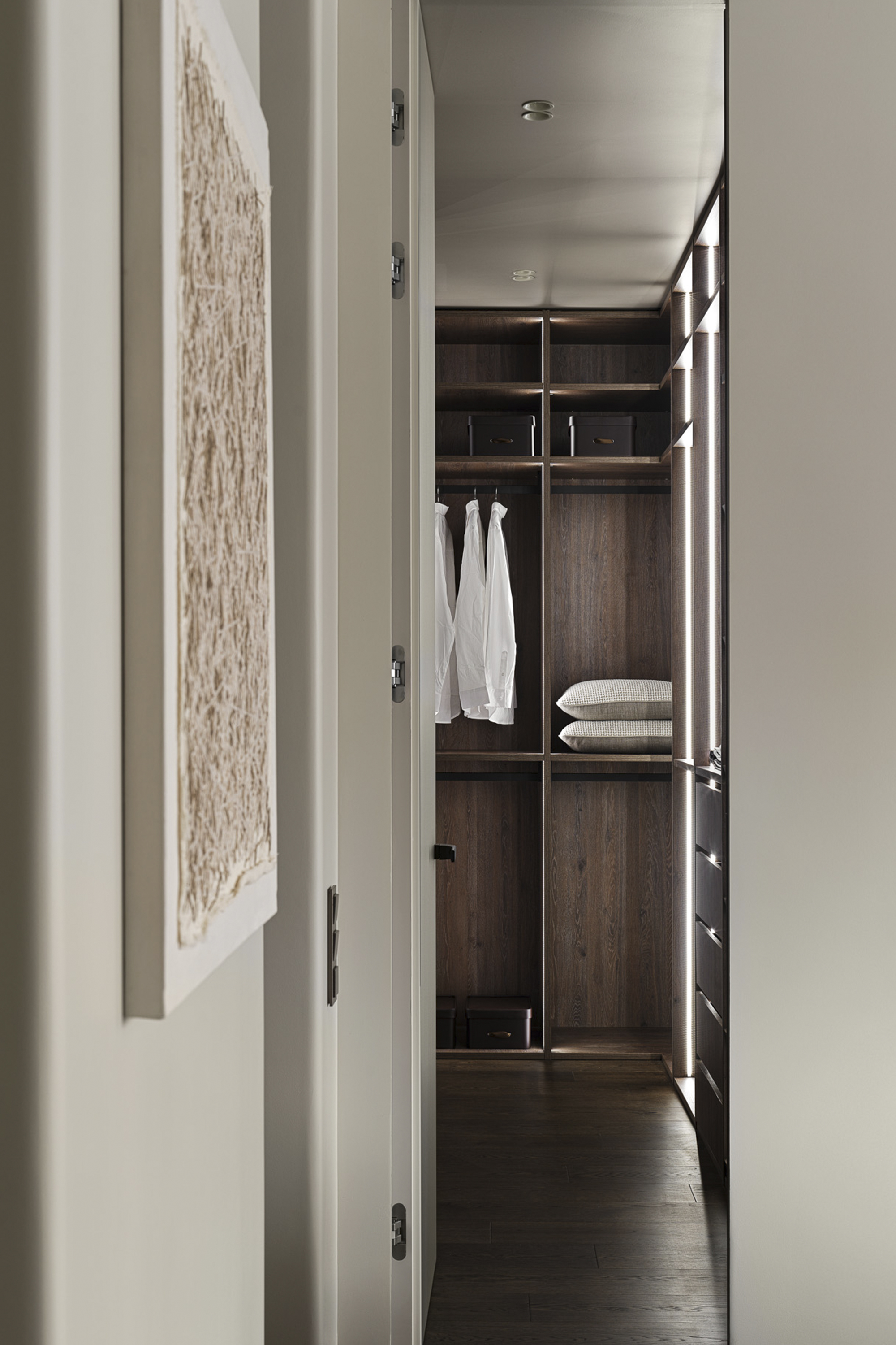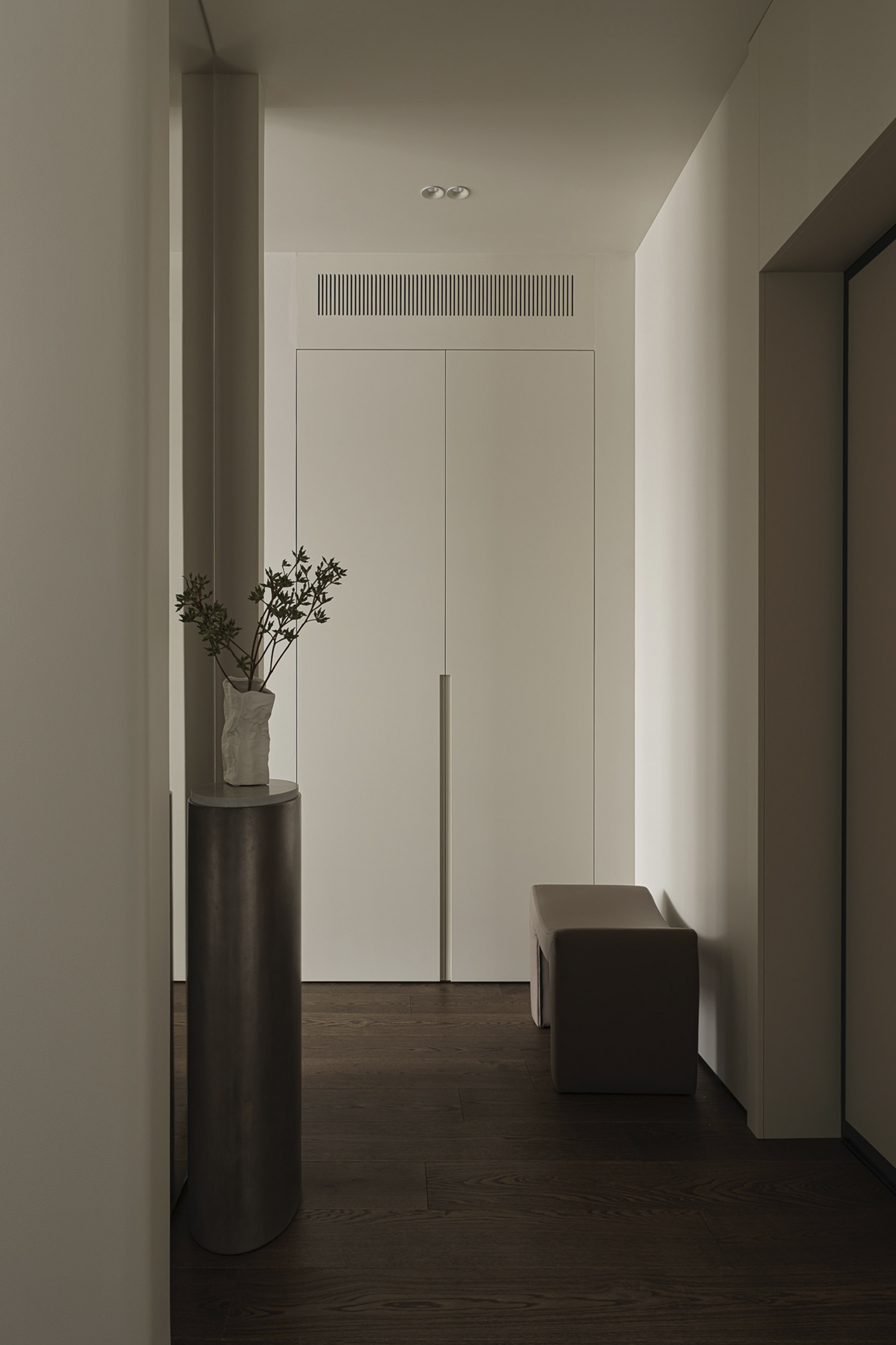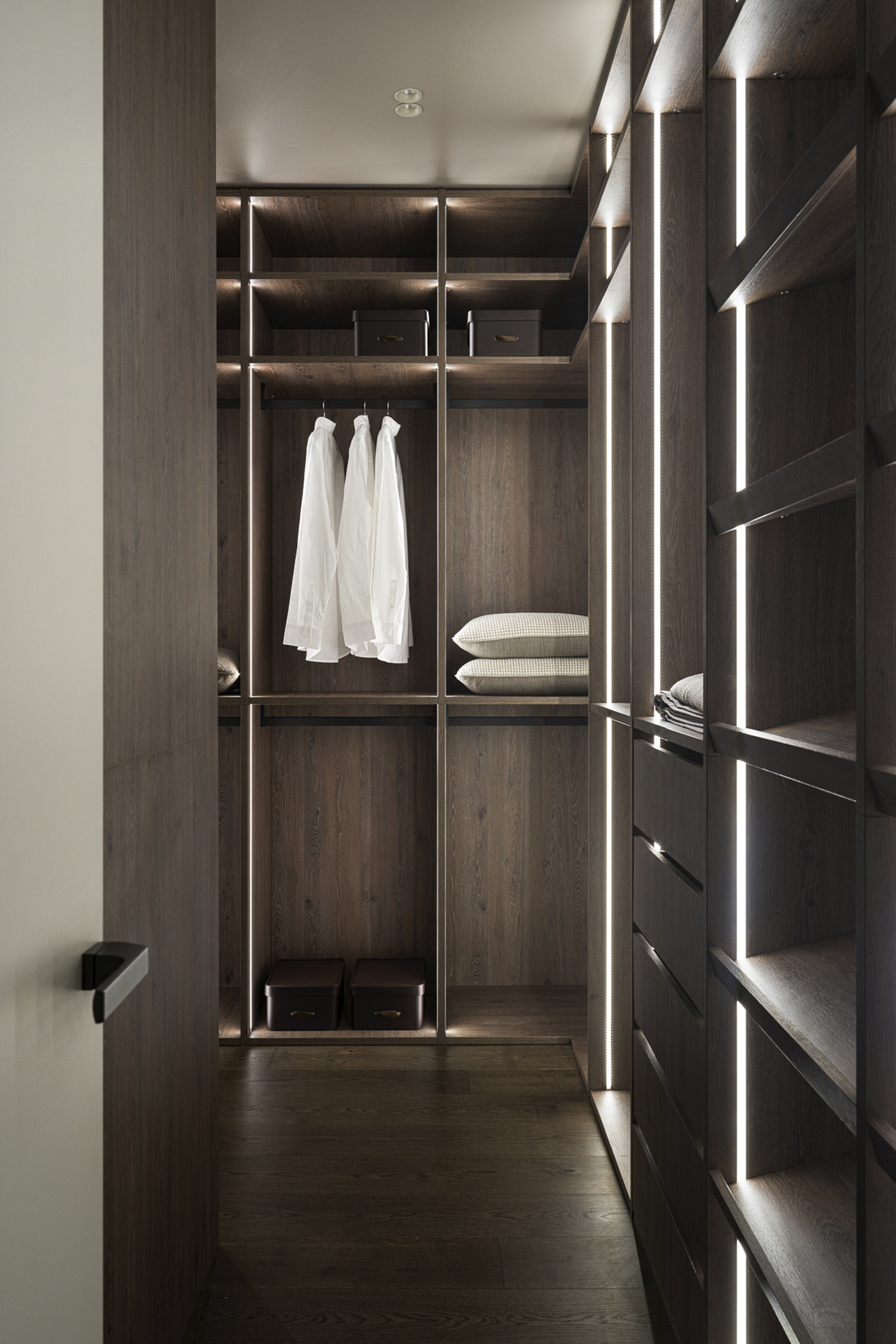 This apartment was designed for a male client who wanted a modern, minimalist interior with ample storage space—a strict yet comfortable home that would always feel welcoming.