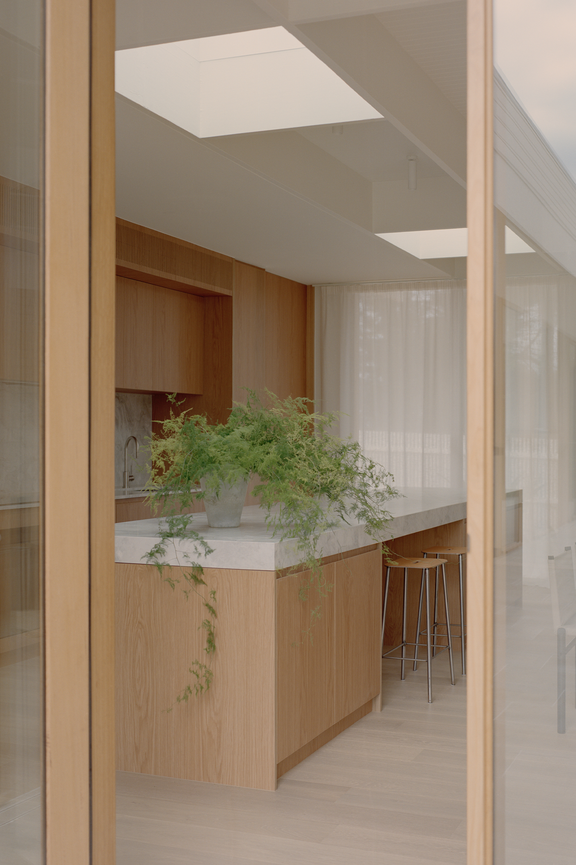 Mount Martha House responds sensitively to its coastal context, embracing the natural surroundings of the Mornington Peninsula. Positioned across from a park, the house capitalises on borrowed views, creating a sense of expansiveness that transcends its suburban setting.