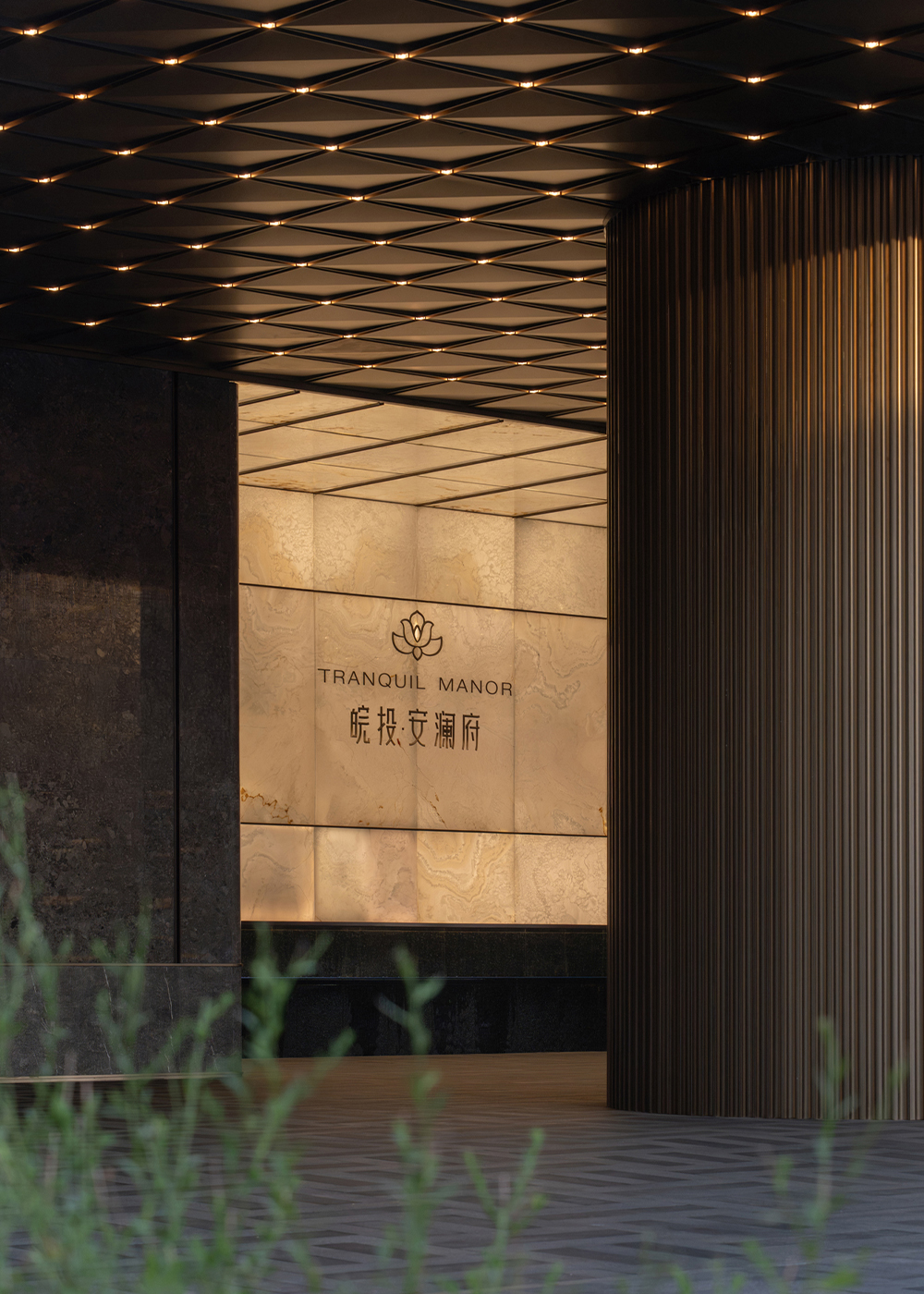 The main entrance features an extra-long porch, designed with a carefully customized central super symbol. The design integrates modern geometric art with traditional Chinese aesthetics, and conveys the humanistic essence of the East by deconstructing the Chinese "step-by-step brocade" technique. The design of the porch not only creates a sense of ceremony and reverence for returning home, but also borrows the concept of "visiting the house" in China traditional architecture, so that every visitor can feel the grand momentum and cultural accumulation of the project at the beginning.