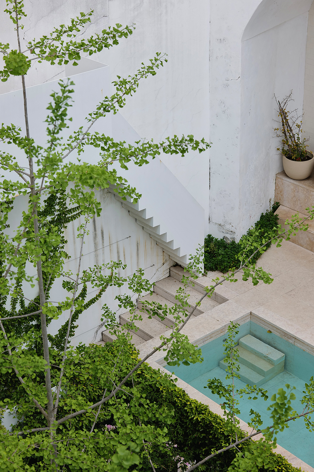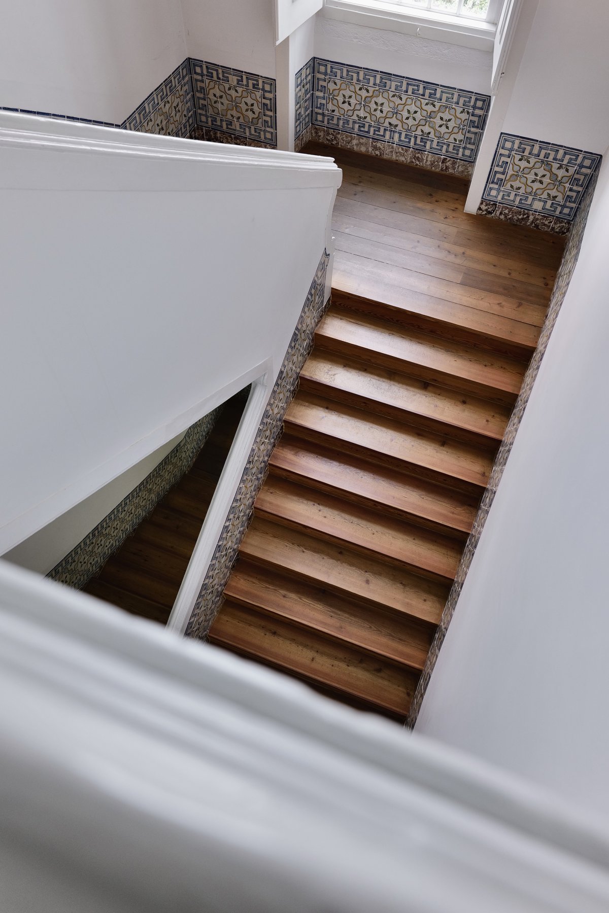 Atelier Cecílio de Sousa, the studio of Aires Mateus, carries a similar temperament. We entered the 18th-century space with an almost archaeological state of mind. Known for pure, restrained volumes, muted palettes, and an emphasis on the “void,” Aires Mateus shapes emotion through disciplined minimalism. The stone steps beneath us have endured for two centuries; fingertips brush against hand-painted tiles on either side. Against the clarity of the white walls, the ascent feels like a gentle passage through time—where the elegance of the 18th century meets the quiet simplicity of the present.