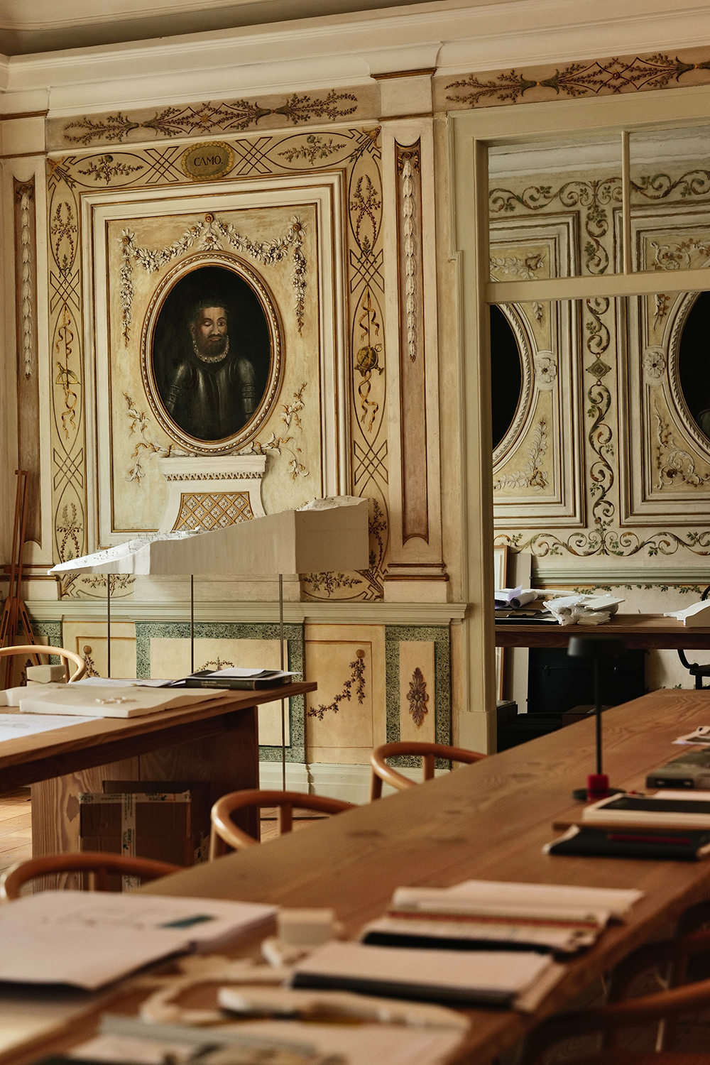 Since 2010, the Aires Mateus team has approached the renovation of this centuries-old building with a sense of reverence. Their intervention was not a rewriting, but a quiet dialogue—preserving the integrity of its spaces and structure so the building could continue to breathe within a contemporary context. Aside from essential structural and MEP upgrades, original elements such as ceilings, wall ornaments, and fireplaces were meticulously restored, allowing the building’s life to extend through renewal.