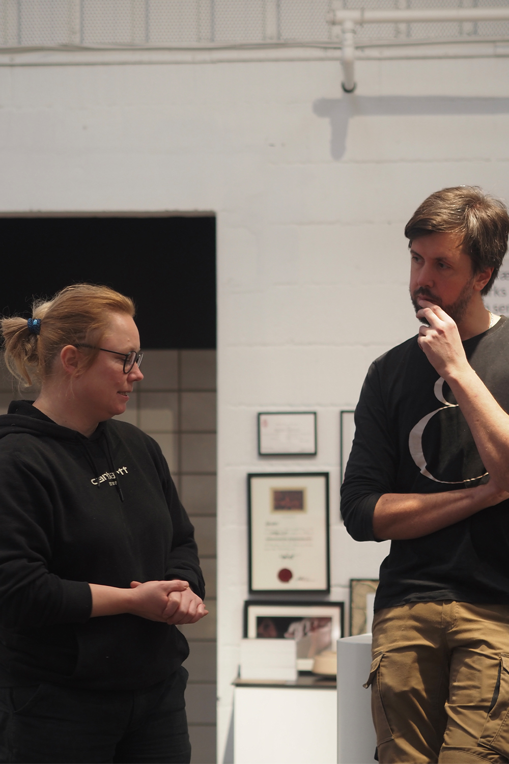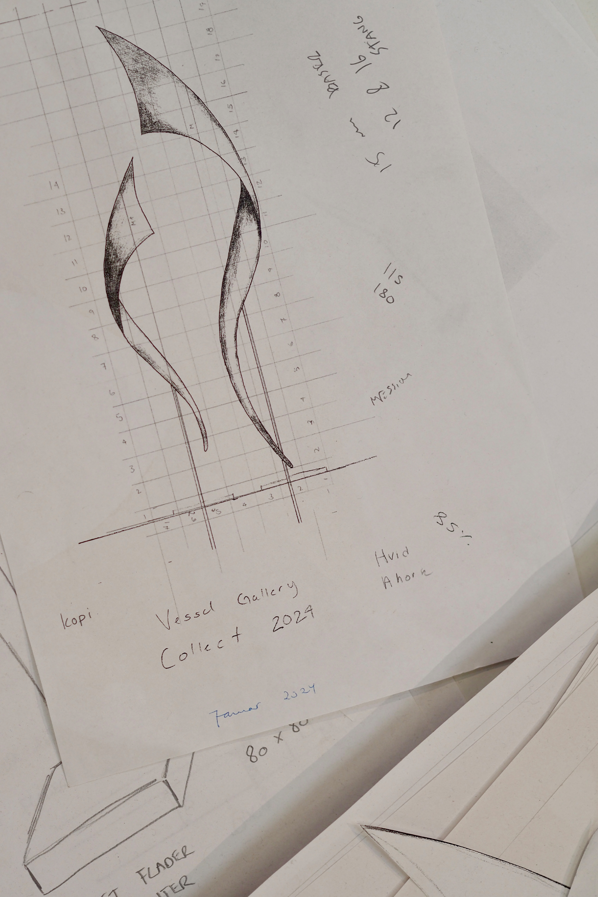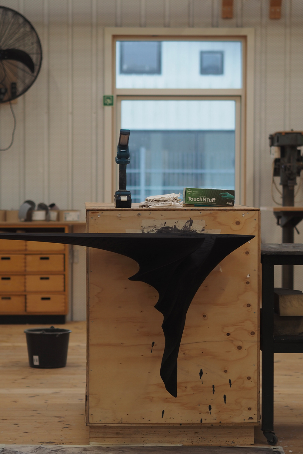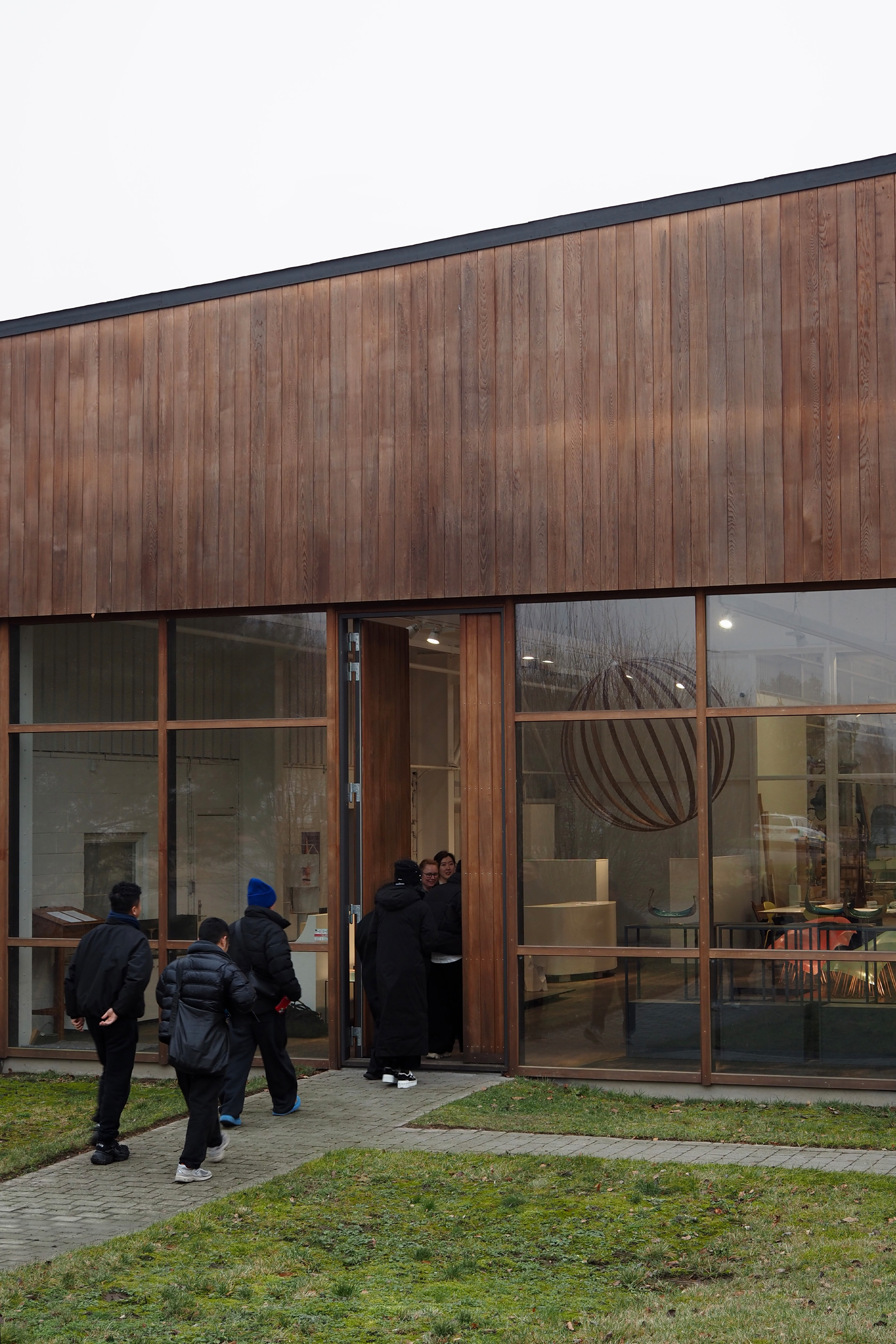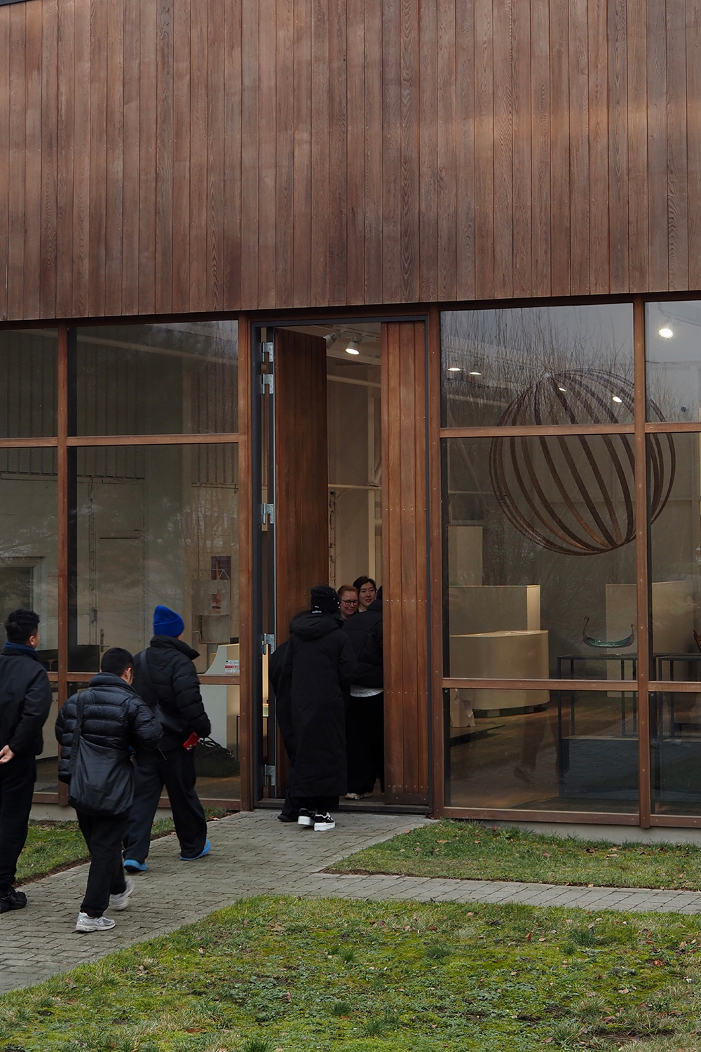When we arrived by car as scheduled, a snowstorm was raging, blurring the boundaries between sky and earth. Mette was already waiting at the studio entrance. Through the windows, warm light spilled out, and in the room fragrant with wood, the cold seemed to stop at the door. The minimalist building's foyer is a space where works and inspirations linger; further inside lies the source of creation. "Everything from idea to production happens here," Mette said with a smile.