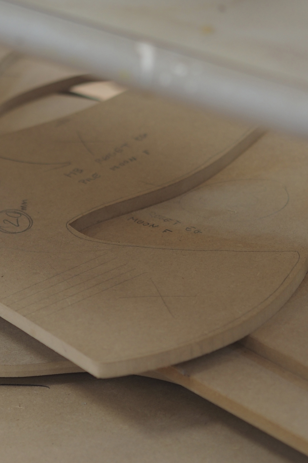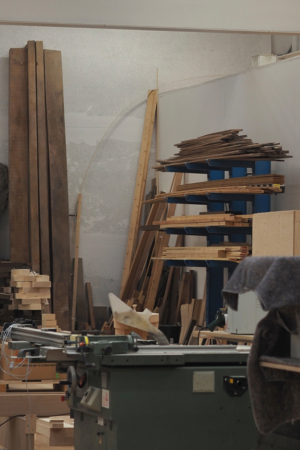 Later, Mette led us into the workshop. Inside, a studio member was intently sanding the curves of a new "ICE" piece; machines hummed softly, and wood dust floated lightly. Nearby surfaces were scattered with design sketches and cardboard models, while on the floor, stacks of initially glued wood blocks awaited the next steps. "Each layer of laminated wood must rest for at least a full day, allowing the internal tensions in the wood to release naturally," Mette explained. "If you force and press all the layers together at once, it will definitely crack." It is this deep understanding and respect for the material's nature that makes Egeværk's works not just pieces of furniture, but living entities capable of calmly enduring different national climates and humidity levels.