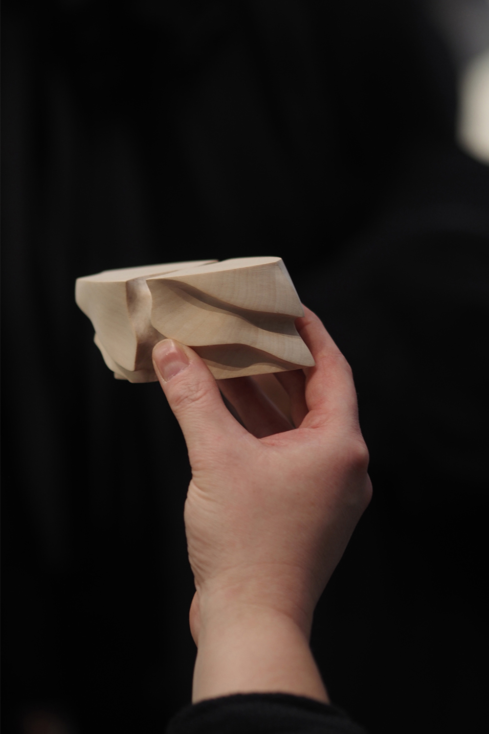 "You can touch it with your hands, feel the texture and temperature of the wood." Mette brought out a 1:10 scale custom sculpture model, encouraging us to read the wood's grain with our fingertips. The touch was warm and delicately textured, as if we were not merely caressing an object, but connecting with a profound philosophy of deliberate creation