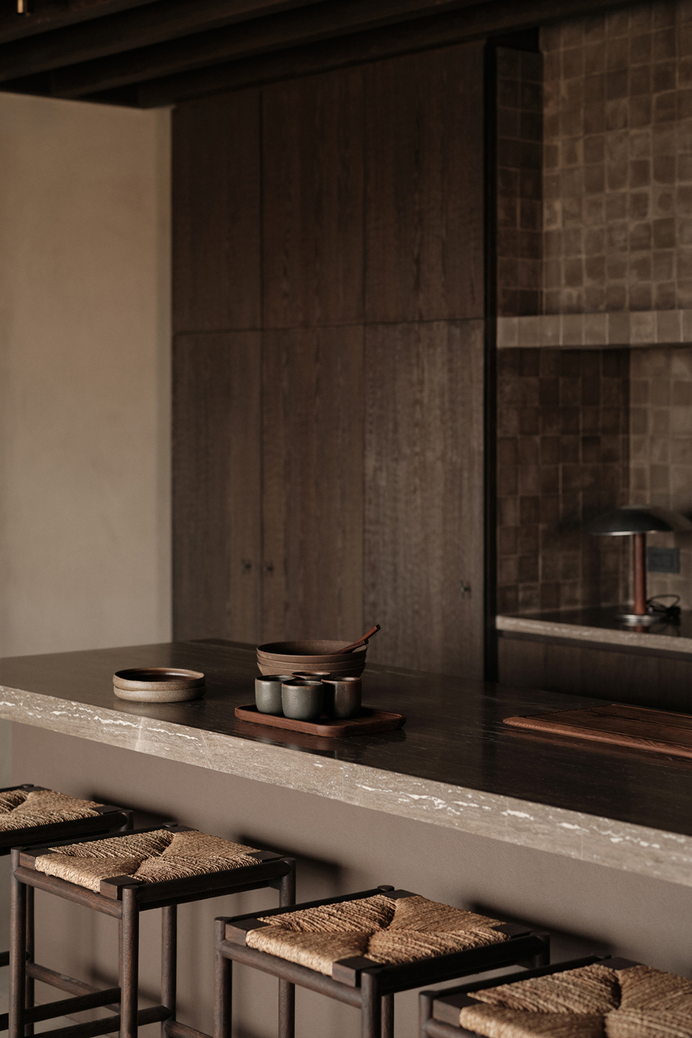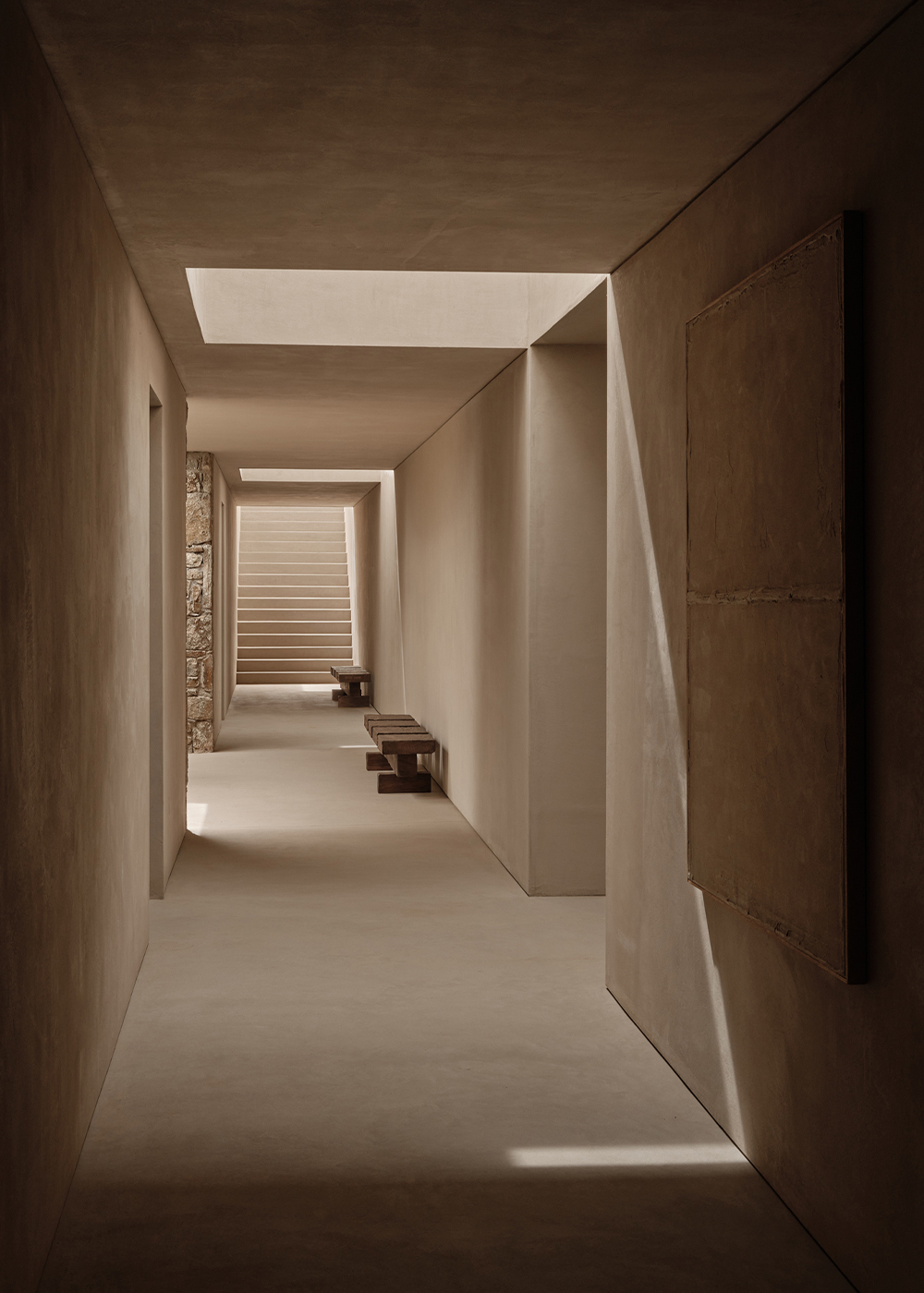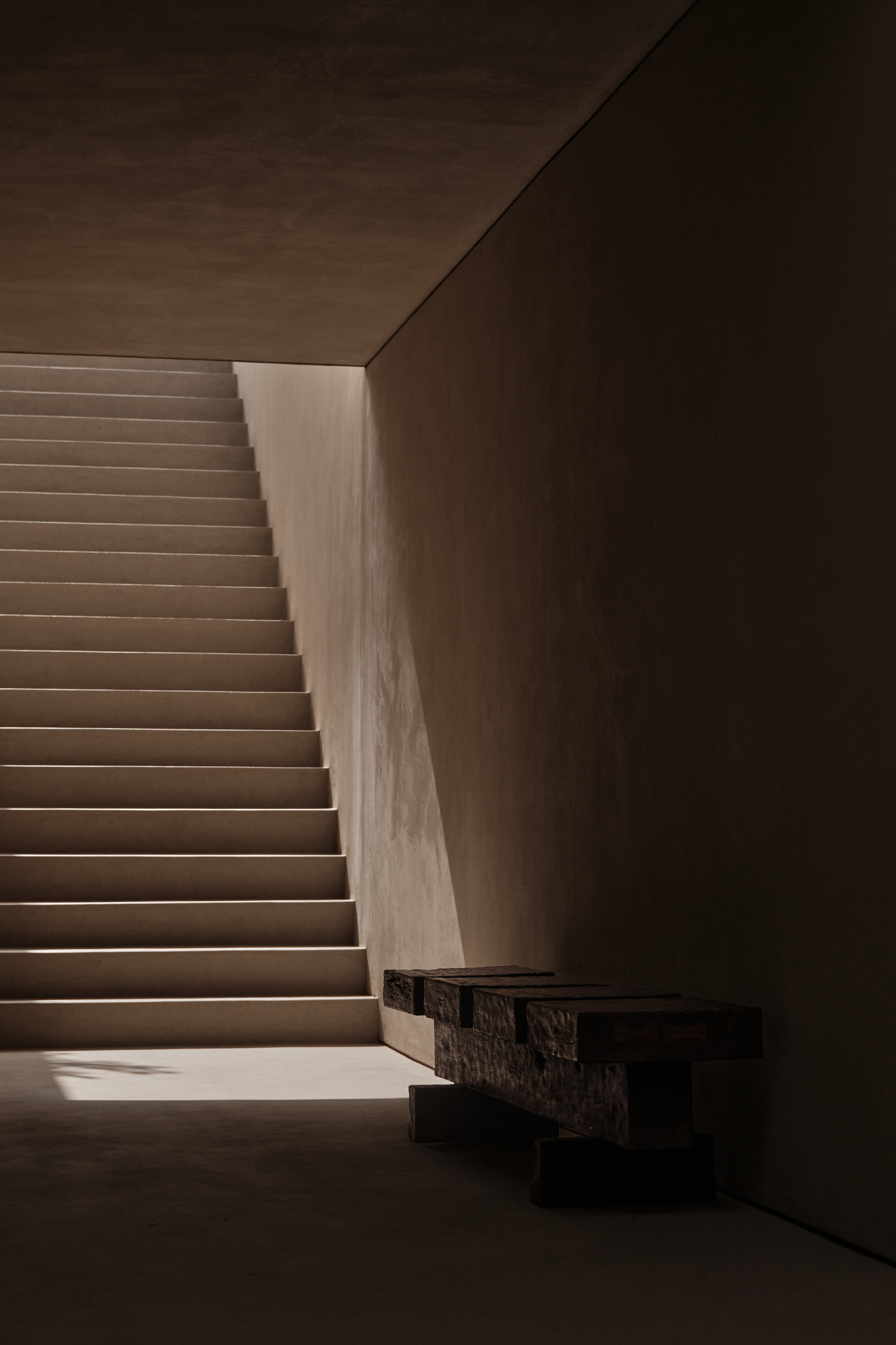 Deeper along the corridor, light and shadow are sculpted with almost poetic balance by the architecture itself. The stepping of walls, the rhythm of openings—each conspires with the light. The luxury here lies in this restrained harmony. “Everything is simple,” Michael shared, “yet the details are everything.”