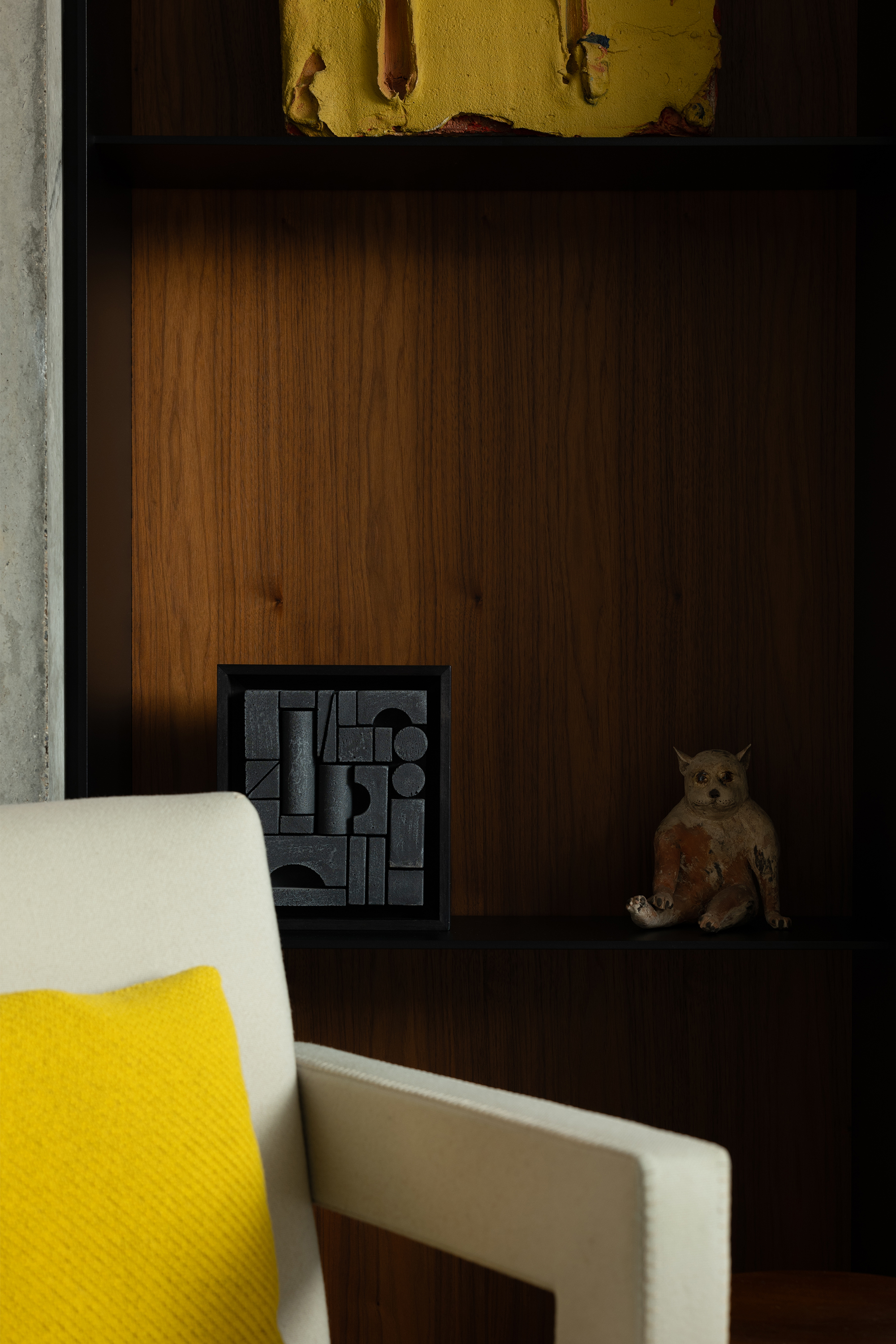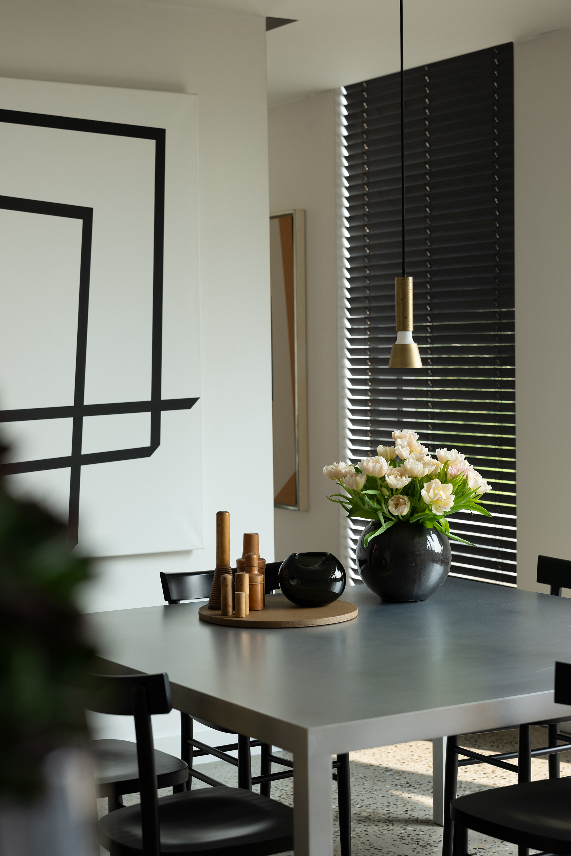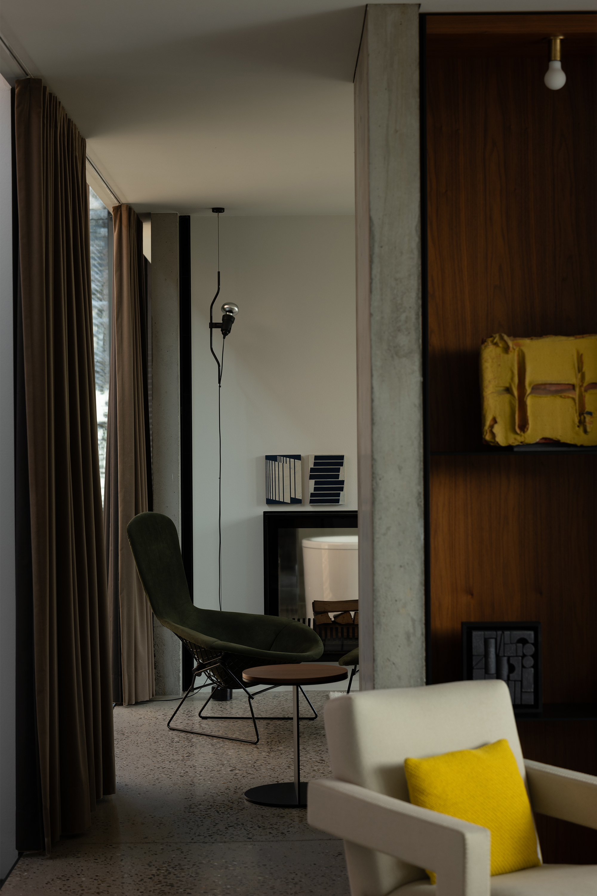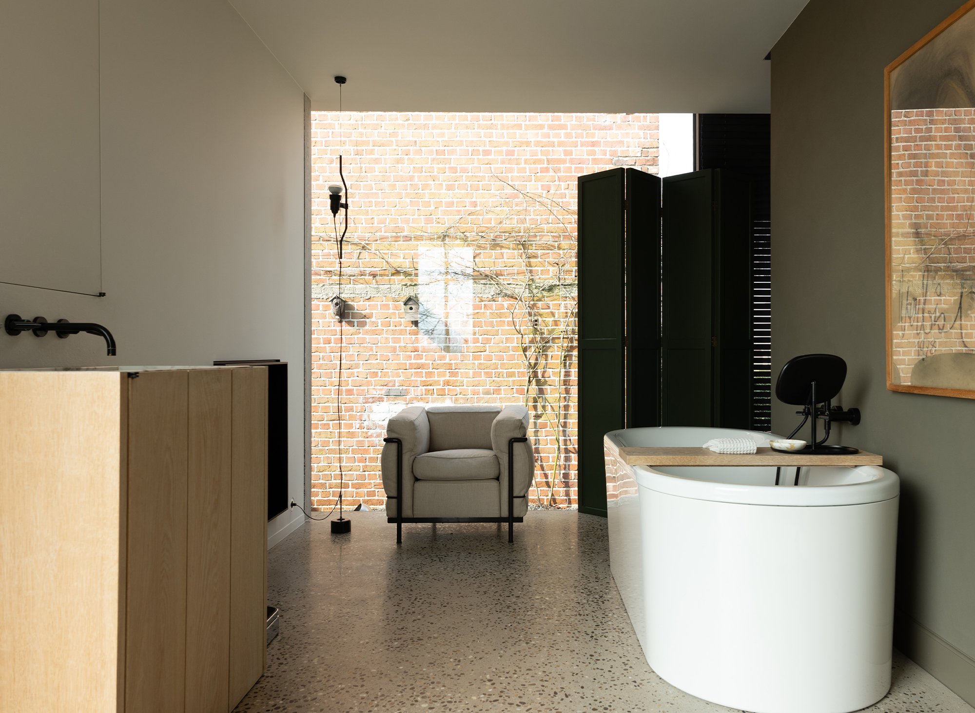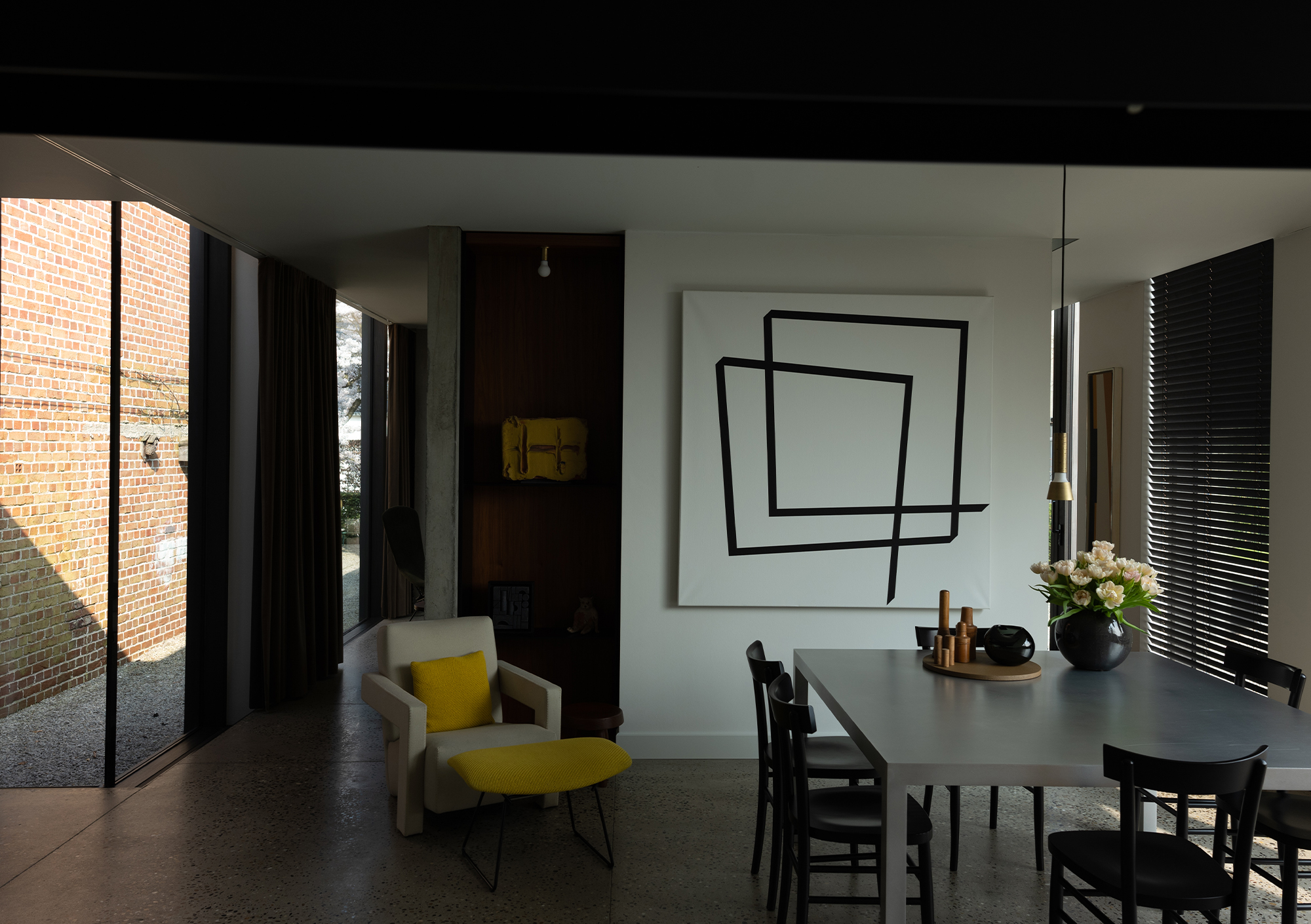 Even the layout bends expectations. The bathroom, for instance, sits just off the living area, visible from the street if curtains are open. Frederic laughed, saying his Italian mother still finds that a bit strange. But for him, it’s all part of rethinking how we live and work in the same space. His office, set just off the main area, is designed for deep focus. “When I need to concentrate, I work behind the wall,” he said.
