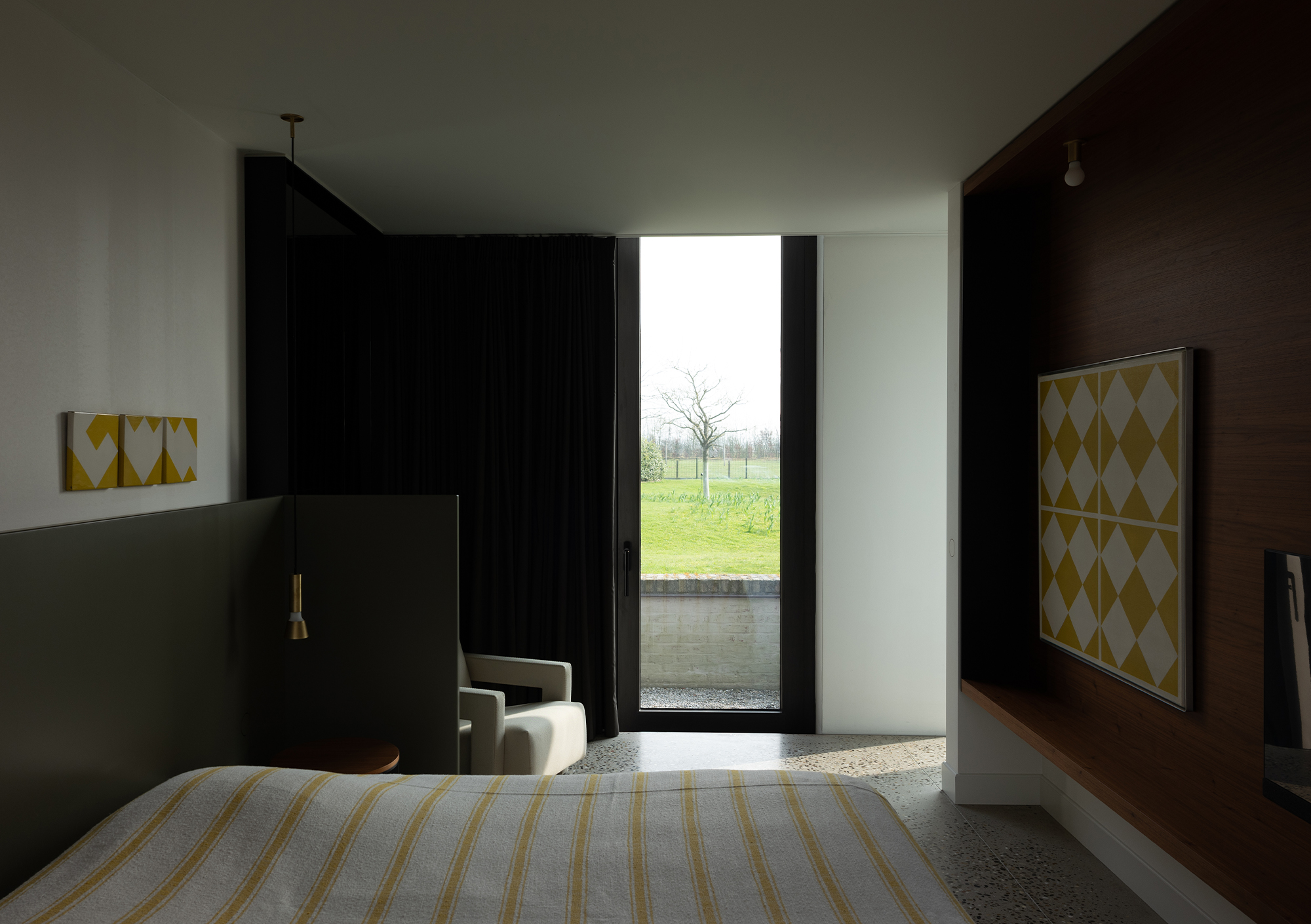 This was not a house designed to perform domesticity. Rather, it suspends it, reframes it. There are almost no doors — just three, in fact, for the toilet, the dressing room, and the laundry room. Instead, long curtains soften and divide space with theatrical elegance. A gesture of openness, yes, but also of quiet concealment. This is a house that understands ambiguity as an architectural tool.