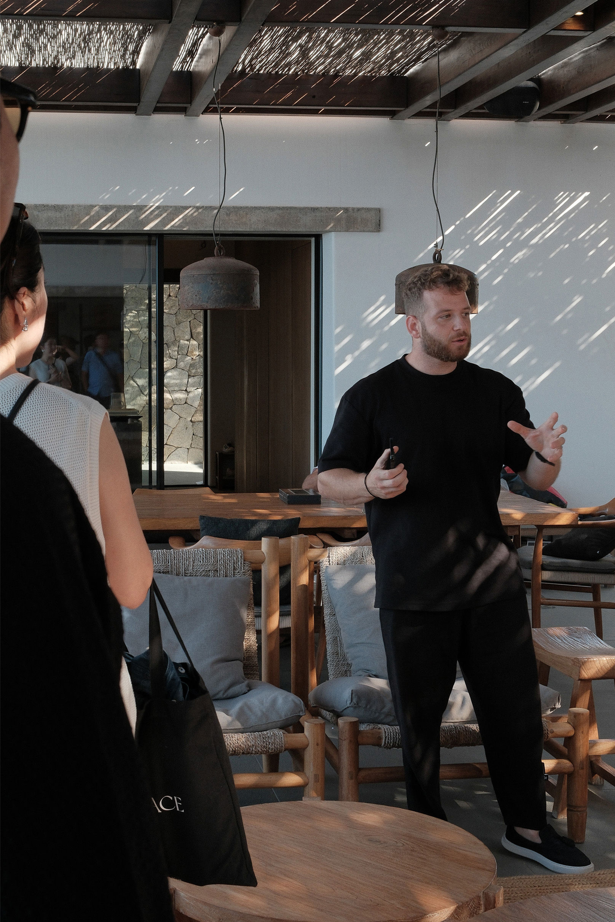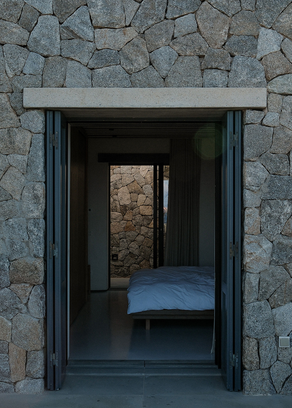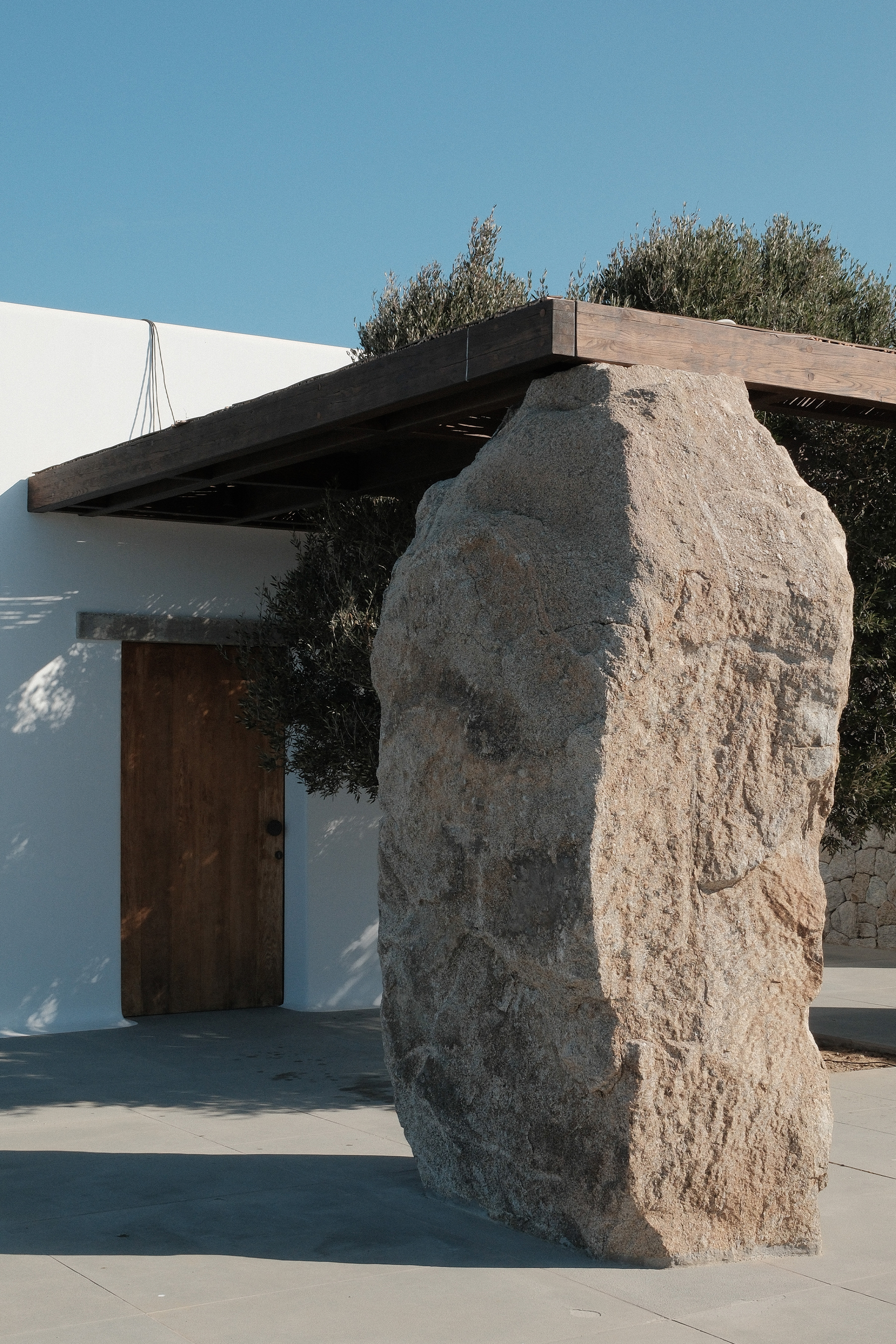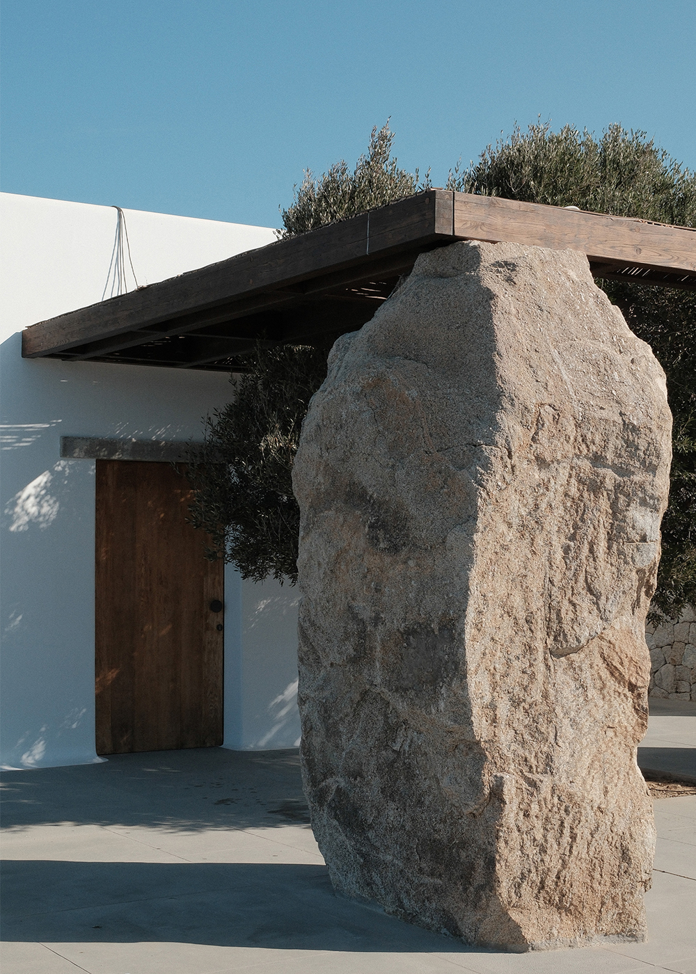 We visited this villa on a quiet early morning. The rough volcanic rocks spread out a geological epic at the entrance, and each mottled pattern tells the thousand-year-old memory of the island. The Karampatakis brothers and their numerous team of K-STUDIO, with the acumen of modern architects, respect and continue these ancient material grammars. They have transformed the stone walls from mere boundaries into a medium connecting the earth and the sky. Those seemingly random builds are actually precisely calculated frames for viewing. When sunlight penetrates the stone crevices at a specific Angle, the entire entrance hall turns into an installation art piece interwoven with light and shadow.