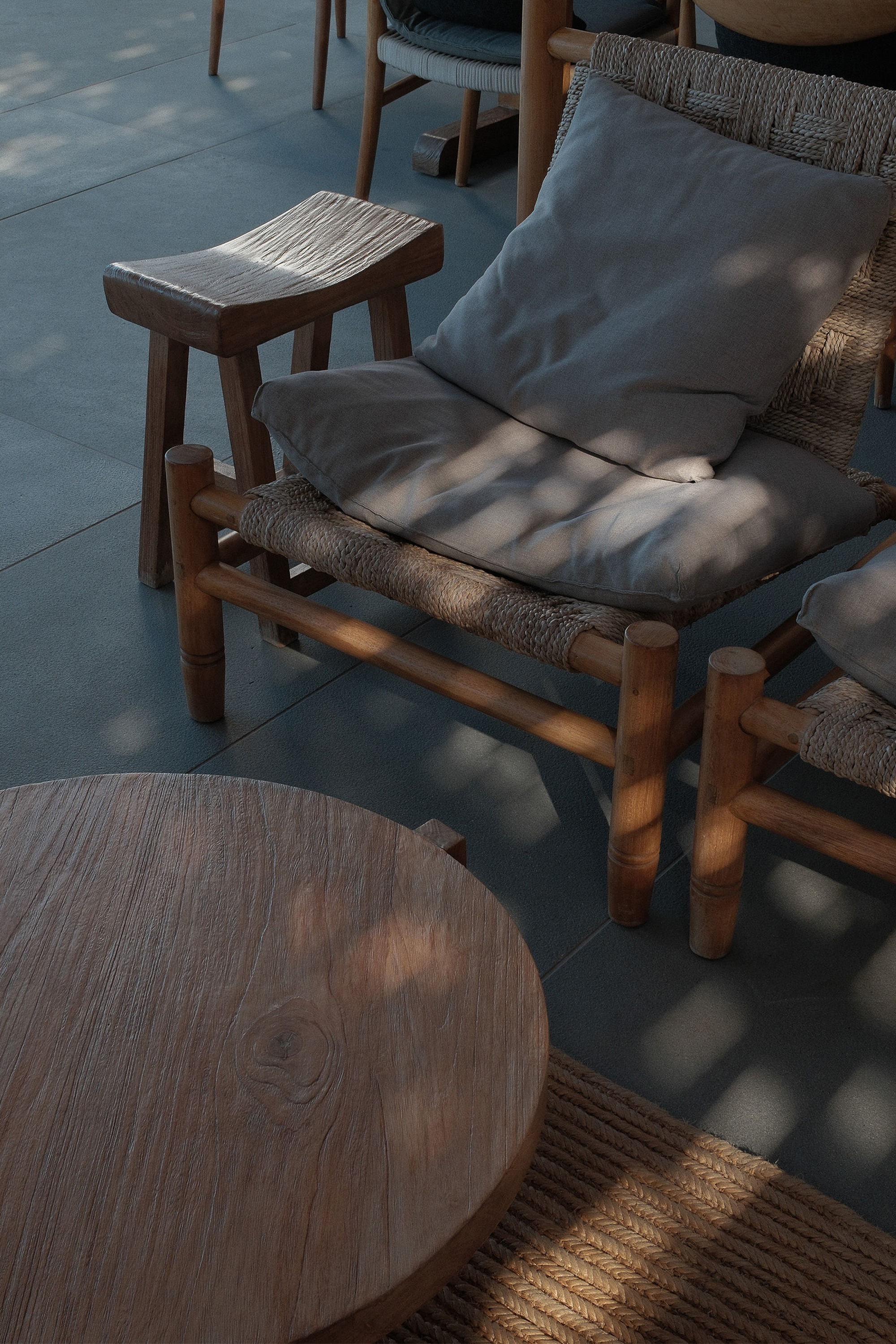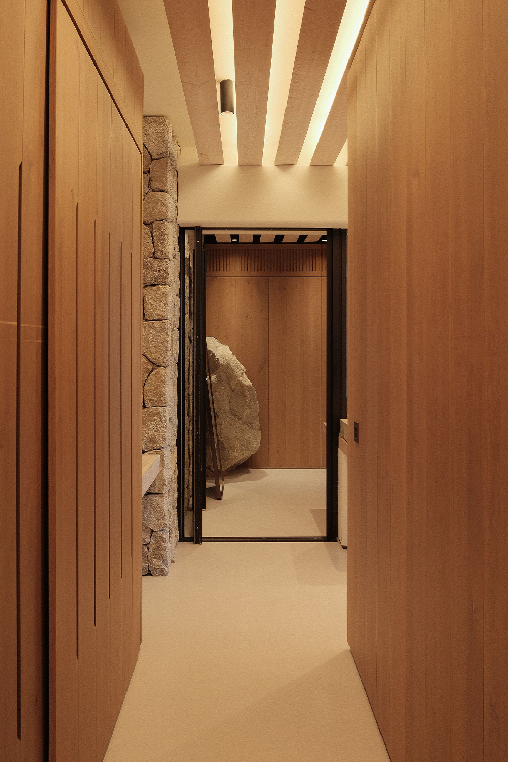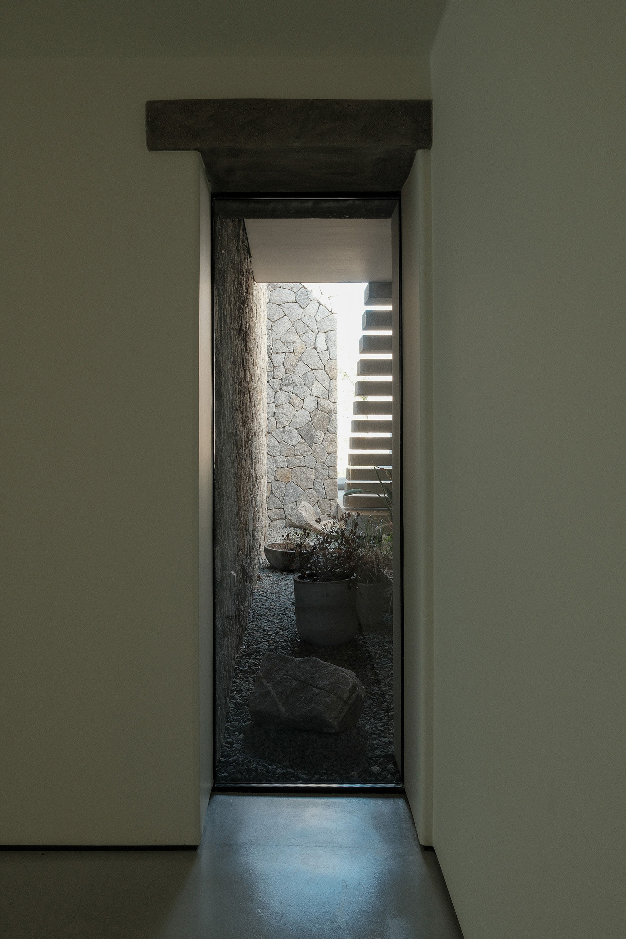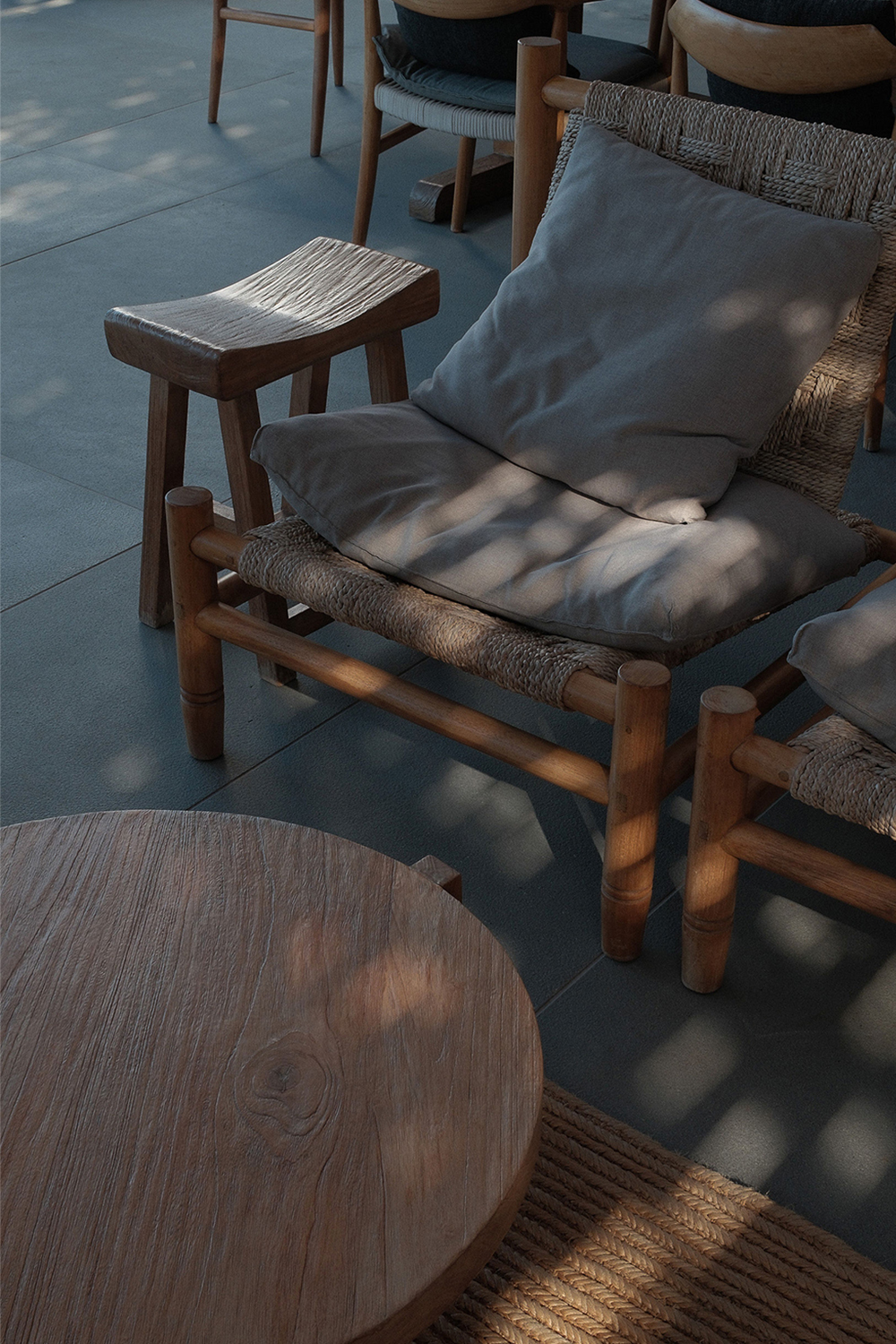 The choice of materials is simple and natural, yet with a rough and delicate touch - the warm touch of Cretan olive wood forms a tactile texture contrast with the rough texture of volcanic rock. The hand-plastered walls capture the changes of light at different times of the day, sometimes presenting the luster of mother-of-pearl and sometimes transforming into the texture of parchment. K-STUDIO's obsession with the "sense of incompleteness" reaches its peak here - those preserved stone joints and woodwork that retain tool marks all speak of the dignity of "handcrafting".