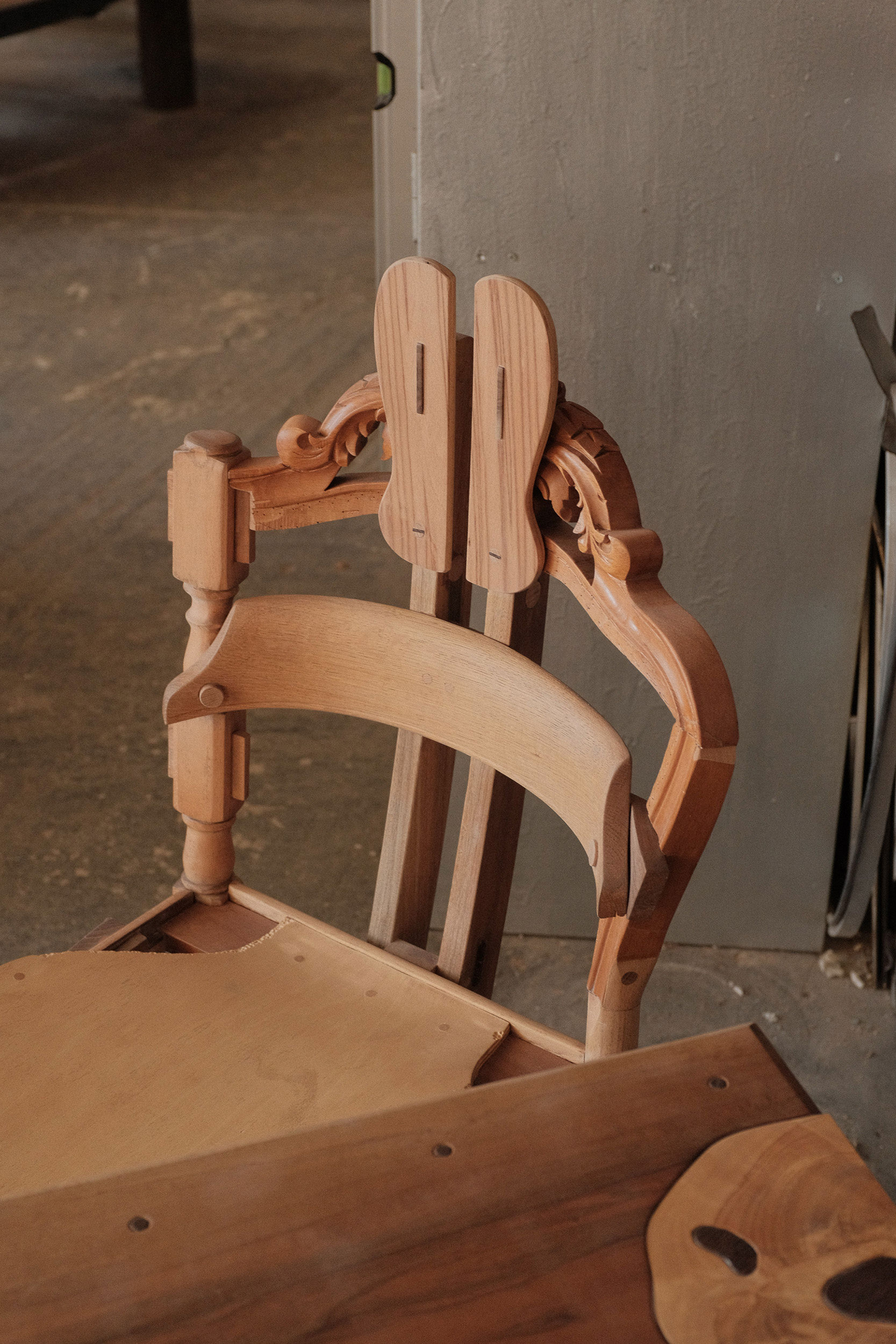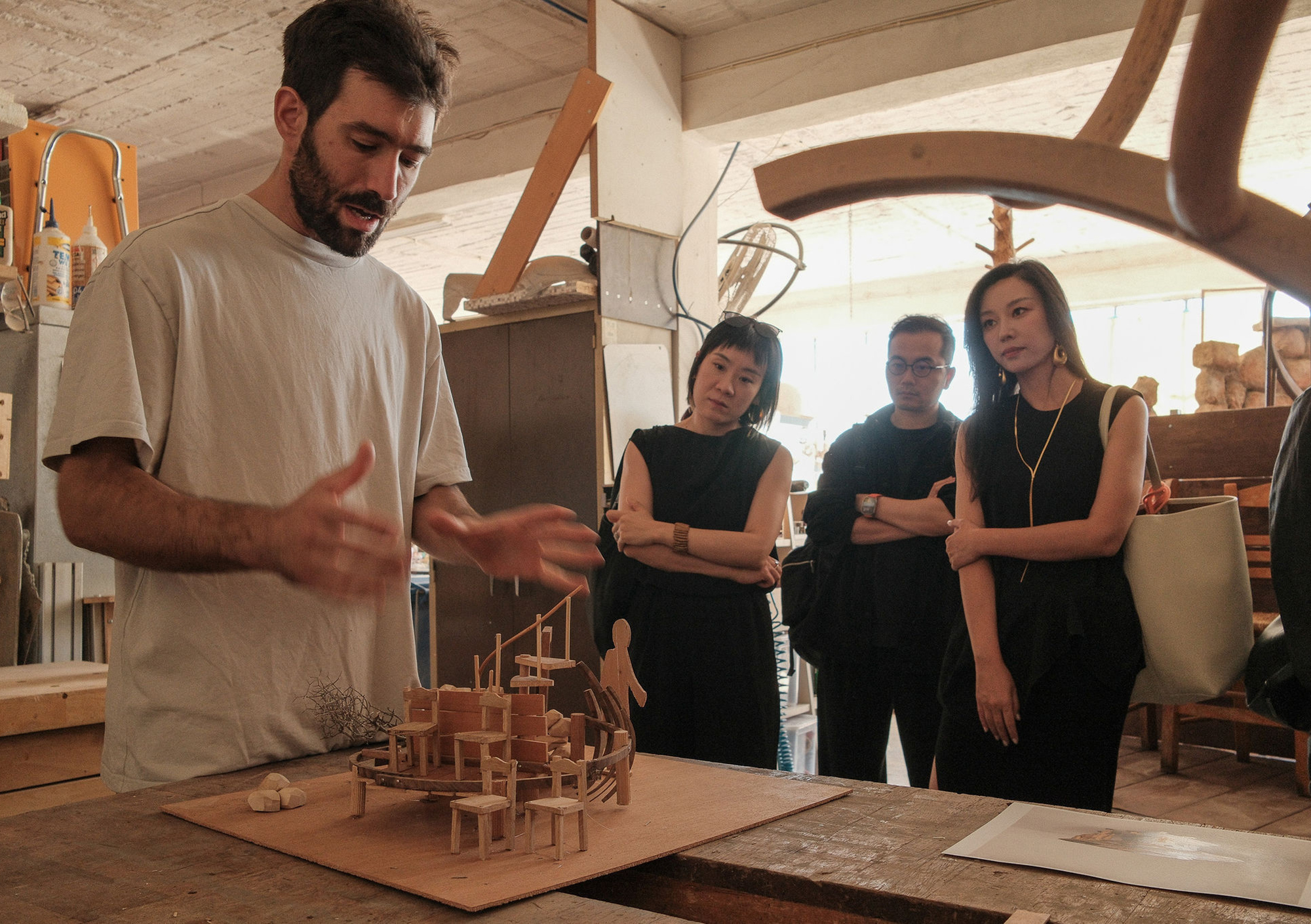 “Start with the most intricate craftsmanship, then simplify gradually.” He leans against a solid wood table, fingertips tracing the inlaid grains of American walnut and Portuguese cypress, as though listening to a conversation between the woods.