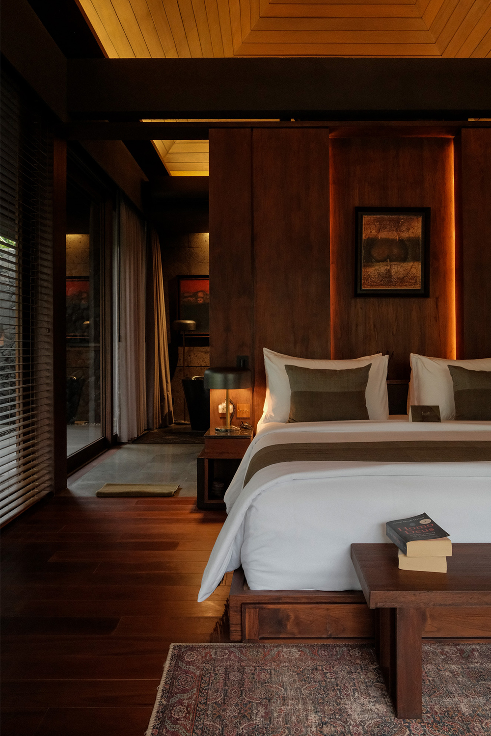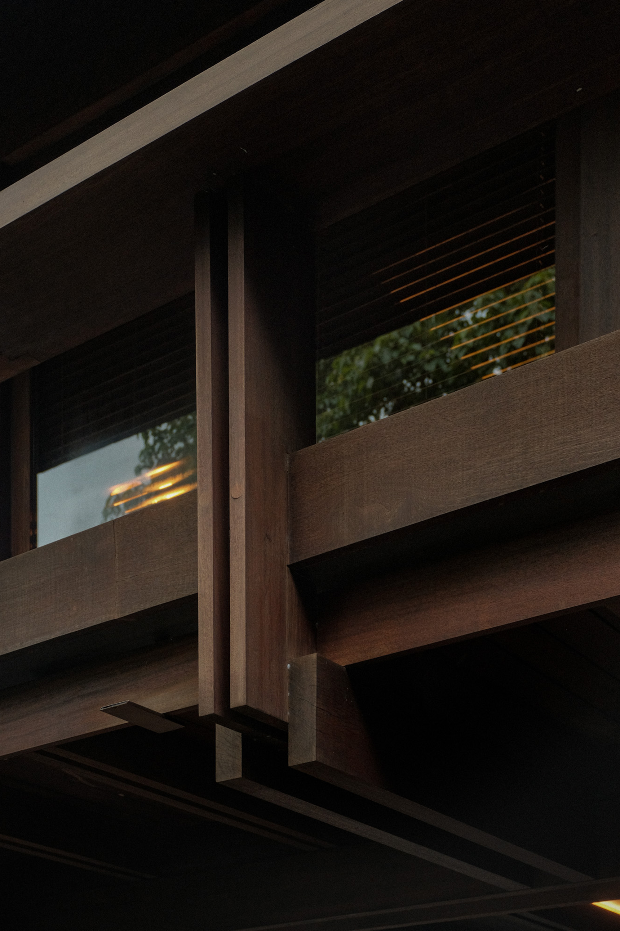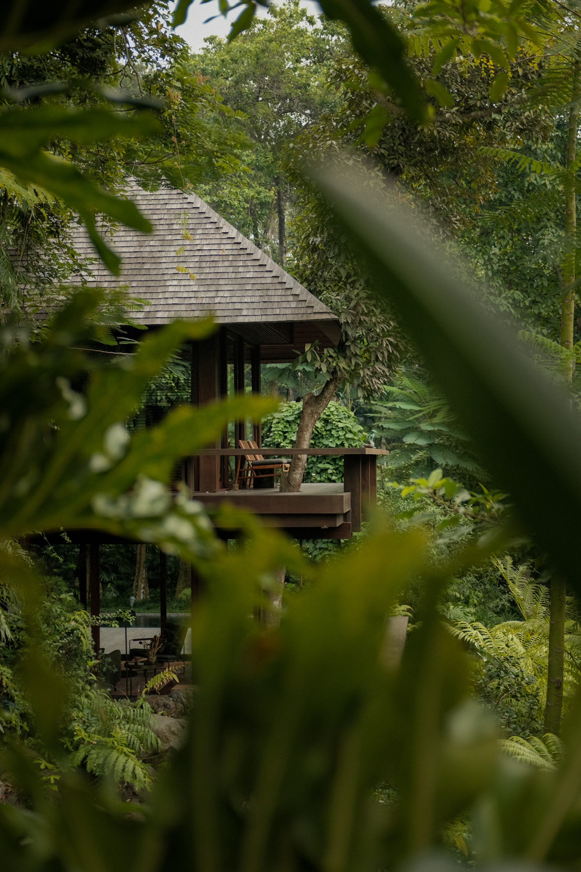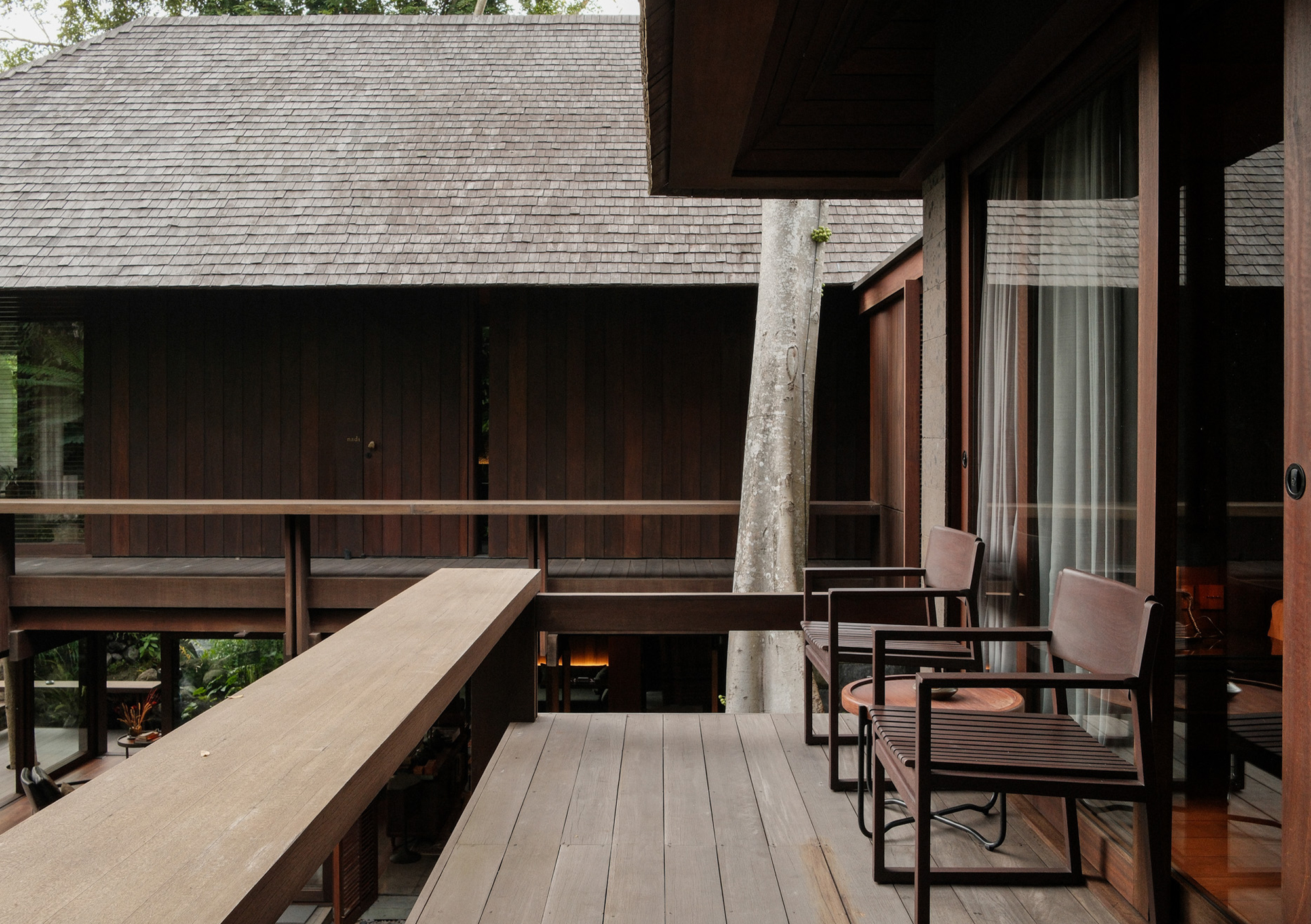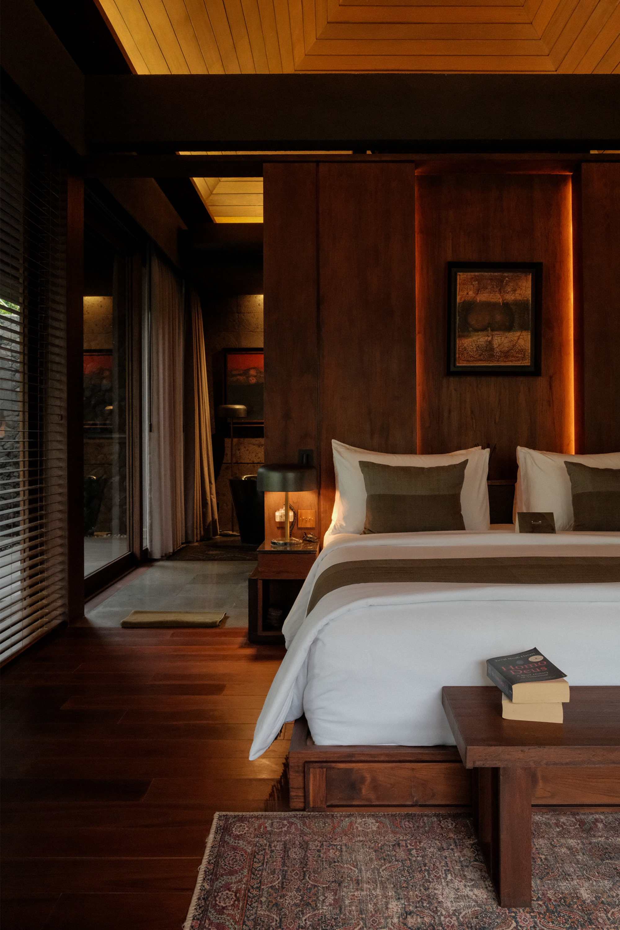 Designed by Nataneka Architect in 2022 (opening December 2024), the site is bisected by a natural creek. On the high ground, the owner’s residence overlooks vistas; across the water, four villas and communal areas nestle on gentle slopes. A wooden bridge connects both worlds, while a horizontally grown tree at eye level screens the private quarters. "We added this tree deliberately," the owner states by the window. "Guests crossing the bridge now only glimpse riverlight through leaves. Amid Canggu’s architectural clamor, true challenge lies in becoming one with the environment."