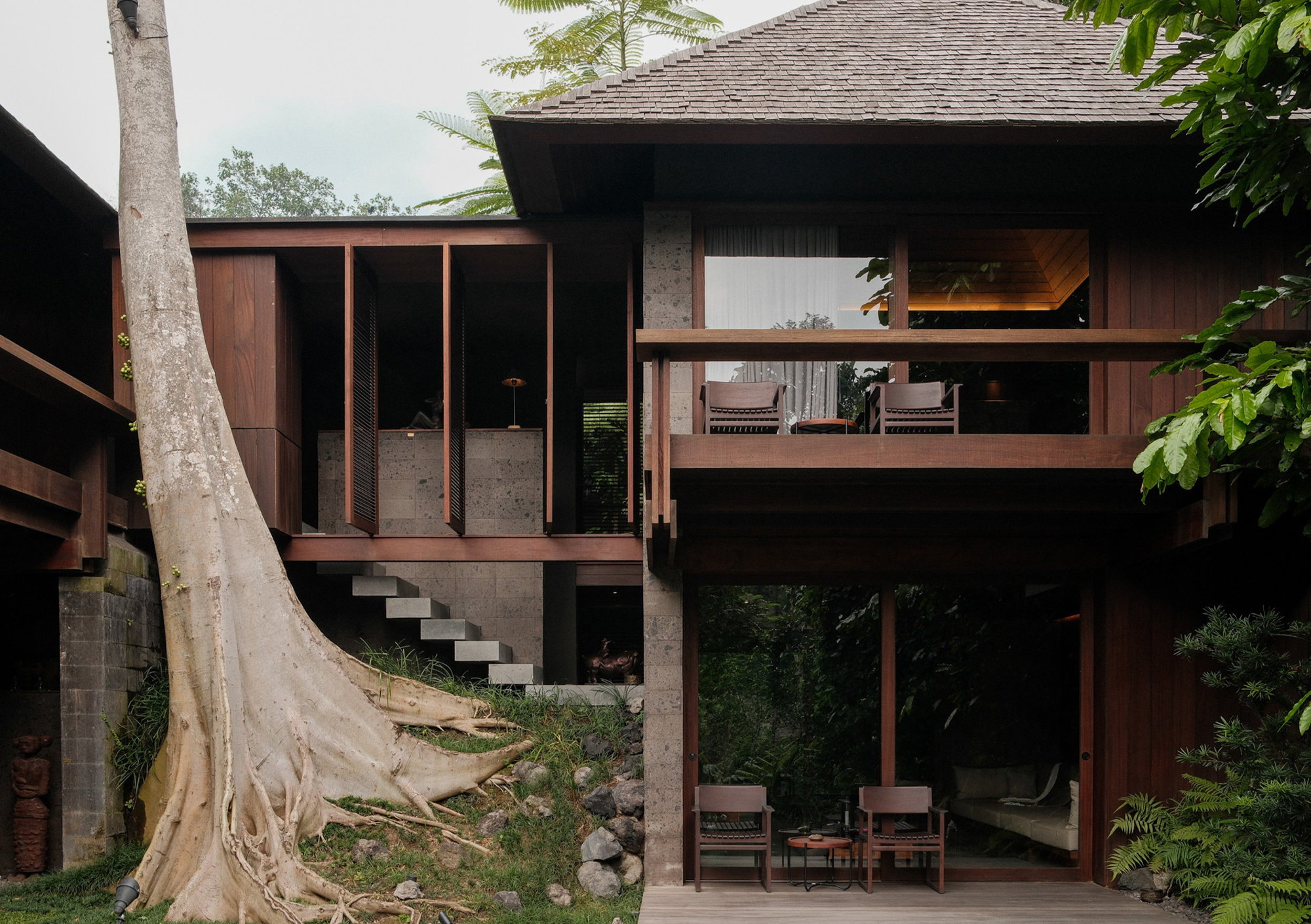 Just 20 minutes from Bali’s bustling Canggu, Janjisurga emerges as an oasis amid jungle streams. Following the murmur of water through green-canopied paths, the towering Kiputih tree commands the courtyard—its roots surging across the primal slope, trunk piercing through the second-floor terrace, crown spreading like a celestial canopy. Architecture humbly embraces this natural monument. "This tree is the soul of the structure," the architect looks up at the branches, "We revised plans repeatedly to honor its integrity."