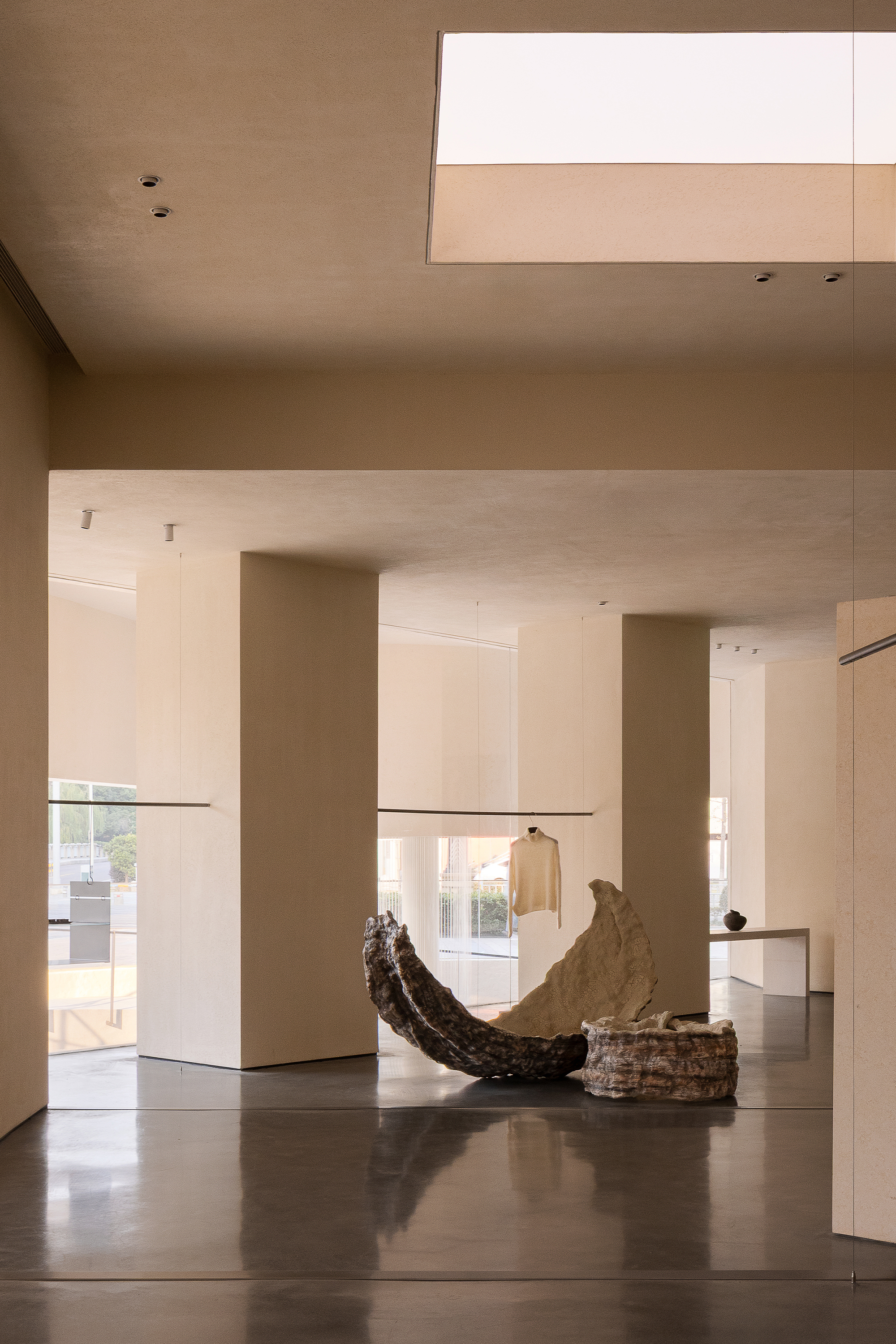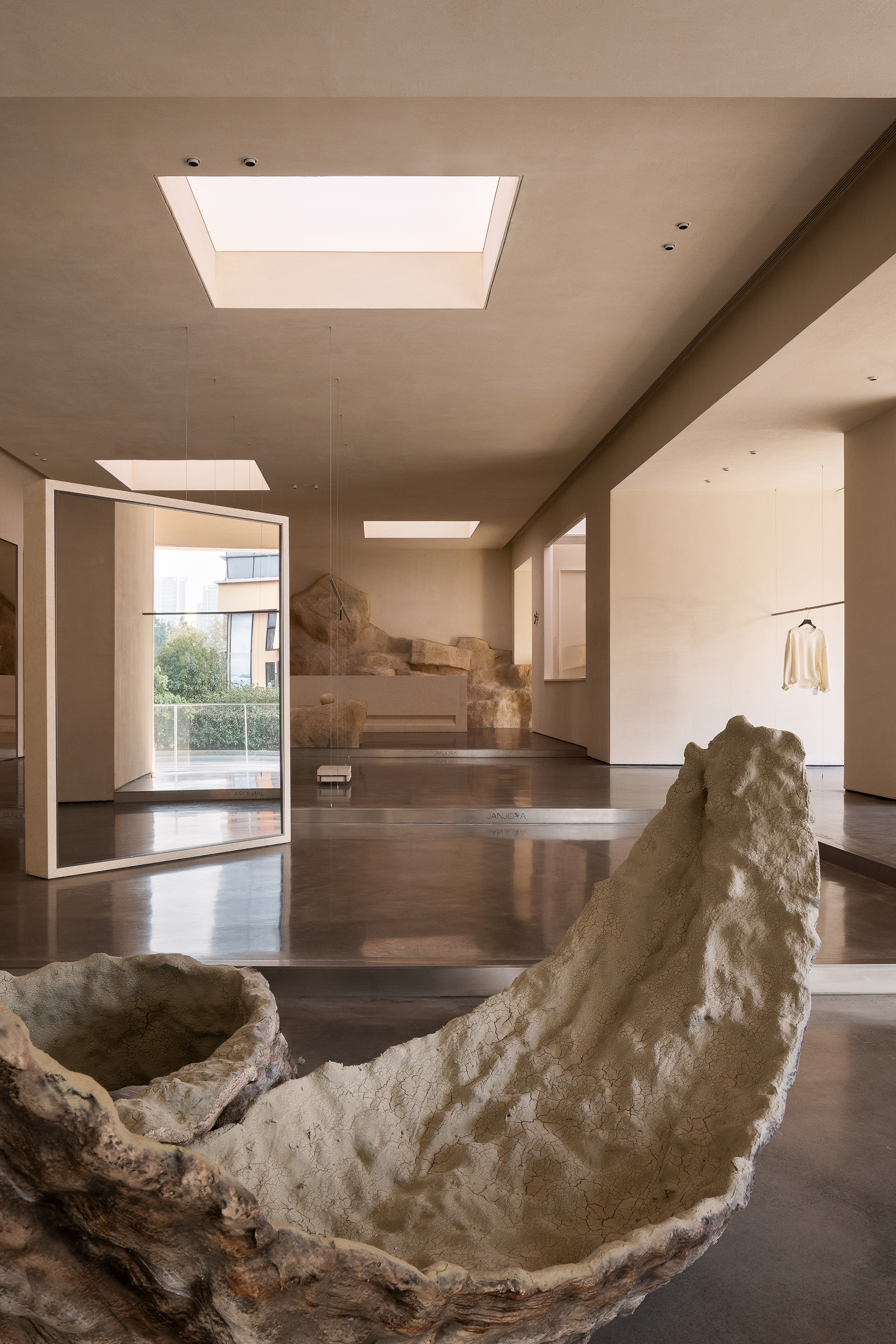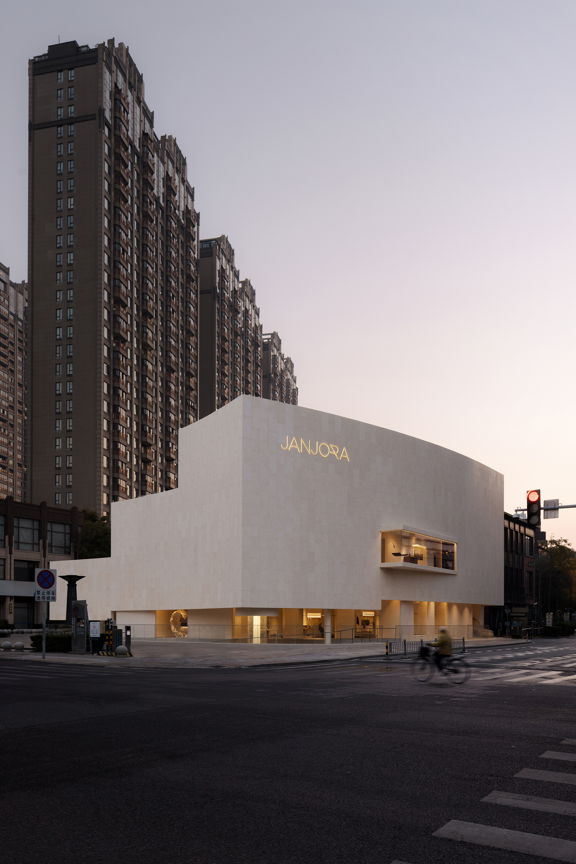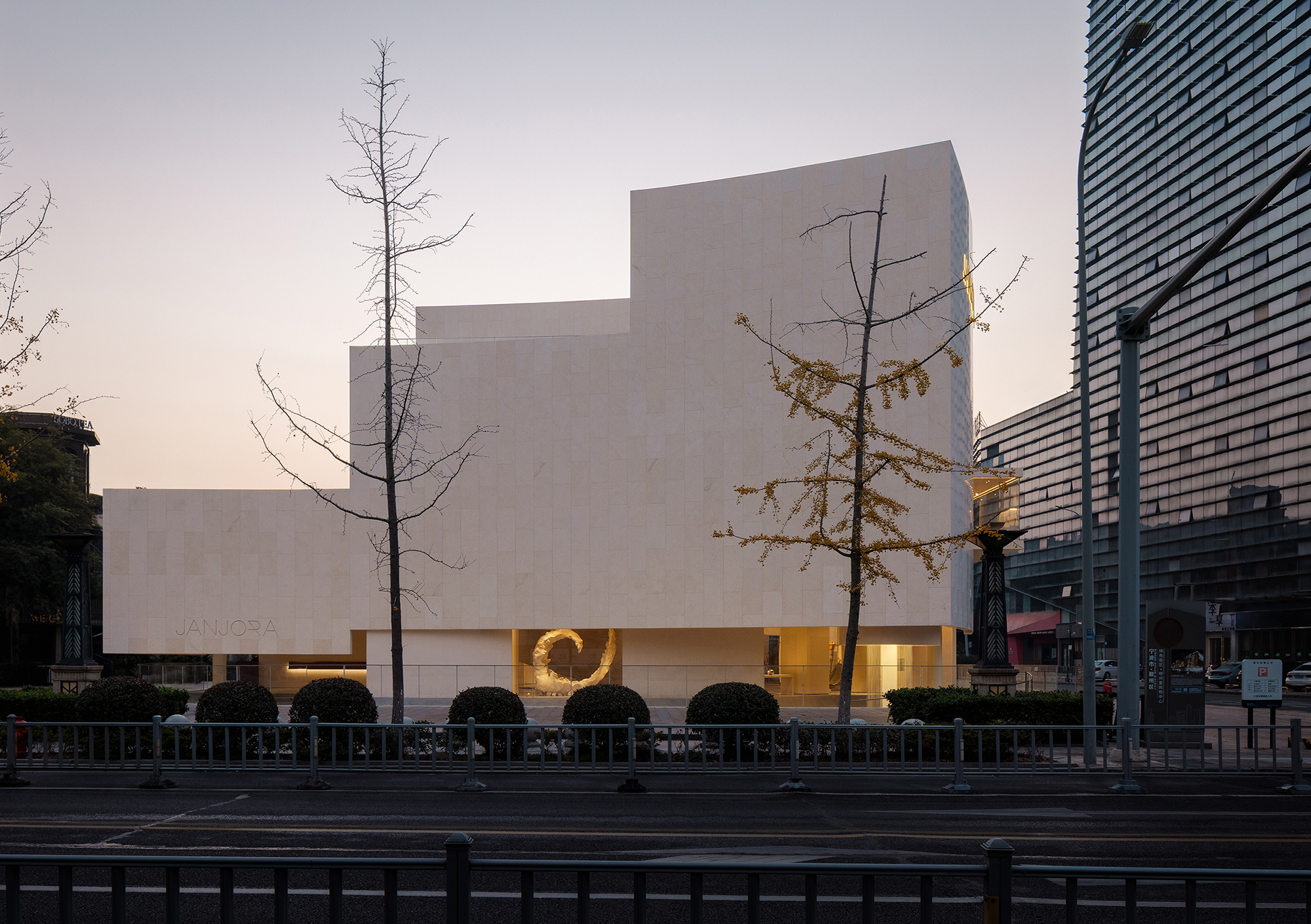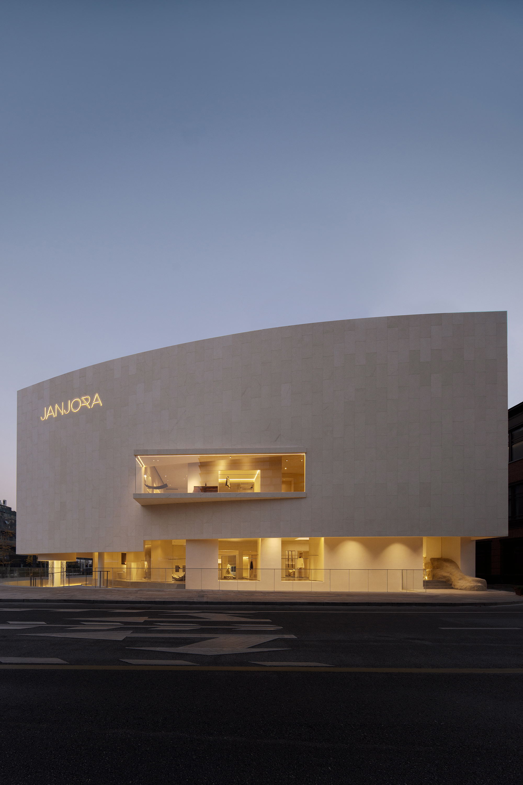 The entire building deeply embeds the core philosophical essence of JANJORA's brand concept "Complexity and Simplicity". Taking "sail" as the design prologue and "stone" to echo the marine imagery, it awakens contemporary women's profound resonance with minimalist architectural aesthetics. The design delves deeply into the brand genes and the cultural heritage of Ningbo, adopting a material language that returns to nature, thus enabling the building to form a deep integration and spiritual consensus with the natural texture of Ningbo, a coastal city.