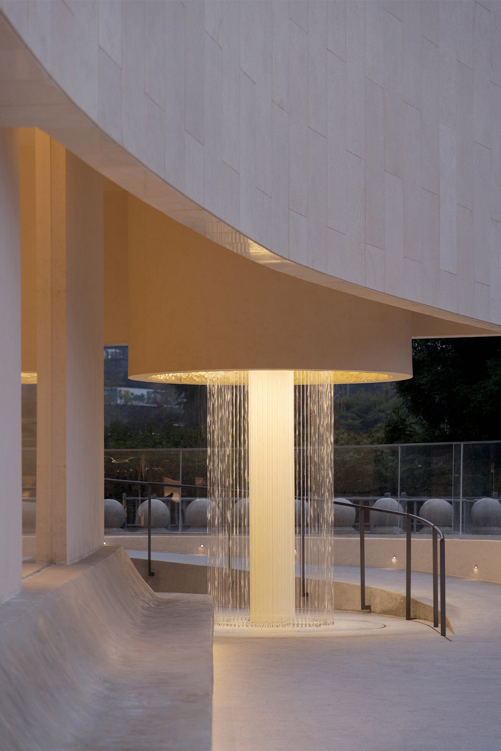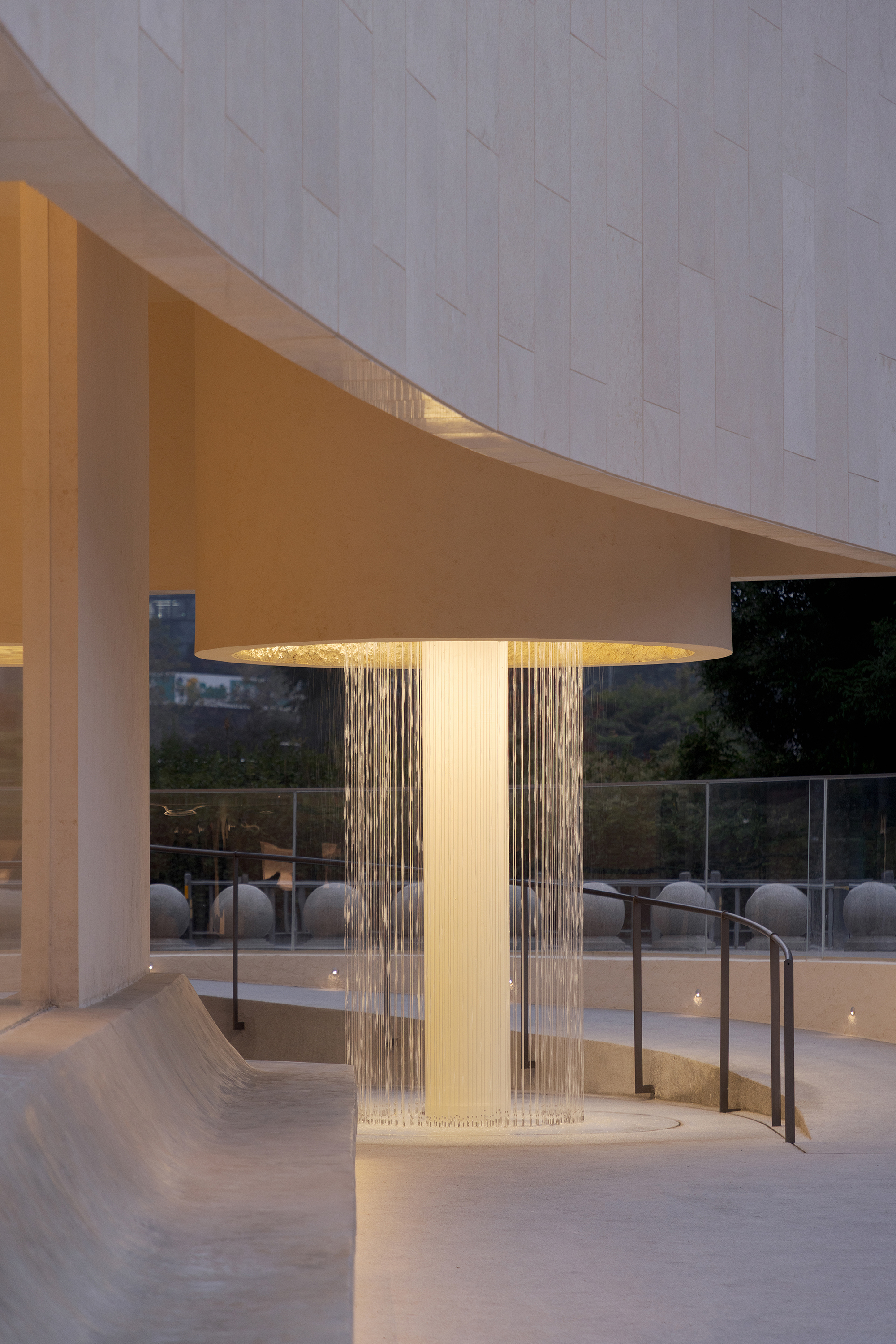 For the building's facade, Lime stone is selected as the core material. Extracting the curved dynamic rhythm of "sails", the inherent cold and rigid texture of the stone is softened through gentle curved surface treatment, endowing the building with a warm and approachable temperament, and realizing the two-way echo and in-depth integration between the architectural form and the clothing texture. The natural blank design of large-area stone abandons redundant decorations, ultimately presenting the authentic aesthetic texture of nature, accurately interpreting the internal philosophy of architectural "long-termism", and allowing the building to always retain a pure and enduring vitality in the precipitation of time.