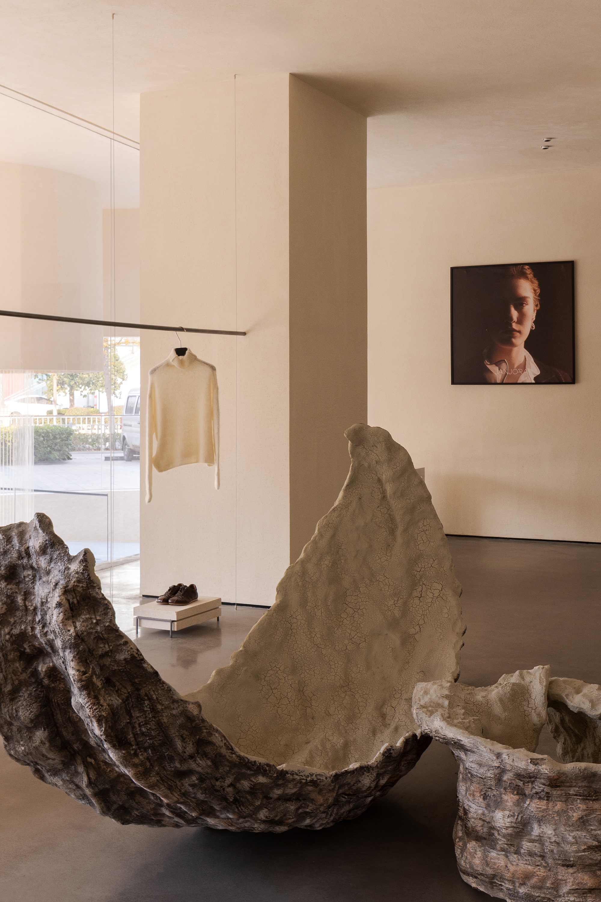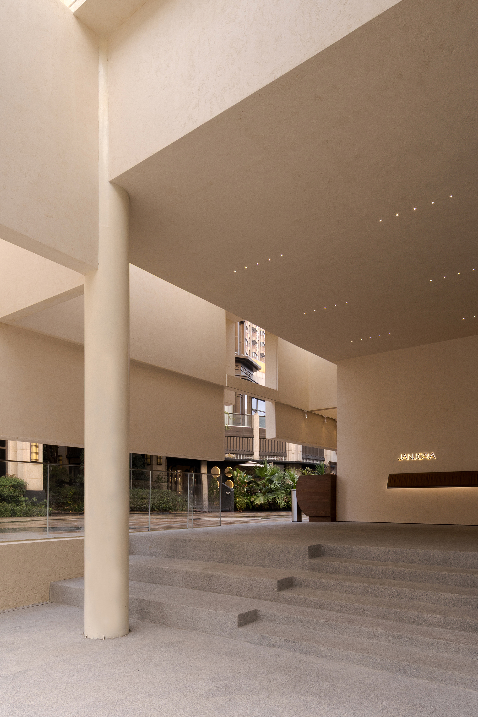 JANJORA Aesthetic Space takes "sail" as the prologue and "stone" to echo the sea. In Ningbo, a coastal city, it unfolds a picture scroll where nature and aesthetics blend harmoniously. The sea breeze gently brushes across the street corners, drifting slowly with the unique warm and moist breath of the ocean; the dynamic image of unfurled ship sails turns into the prelude of the design, quietly initiating a journey of exploration into minimalist aesthetics. The elegant beige tone spreads over the window frames like the morning glow, blurring the hazy light of the harbor's dawn. The neat lines of the building seamlessly integrate with the concise rhythm of minimalist aesthetics, and every contour exudes a restrained yet sophisticated texture, allowing the space to become a peaceful haven amidst the noisy city.