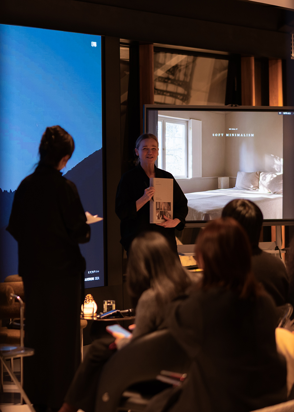 During the evening, Katrine spoke through the lens of Norm Architects’ fifteen years of practice, introducing the studio’s design approach—Soft Minimalism. She described it as a way of reawakening the senses: in an age shaped by noise and excess information, it seeks to restore a quieter, slower rhythm of space.For her, architecture is never only a visual composition. It must remain connected to bodily experience and emotional states. Design, in this sense, responds to deeper layers of perception—touch, scent, sound—allowing space to become something that can truly be felt, inhabited, and stayed with.