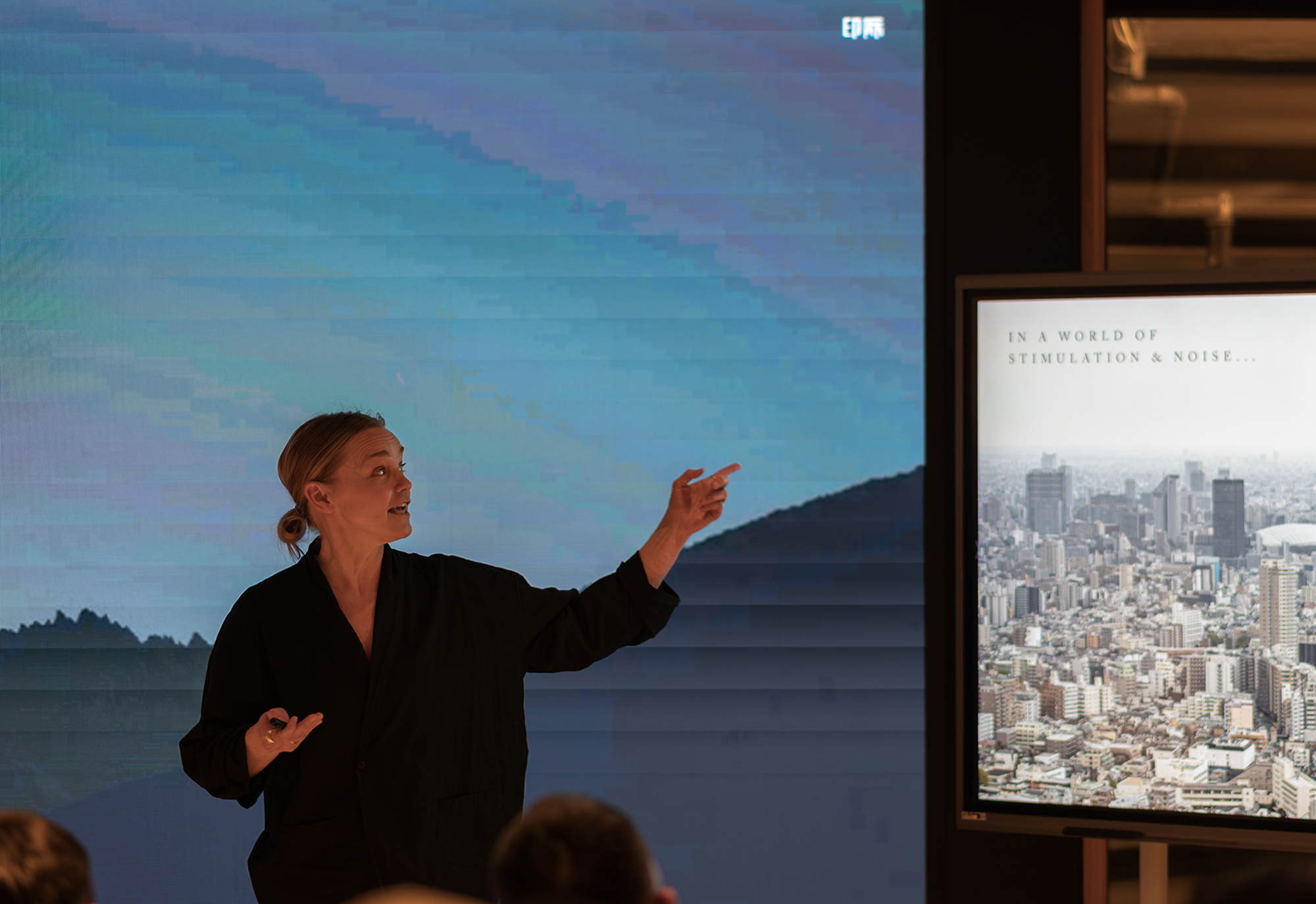 Katrine further shared that the core of Norm Architects’ work lies in bringing the built environment back into the realm of the senses—what she described as a process of “resensualizing.” She emphasized that this is not a concept invented in isolation, but one grounded in the intellectual traditions of the past century, shaped by philosophy, anthropology, psychology, and architectural thought. As architects, what they do is simply to stand on the shoulders of these masters, gradually developing a method of their own.She framed Norm Architects’ design language through eight key words: nature, perception, scale, light and shadow, materiality, narrative, place, and time.