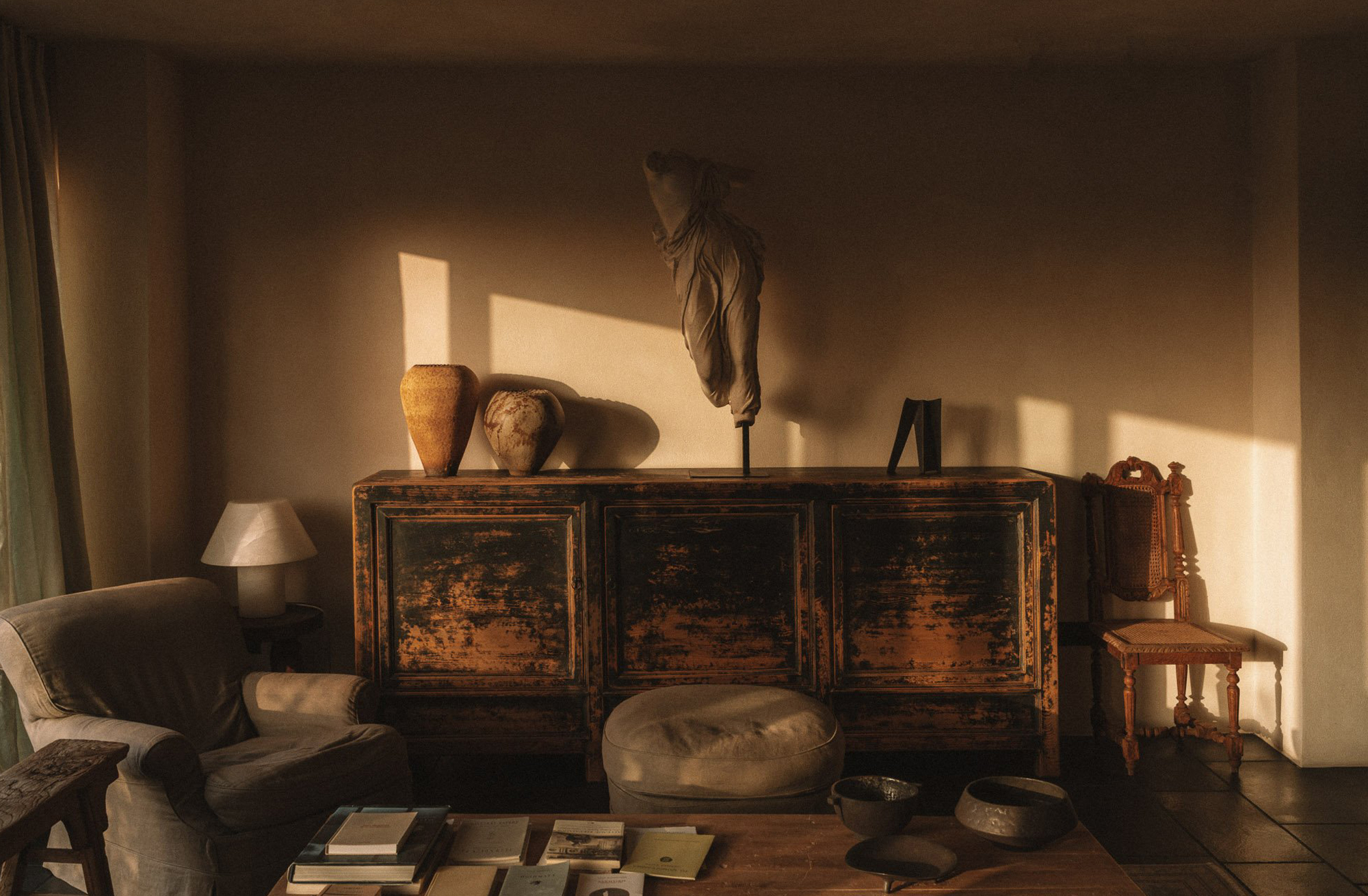10AM, a multifaceted spatial experiment created by Eva in the renovation of a former printing factory over eight years, is a transformation. Adhering to the philosophy of "letting the building breathe," she stripped away the camouflage to reveal the original concrete columns, rusted steel frames, and century-old wooden beams, transforming the industrial scars into striking decorative elements. The space is deconstructed into four narratives: the penthouse serves as Eva's private haven for her collection of Cretan memories; four lofts, encasing the warmth of pottery and linens within Brutalist frames; the basement concept store, 10AM Apotheke, showcases scented objects forged in the Greek earth; and the atrium becomes a mobile stage connecting the creative community.