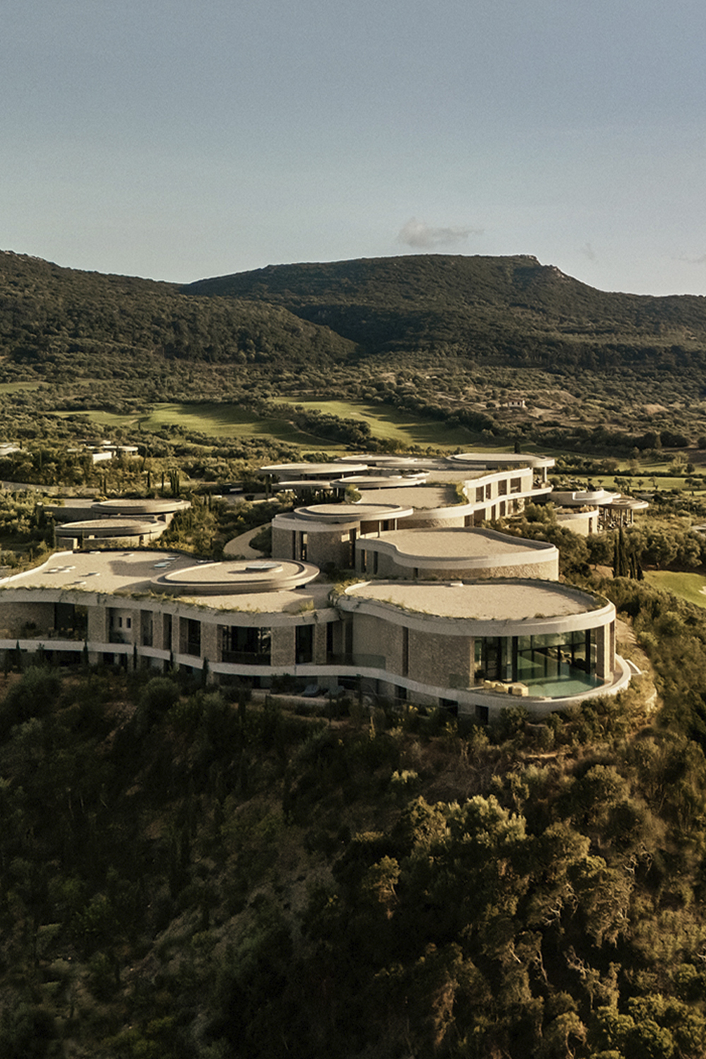 As Marriott’s pioneering W Hotels makes its debut in Greece, W Costa Navarino stands proudly on the historic Navarino Bay. Designed by the renowned Greek firm Tombazis and Associates, the project draws inspiration from traditional Greek seaside villages, featuring cobblestone paths, monolithic stone volumes, and locally sourced materials, all seamlessly blended with native vegetation and rooftop gardens to emphasize a deep commitment to sustainability. The interiors, conceived by London-based MKV Design, employ neutral tones accented with vibrant hues, where lighting, flooring, and furniture offer a contemporary expression that celebrates Greece’s rich heritage of weaving and leather craftsmanship.