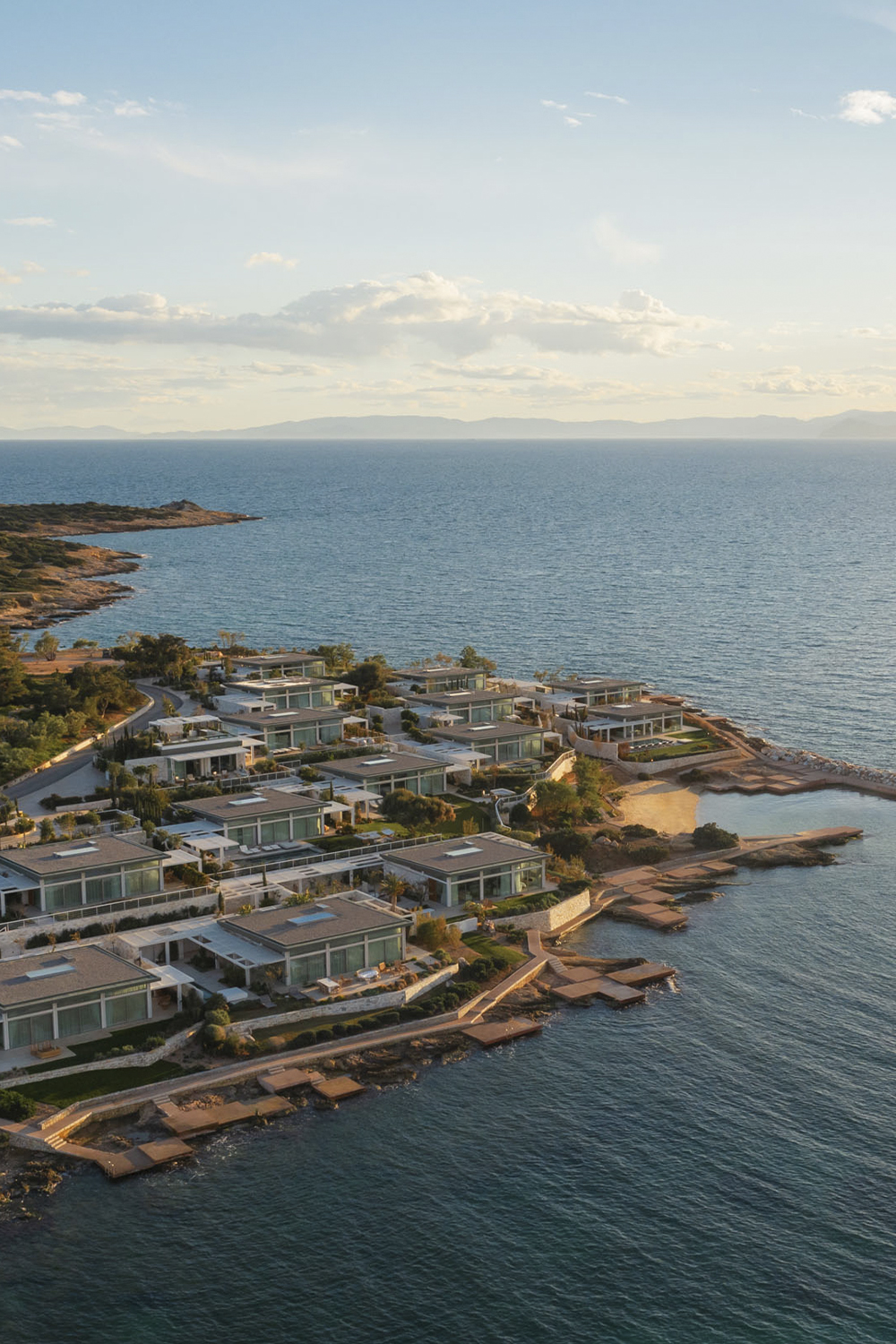 One&Only Aesthesis has been gloriously reborn on the Athenian Riviera, nestled within a 21-hectare beachfront reserve, home to the legendary Asteria Beach Club, a gathering place for celebrities in the 1950s. Paying tribute to history, three architectural firms (AUDO, A6 Architects, and K-Studio) meticulously recreated the original site: a central, curved main building rises precisely on the plinth of the former open-air restaurant, while the 127 villas follow the original footprints of the legendary lodges. K-Studio's ingenious "stitching philosophy" is particularly striking: traditional Greek lattice screens are transformed into the building's skin, gently filtering the dazzling "diamond light" of the Attica peninsula. A double skylight dome and panoramic floor-to-ceiling windows create a "container of light," framing the Aegean Sea and the main pool as a dynamic mural.