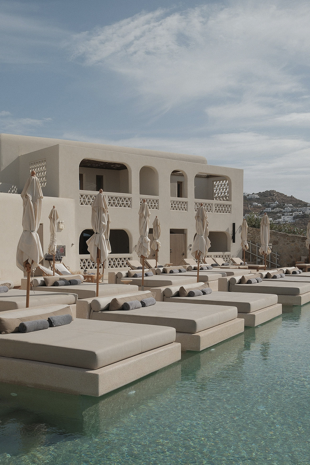 Domes Noruz Mykonos is a boutique resort located on the island of Mykonos, renowned for its fusion of modern design with traditional Aegean elements. The architecture integrates arched porticos and natural stone into its minimalist white facades, echoing the island’s unique character. Interiors feature warm tones, organic materials, and fluid lines, creating an airy, layered sense of space. With a focus on privacy and personalized experiences, the hotel offers infinity pools, sea-view suites, and exclusive leisure areas—seamlessly merging Mykonos’ spirit of freedom with refined contemporary aesthetics, making it an ideal retreat for travelers seeking both island charm and modern comfort.